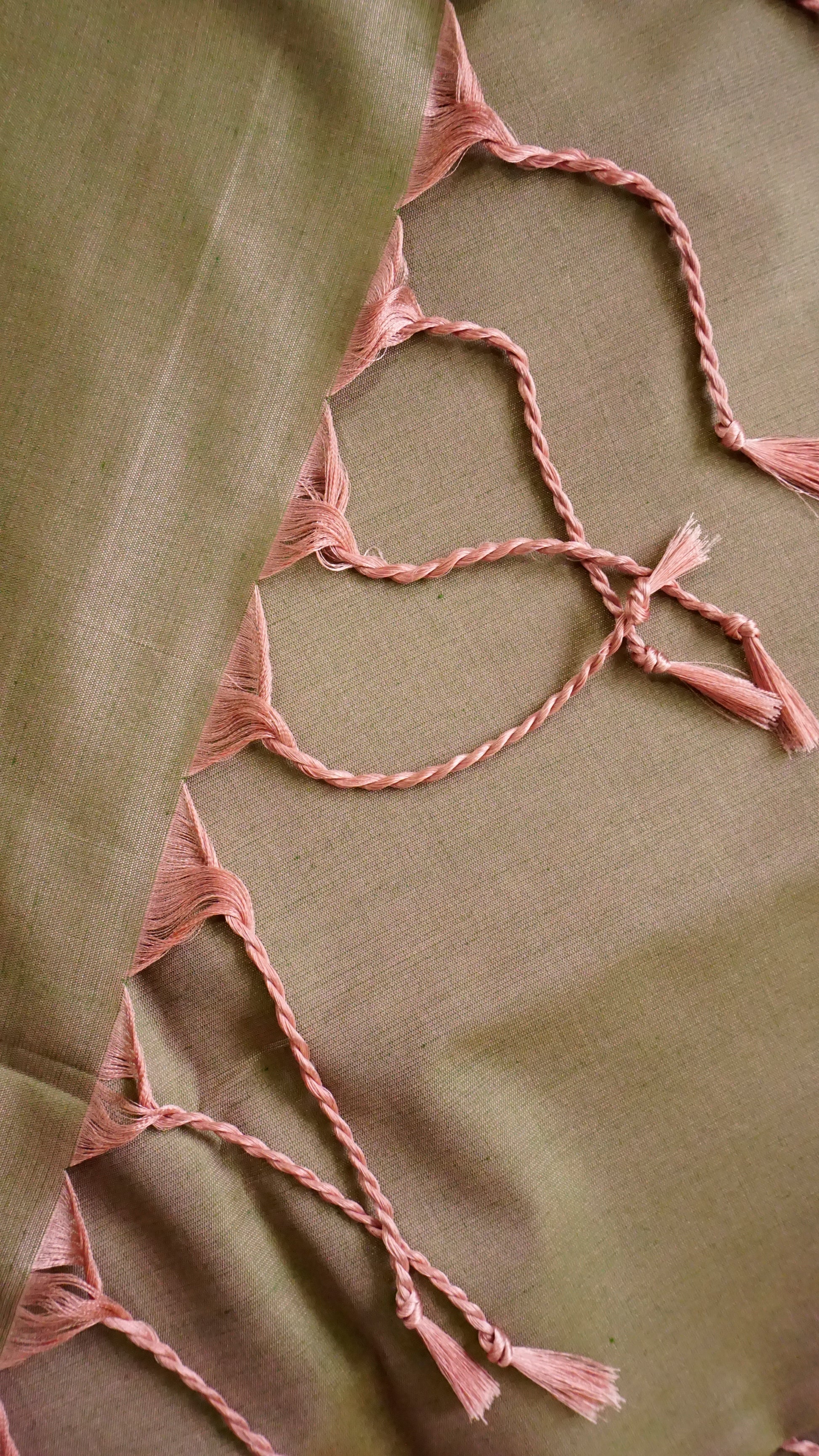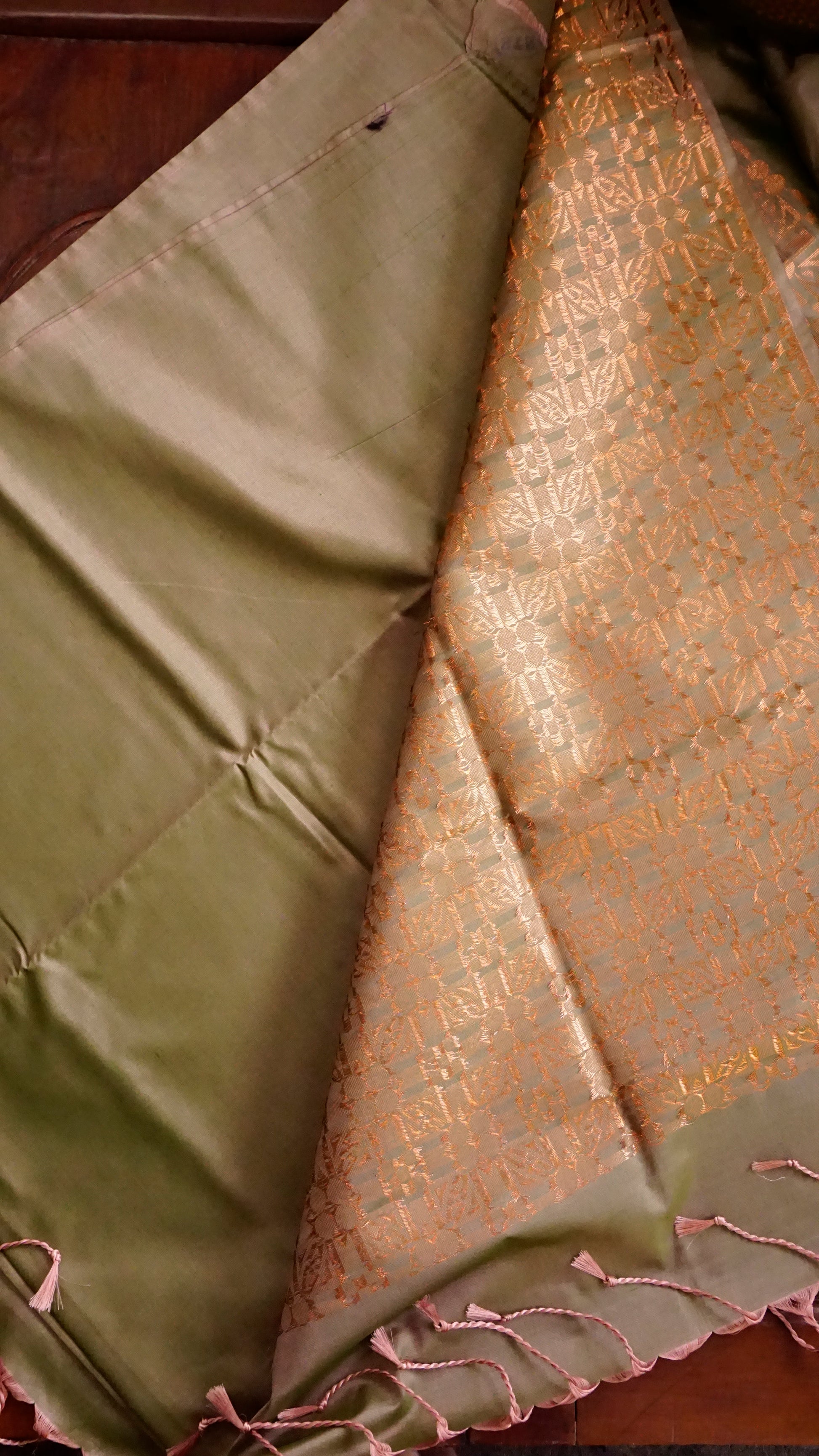 - Olive Green Saree, Semi-Silk Saree, Copper Zari Saree, Festival Saree, Wedding Saree, Traditional Saree, Ethnic Saree, Designer Saree, Temple Saree, Tassel Pallu Saree