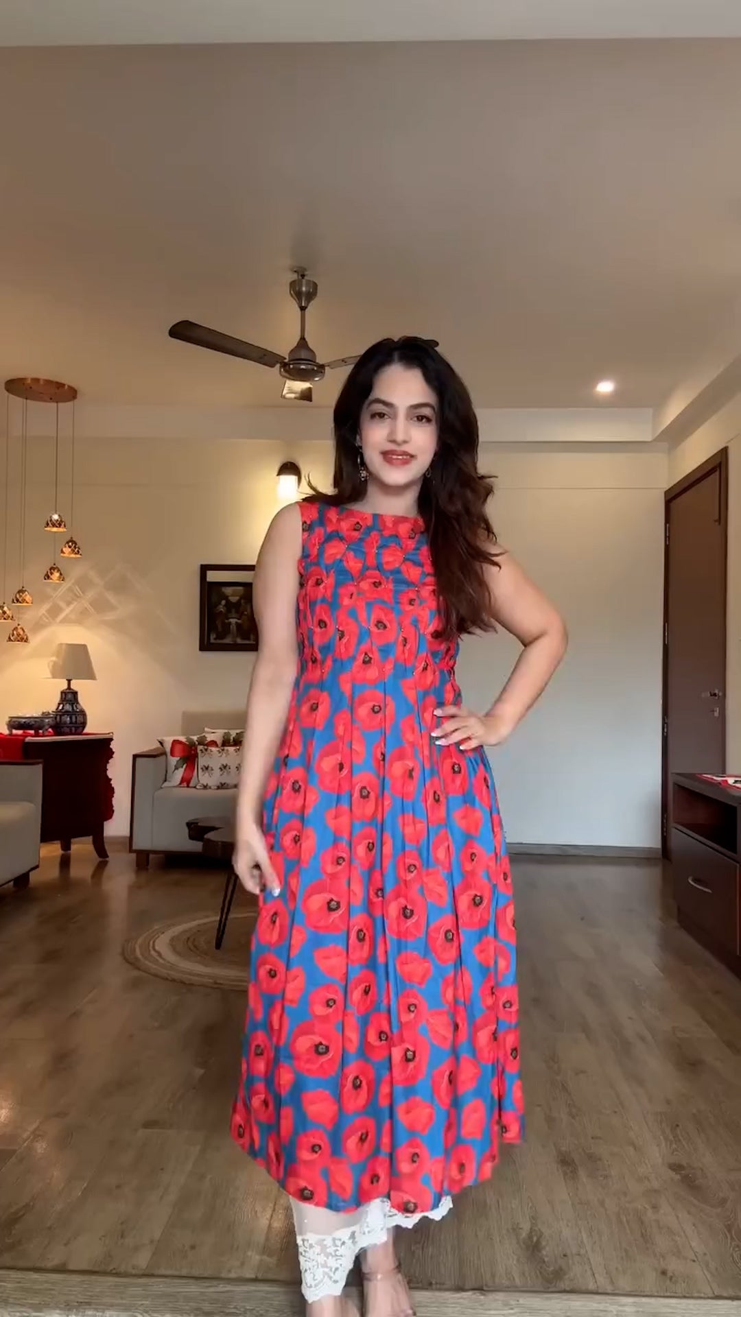 Step into effortless style with this vibrant blue sleeveless kurthi, beautifully enhanced with bold red floral prints. Designed for both comfort and elegance, this kurthi features a soft, flowy fabric that drapes gracefully and keeps you comfortable all day long.