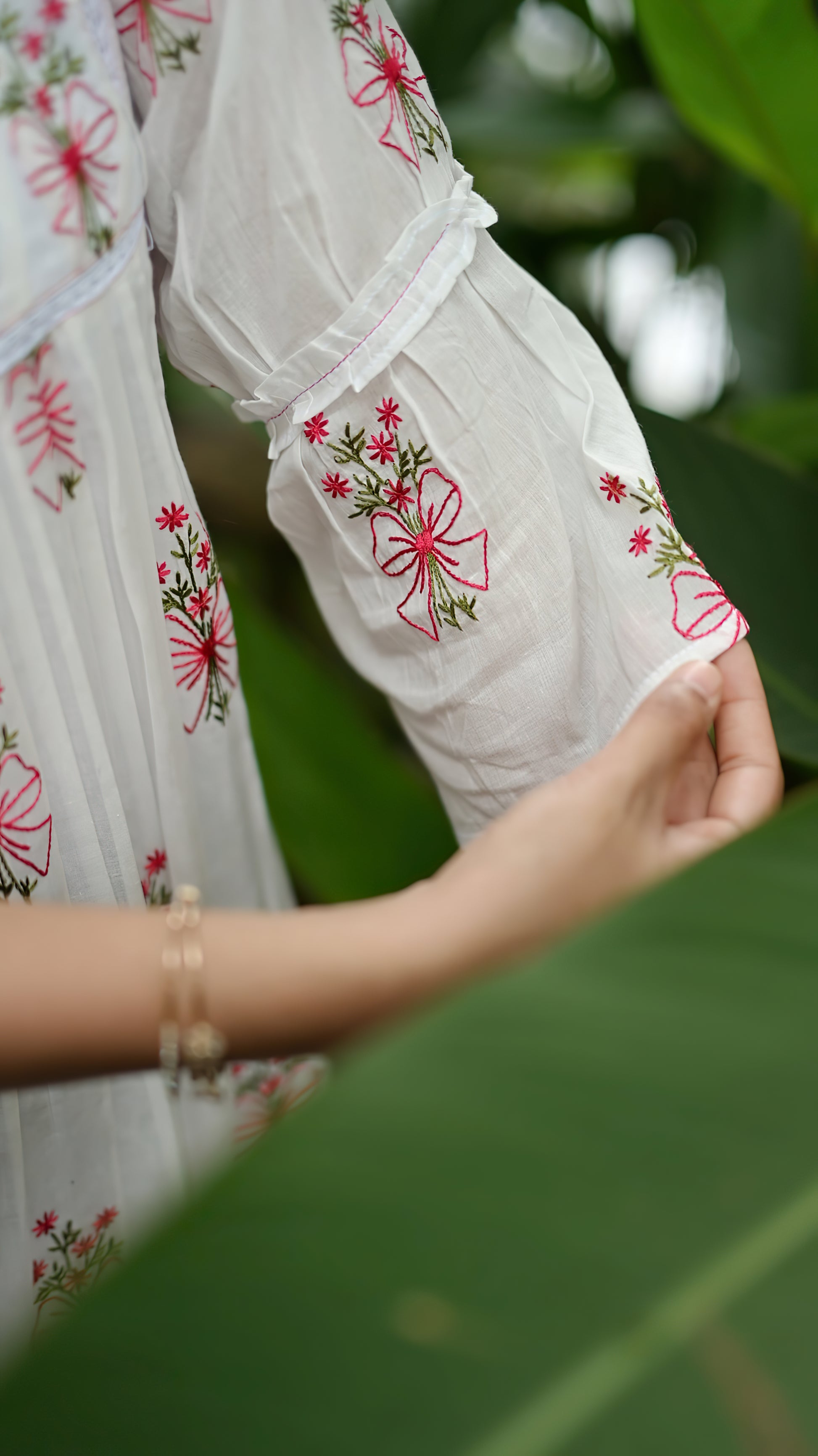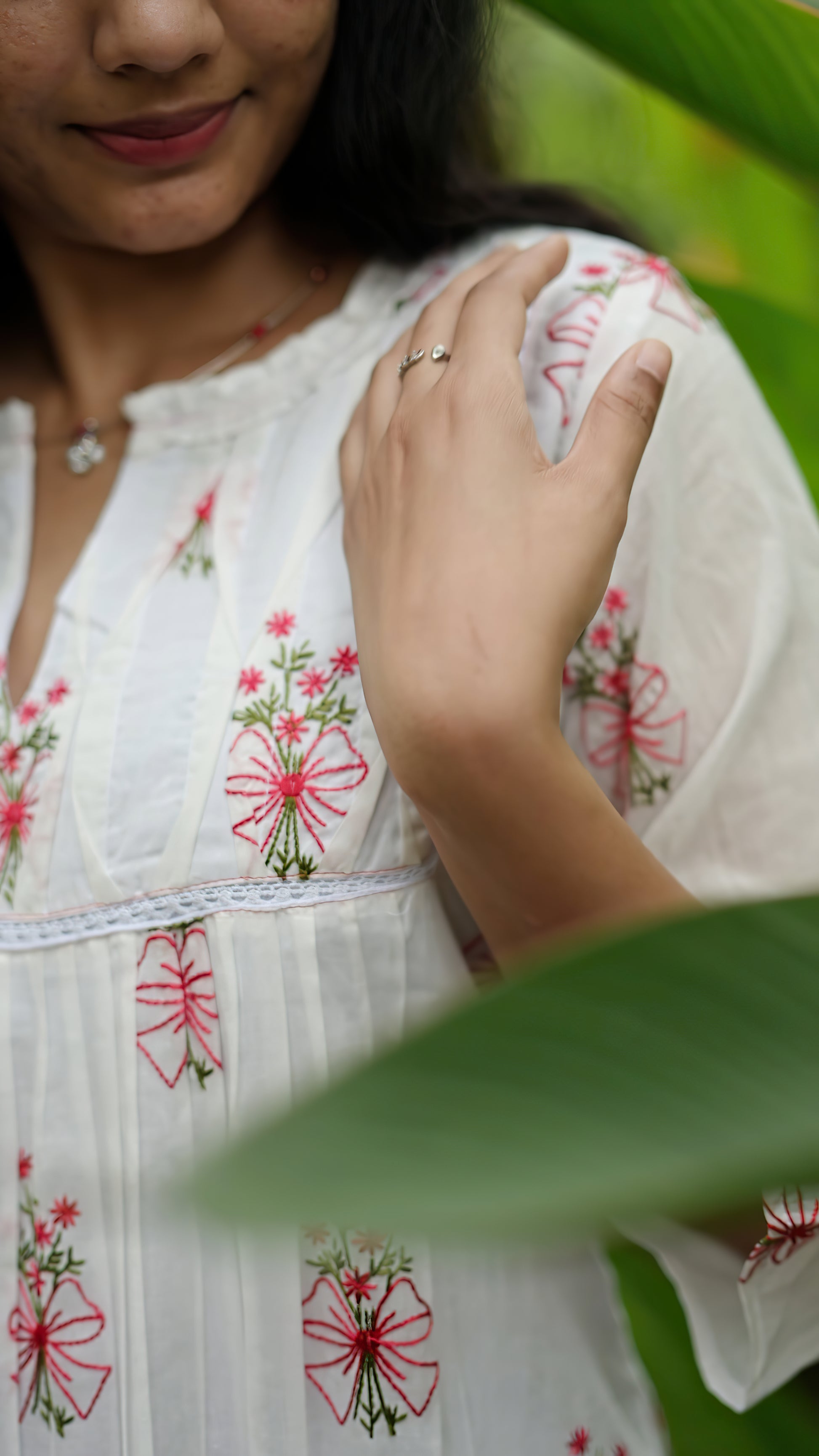 Christmas Special Cotton Kurthi – Red & White Embroidery Detailing Festive Edition