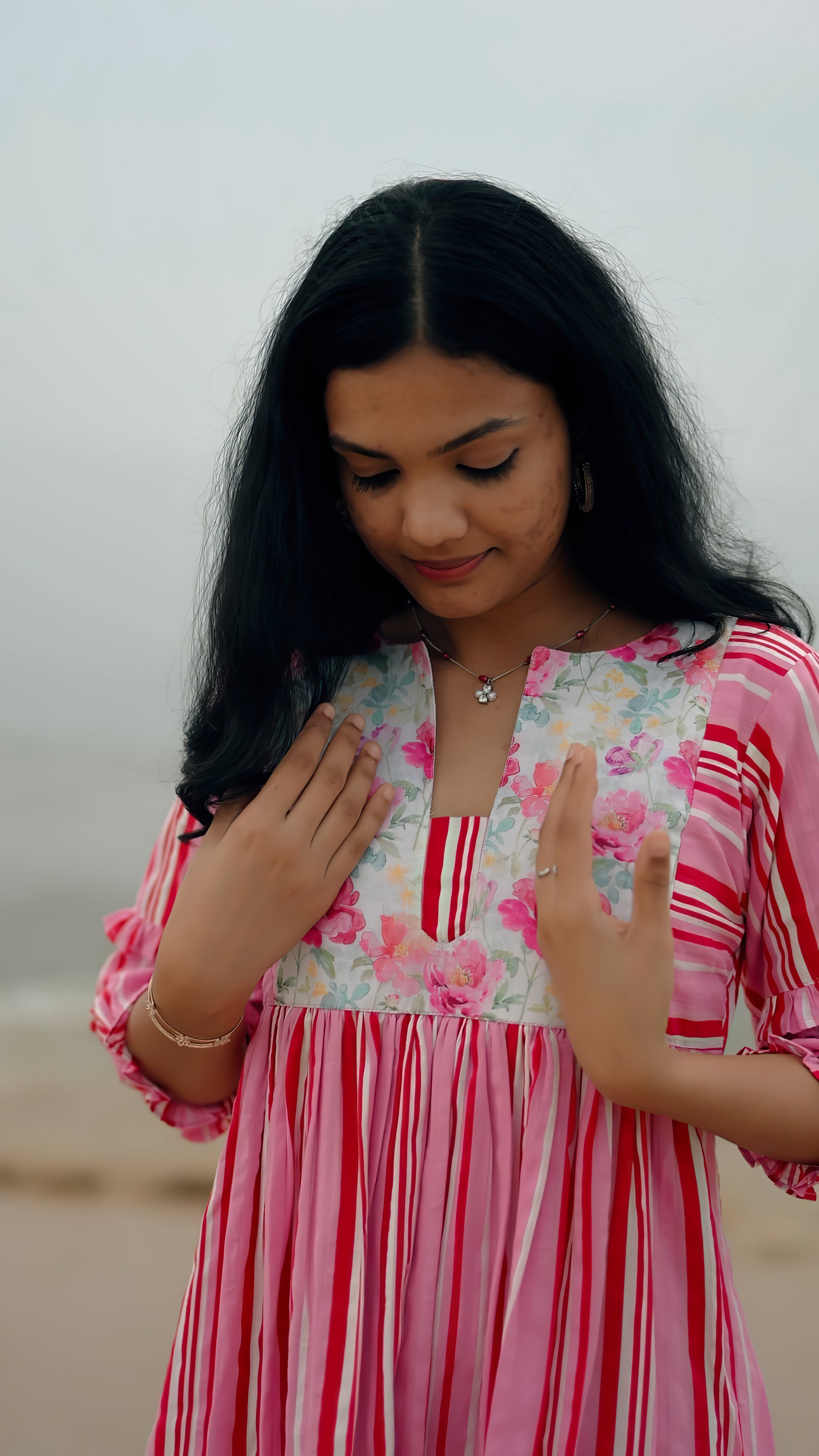 Pink Printed Cotton Kurthi – Festive & Everyday Wear