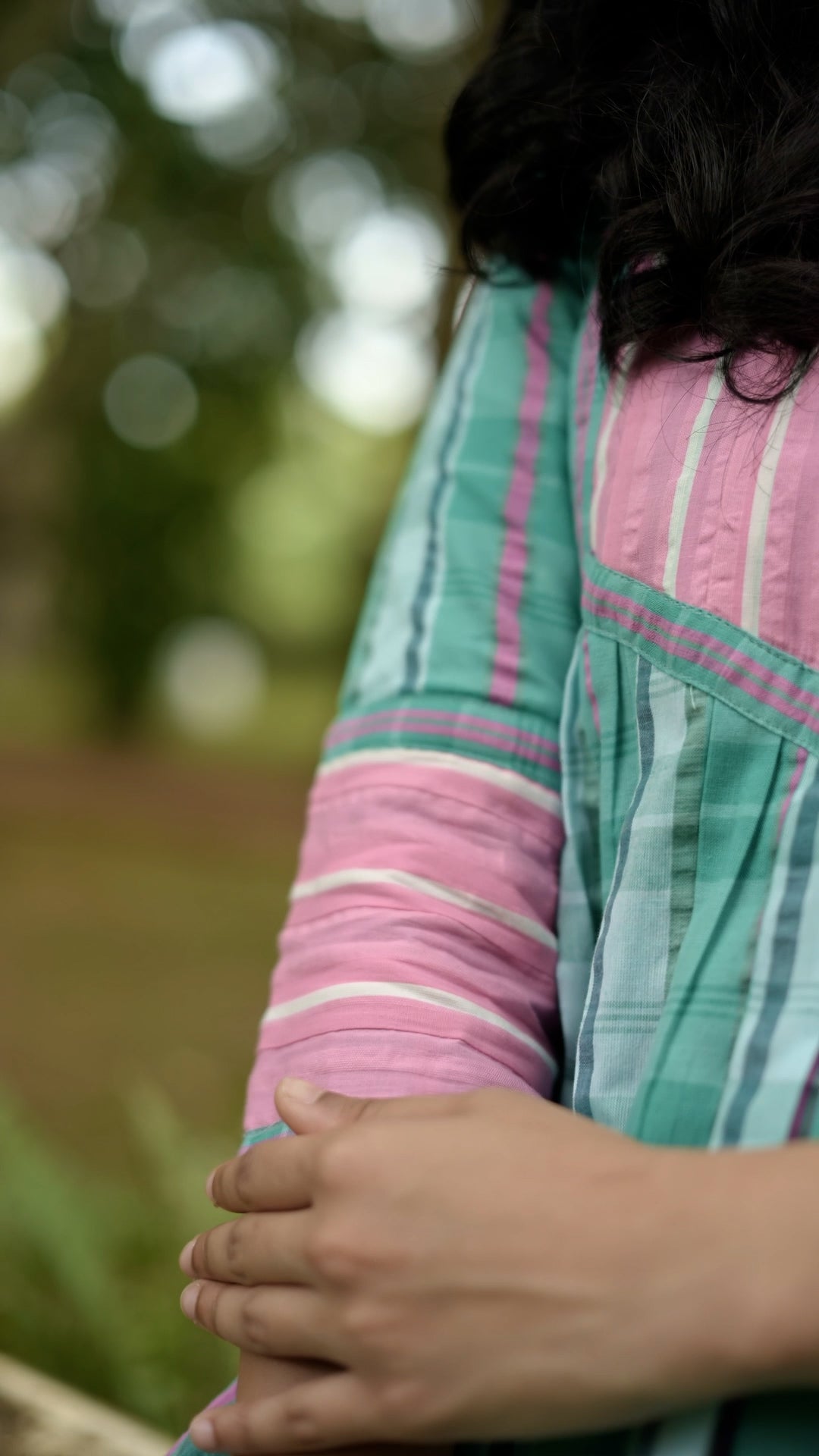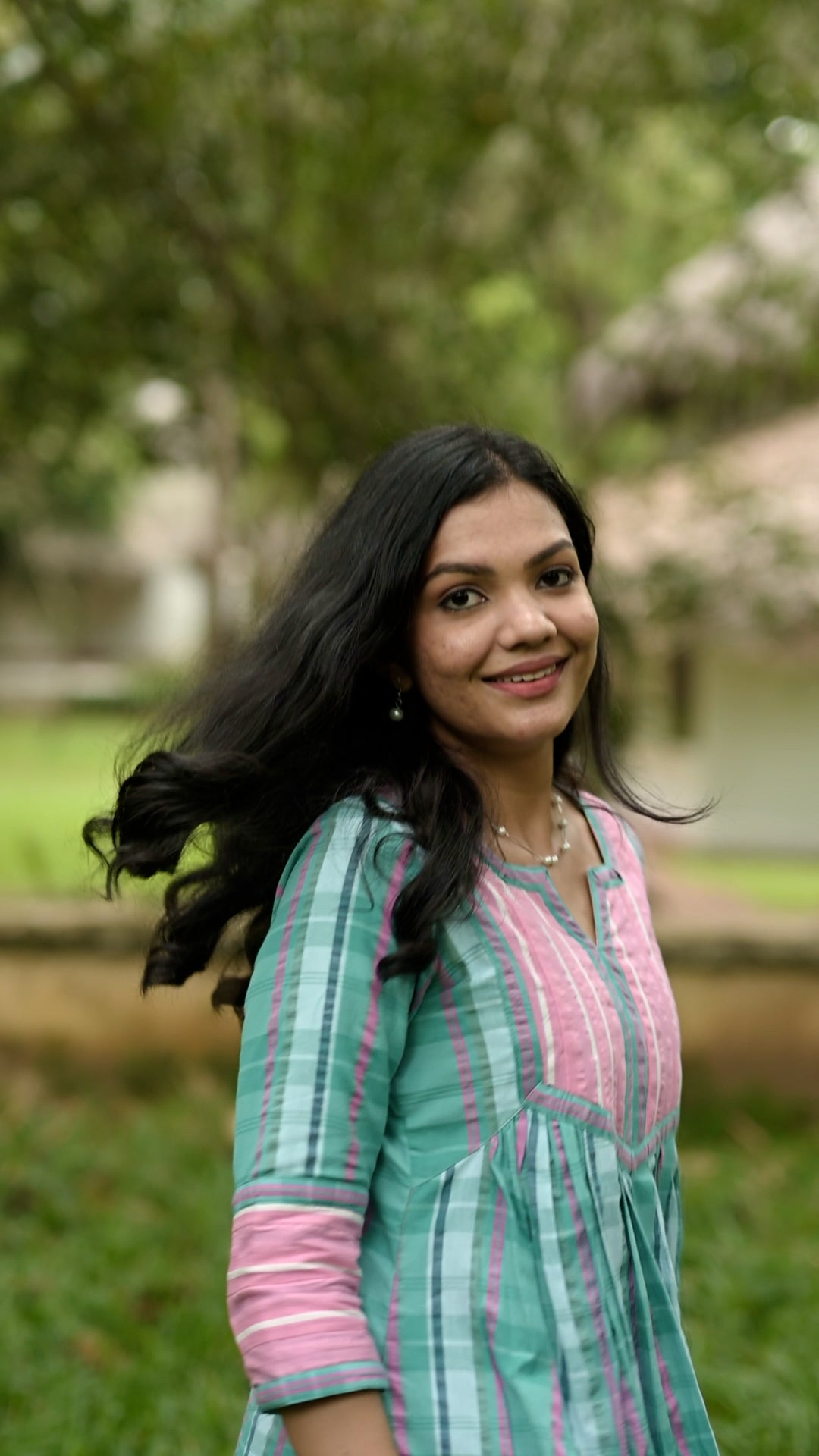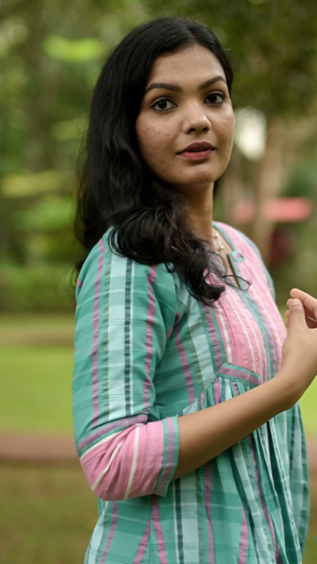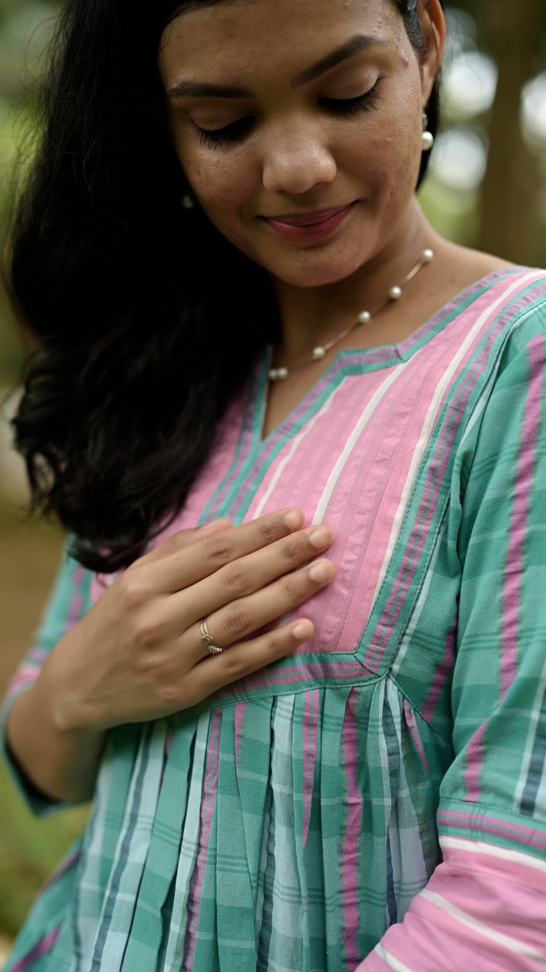 cotton kurthi, pastel kurti, embroidered kurthi, office wear kurthi, daily wear kurti, soft cotton top, striped kurthi, casual wear ladies, summer cotton kurti, mint green kurthi, pink yoke kurthi, breathable kurti