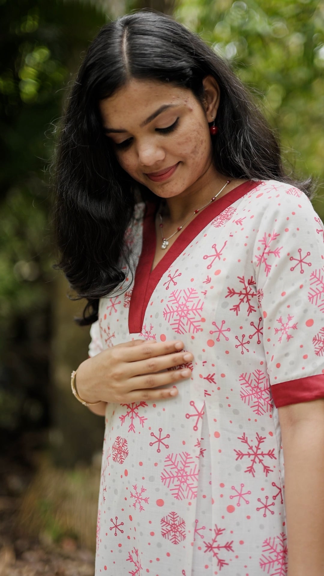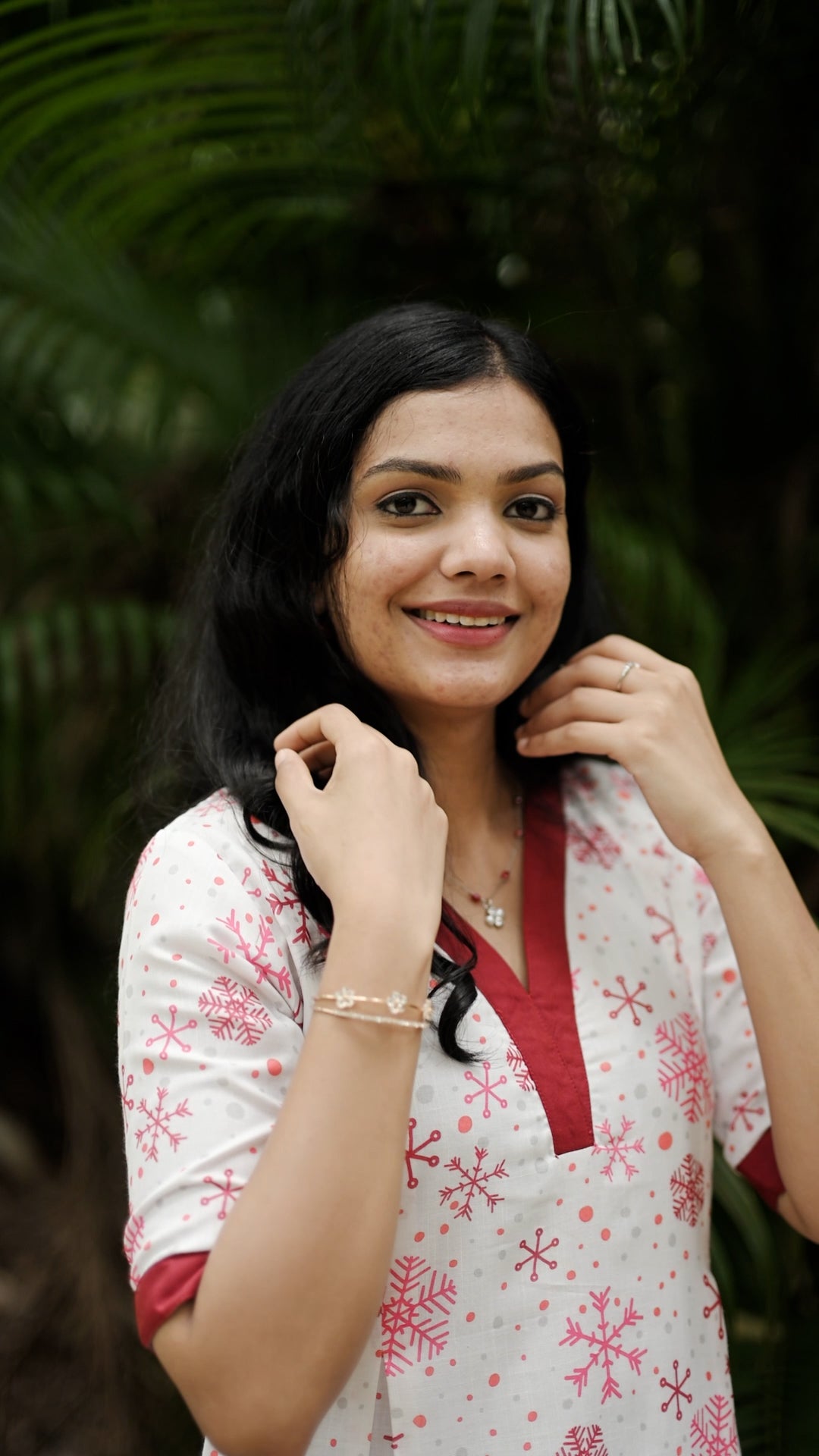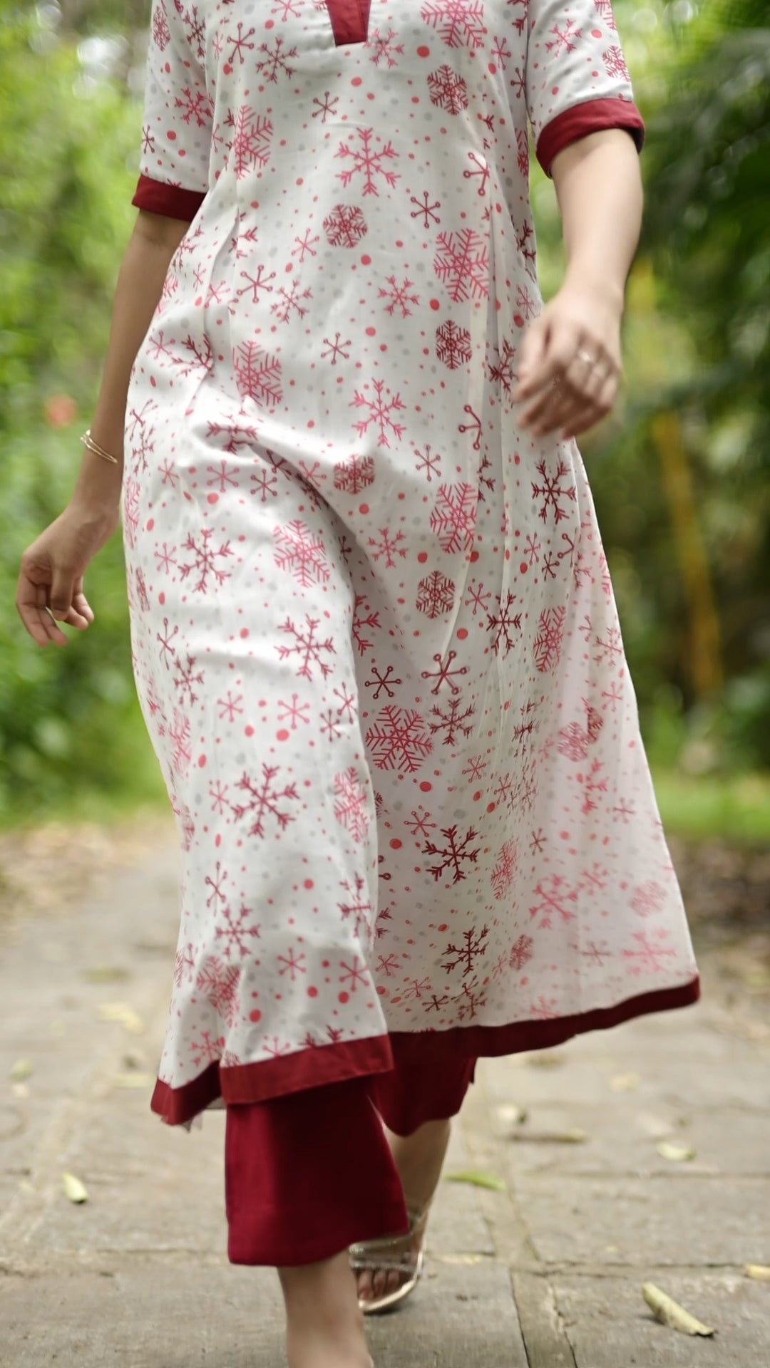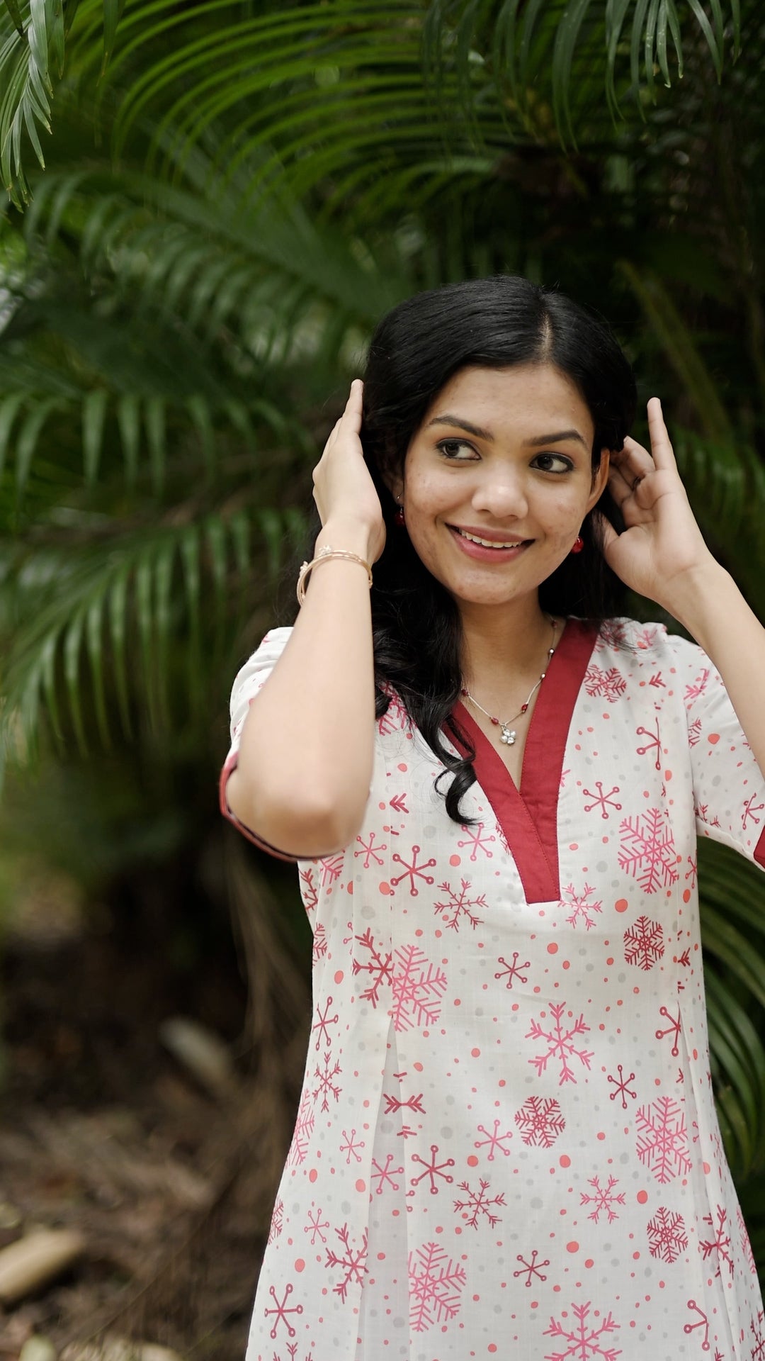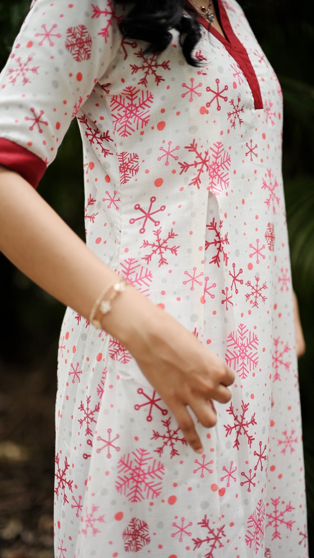 christmas kurthi | festive kurthi | red and white cotton kurthi | christmas outfit women | holiday fashion | christmas mass outfit | cotton christmas kurti | festive wear kurti | winter season kurthi