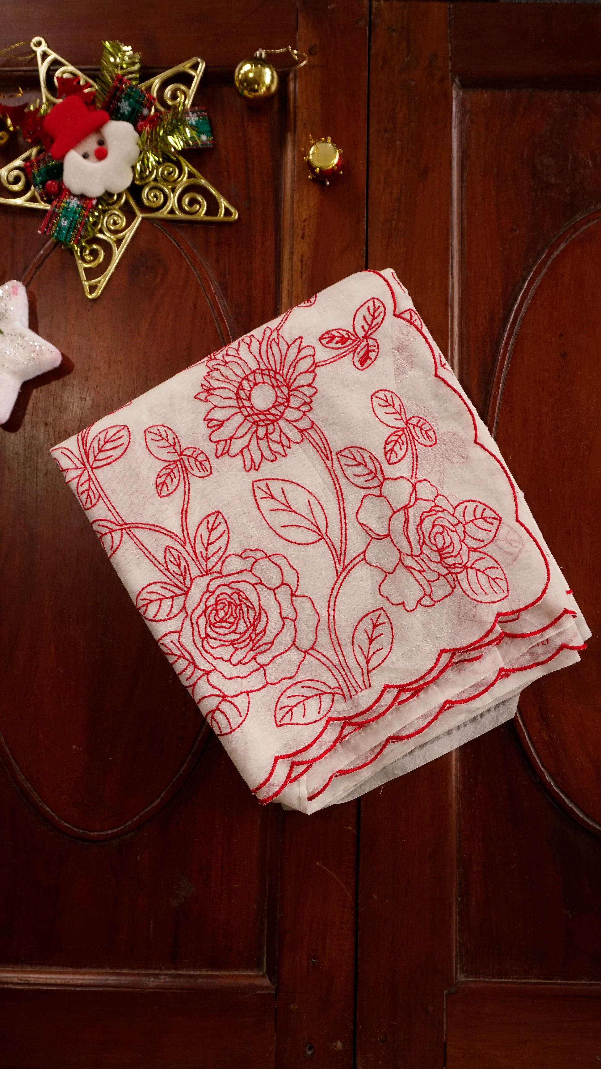 Mal Chanderi Saree with Floral Embroidery – Red & White Christmas Edit