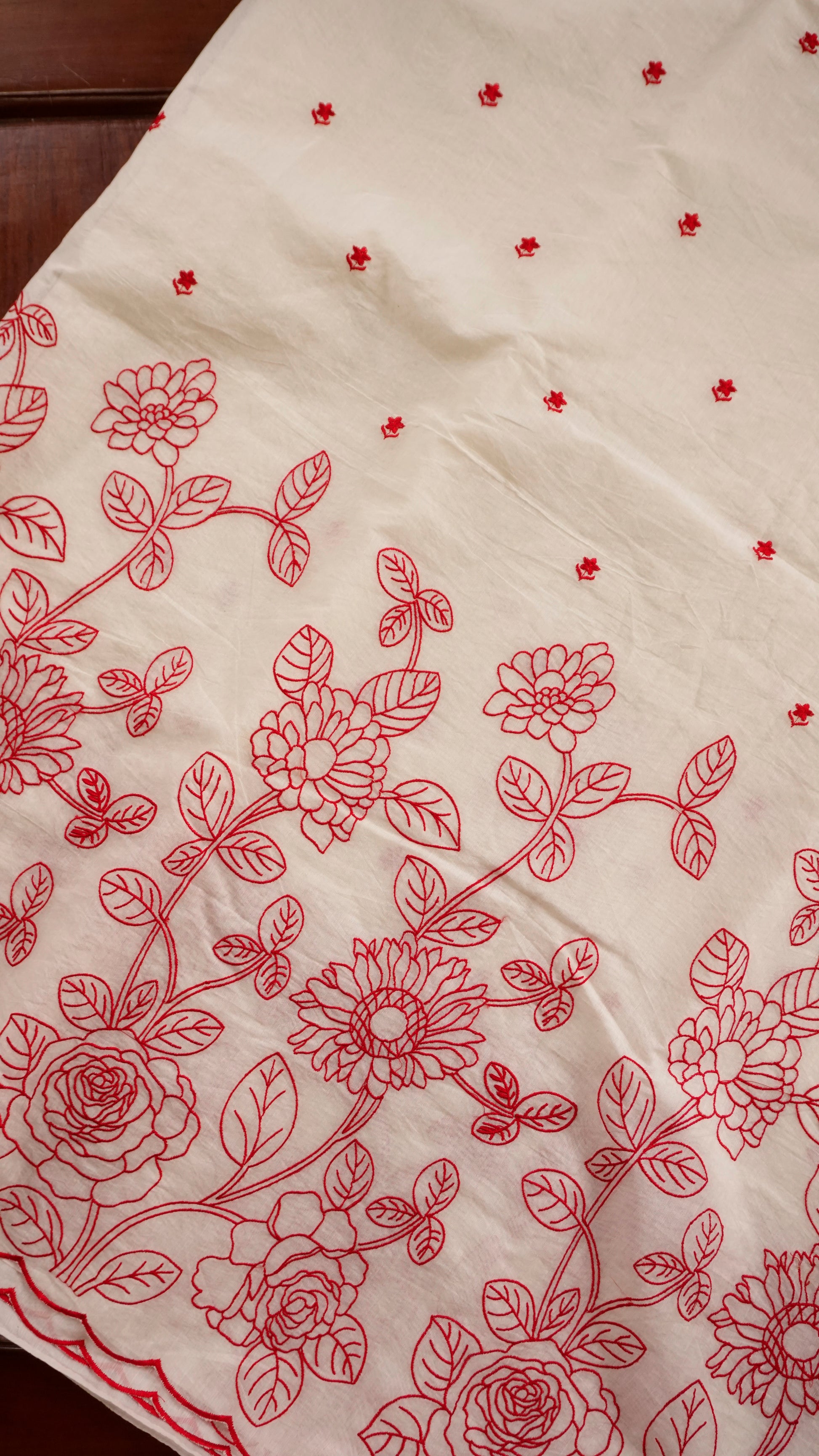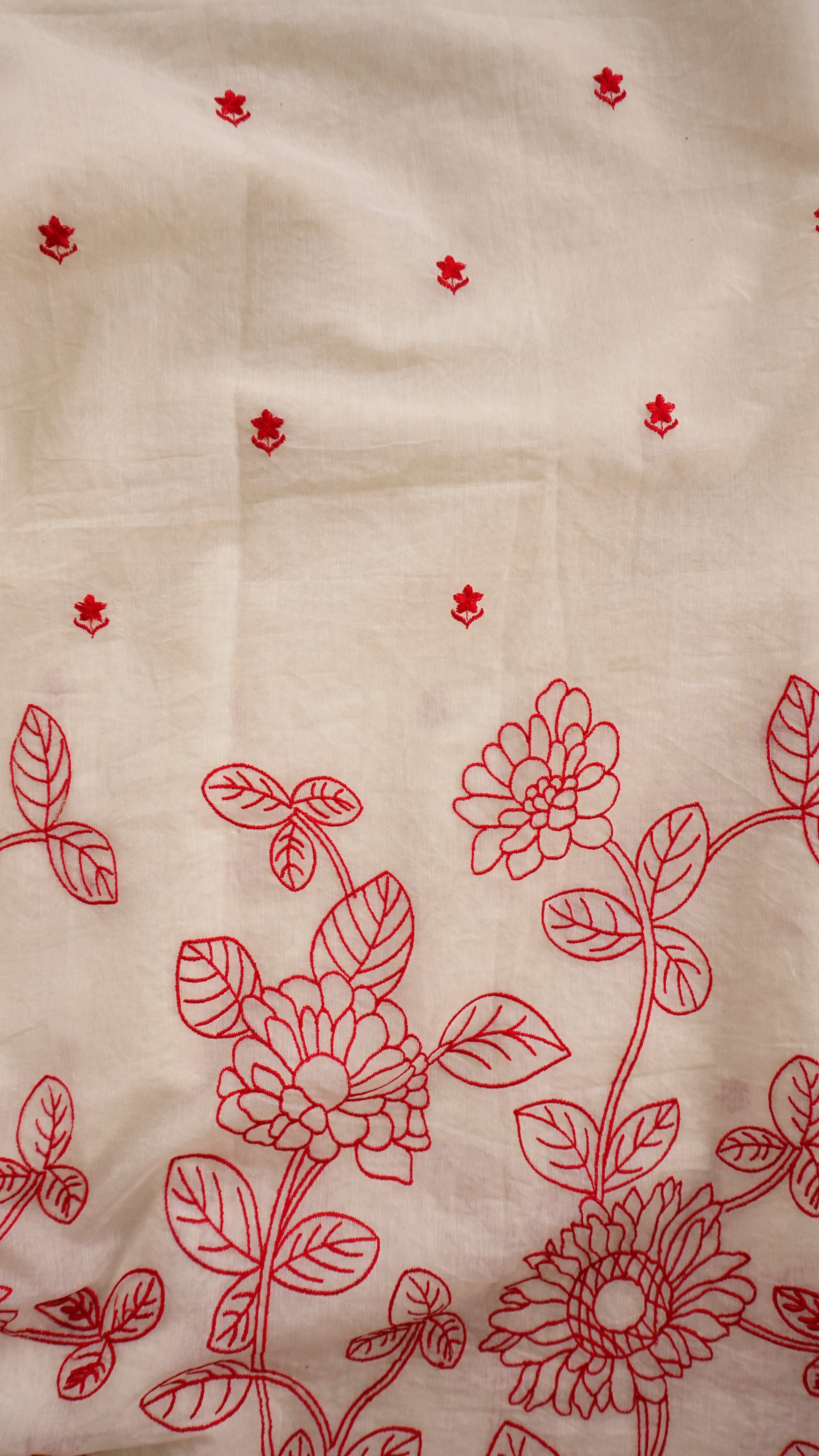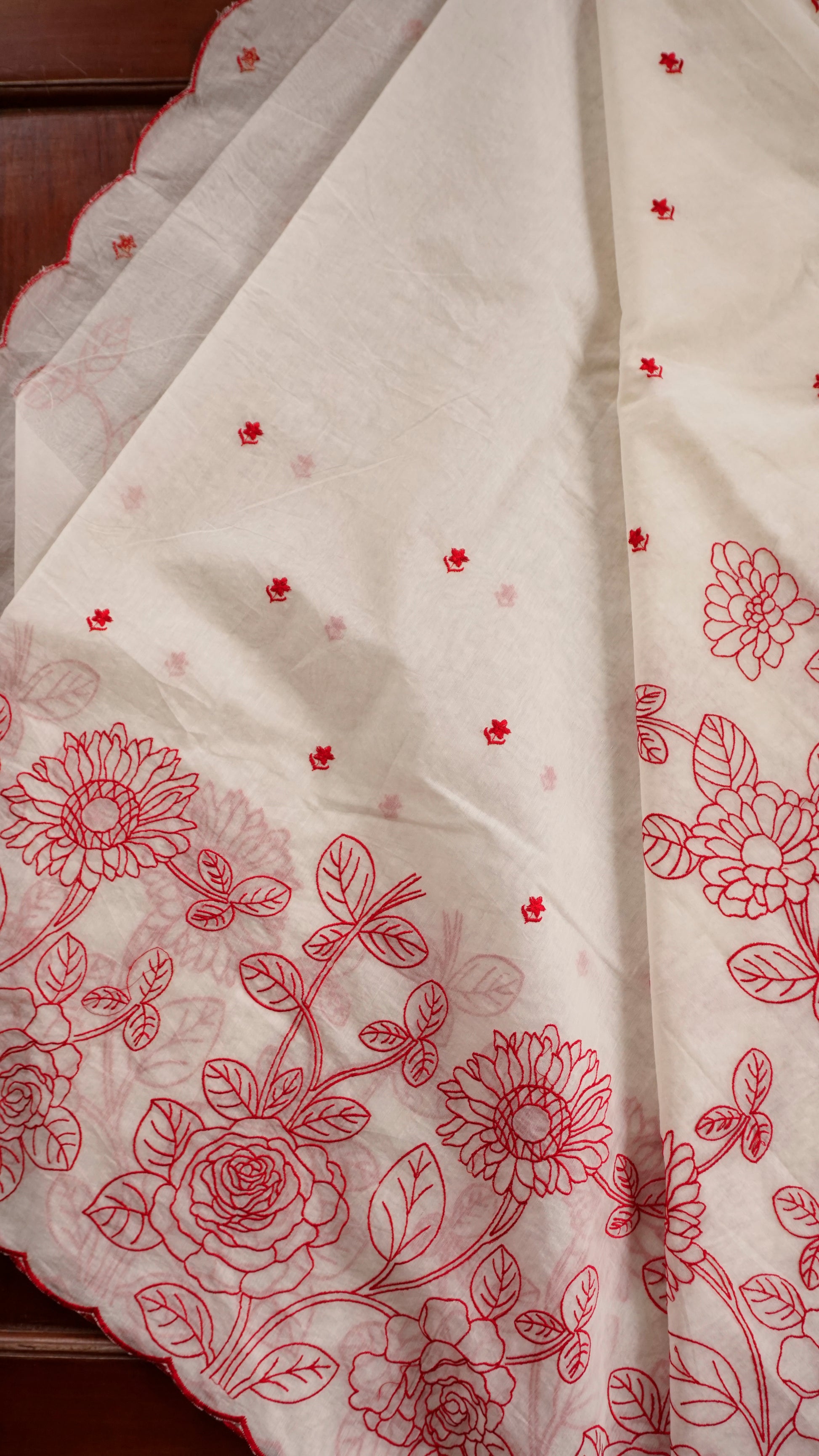 Mal Chanderi Saree, Floral Embroidered Saree, Red and White Saree, Christmas Saree, Lightweight Saree, Festive Saree, Cotton Chanderi Saree, Elegant Saree, Party Wear Saree, Soft Chanderi Fabric