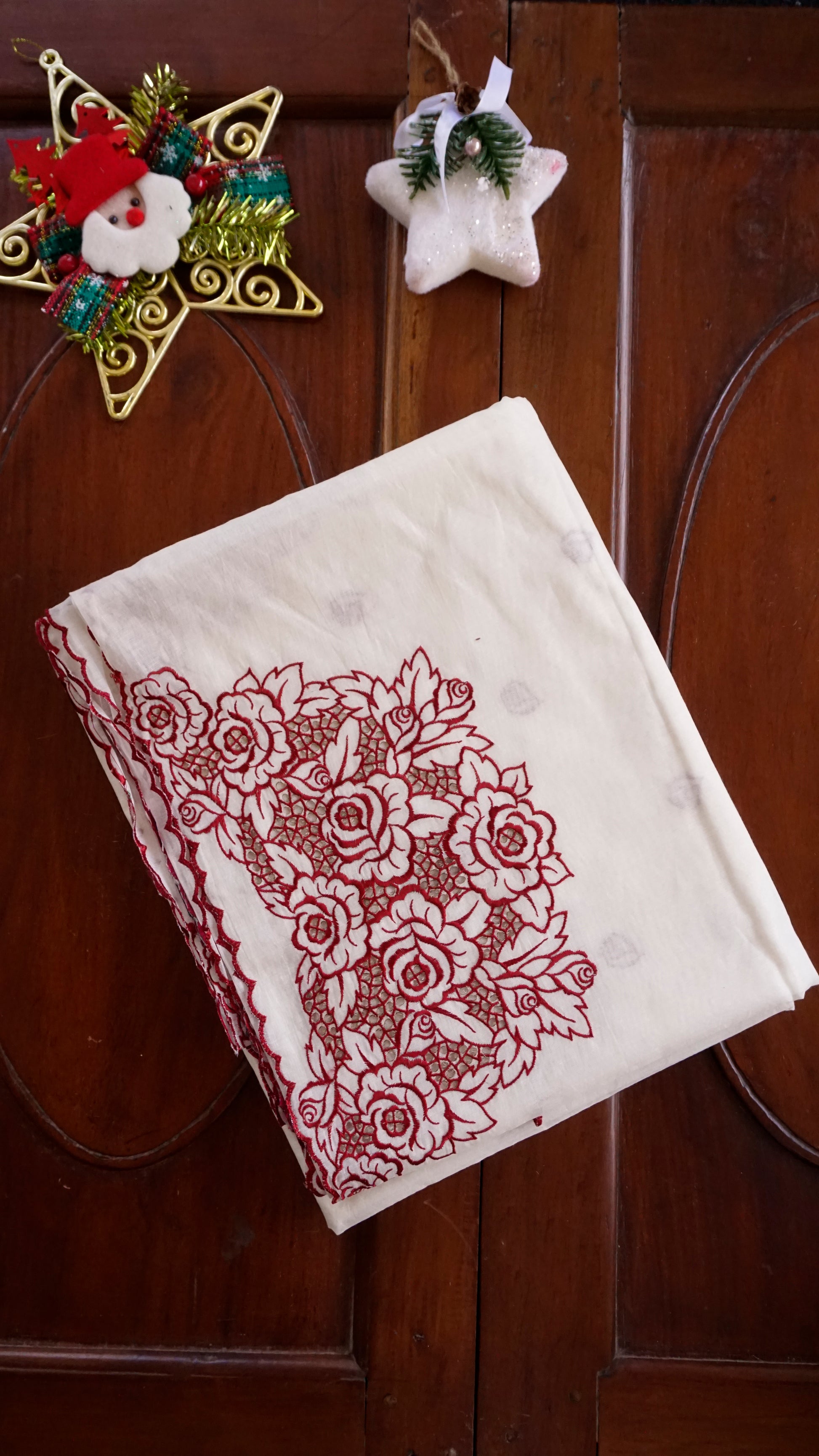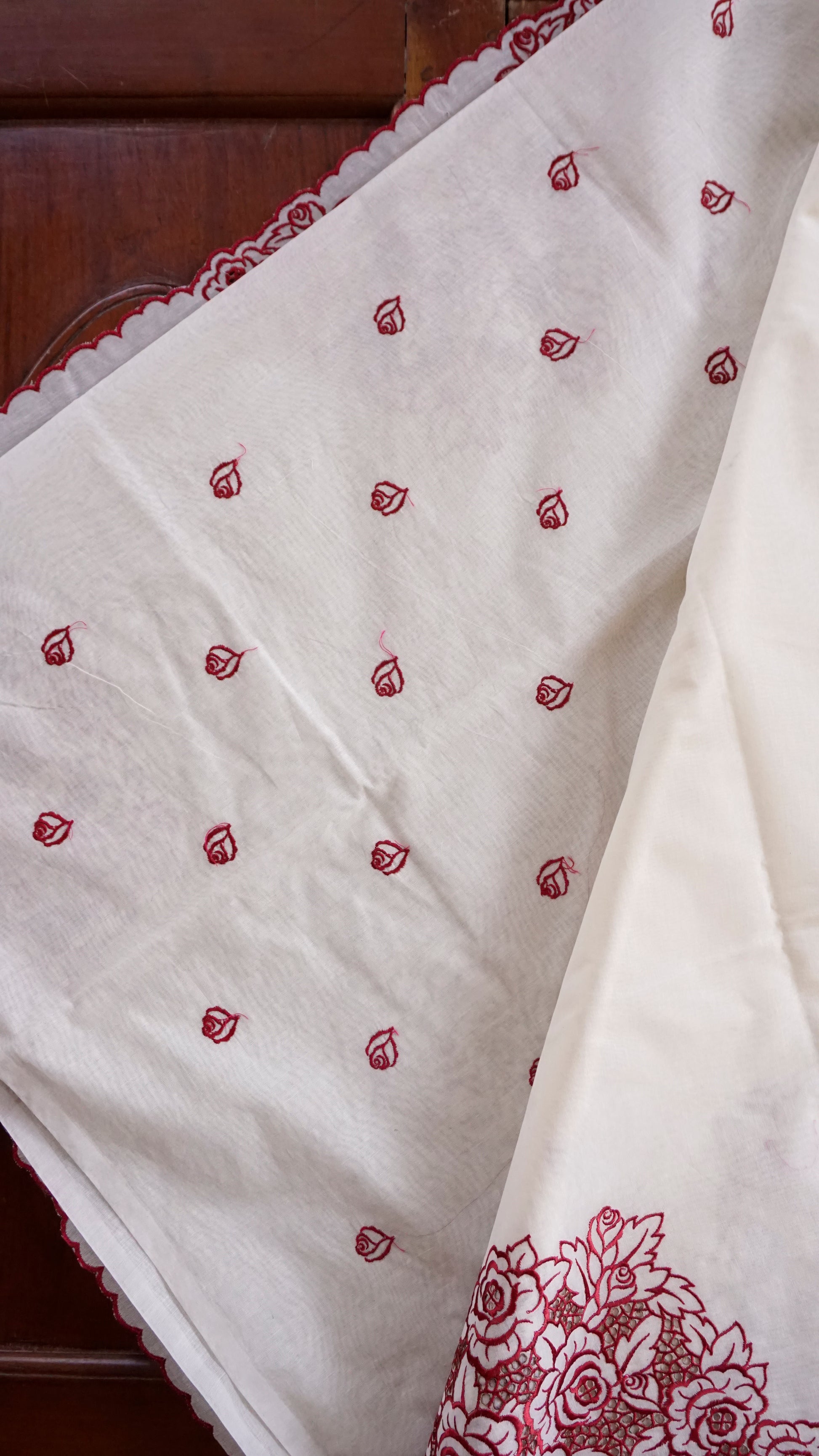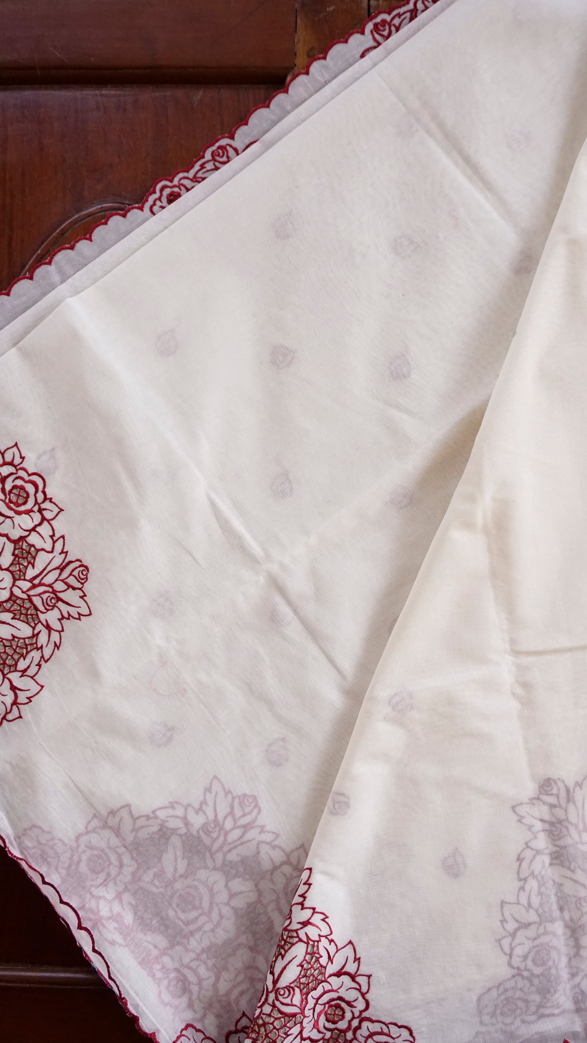 • Color: Cream with Maroon Embroidery