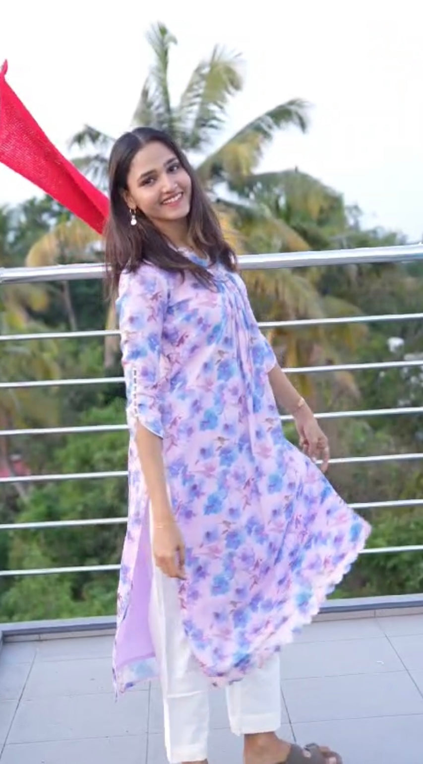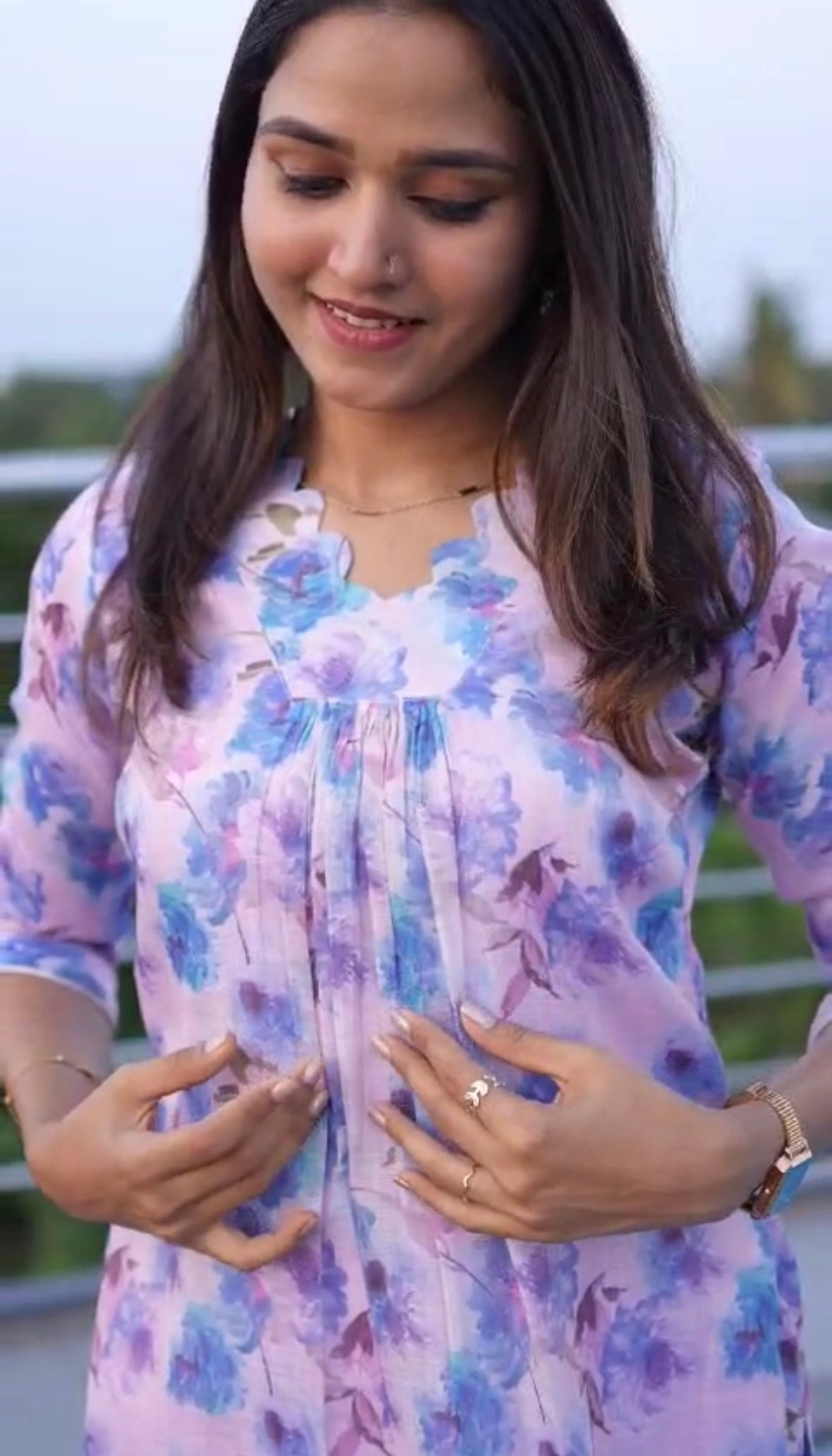 Premium tissue cotton kurthi with scalloped neckline and embellishments lining present