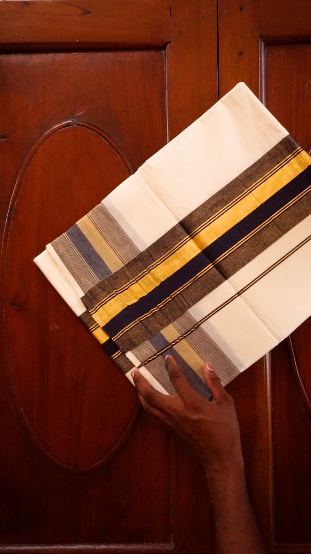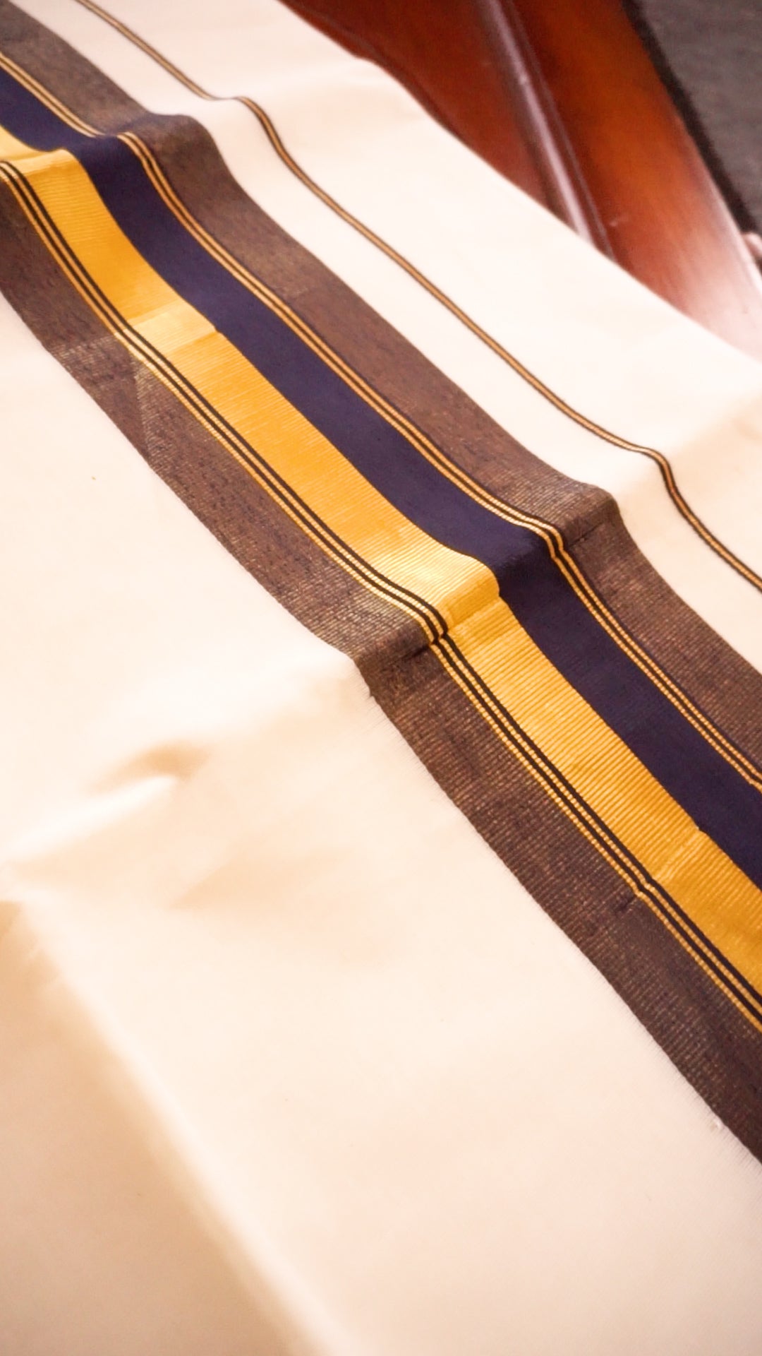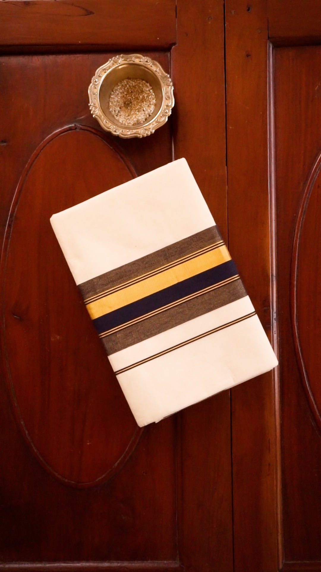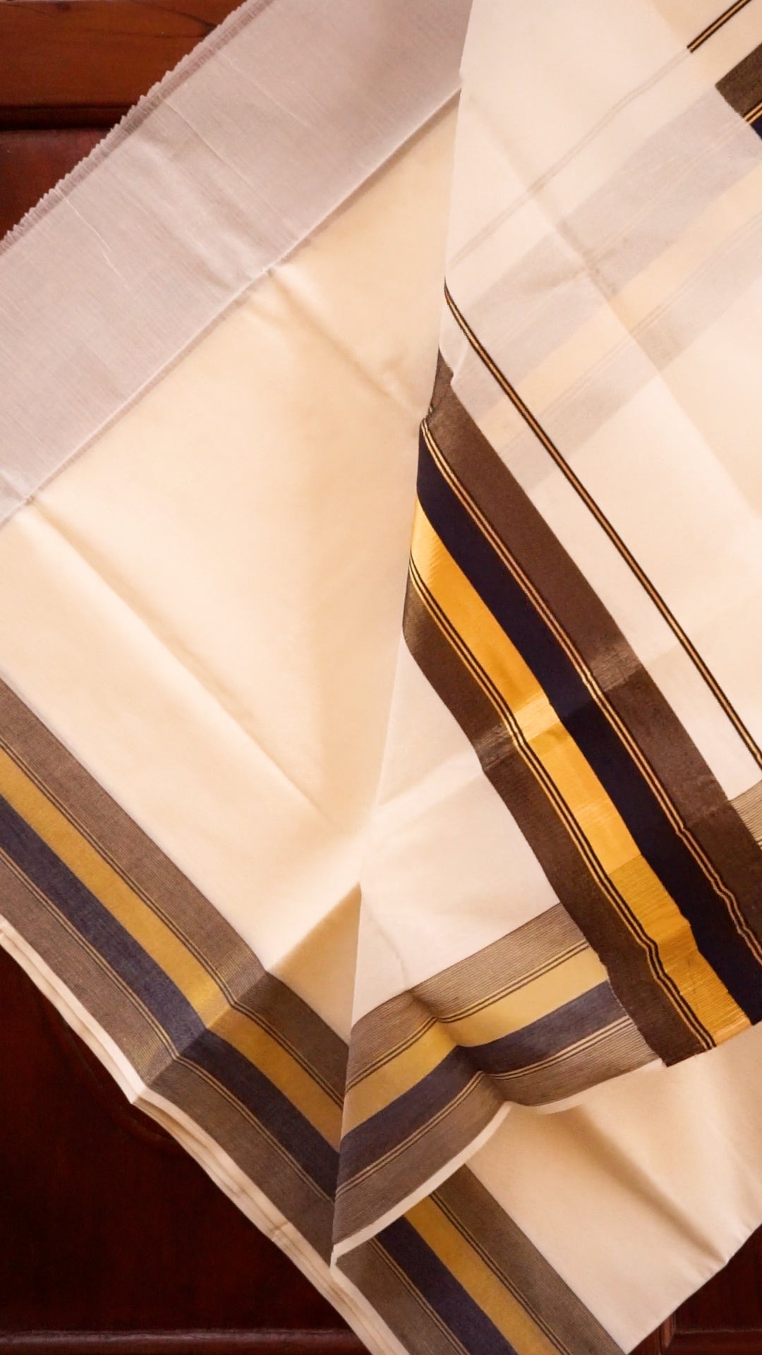 Traditional kasavu style with modern striped border