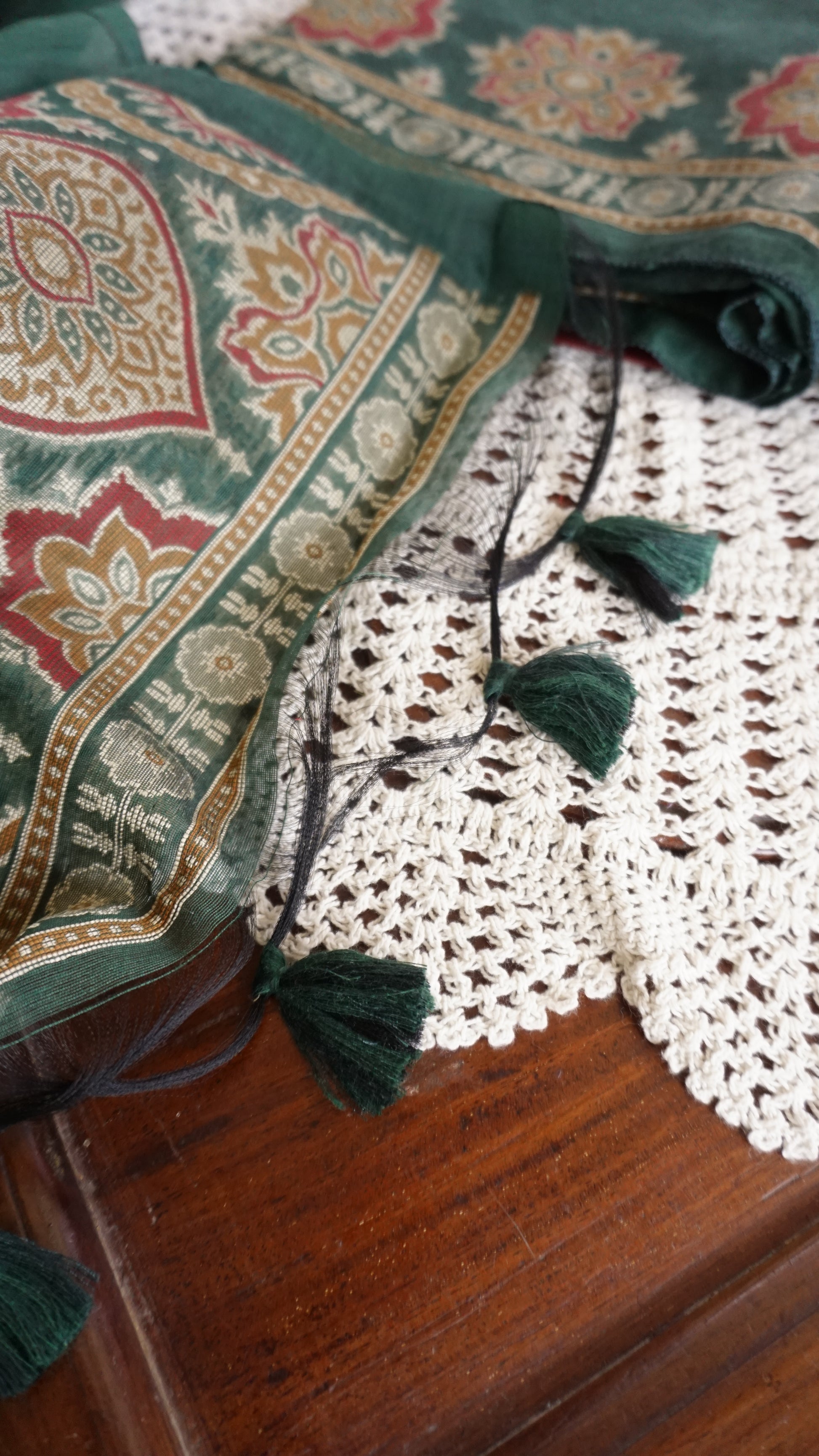 Forest Emerald is that rare shade — deep, soulful and quietly commanding. It carries the calm of ancient forests and the richness of royal courts. Draped in this handwoven Jamdani salwar set, you don't just wear a colour — you wear a mood, a memory, a moment.