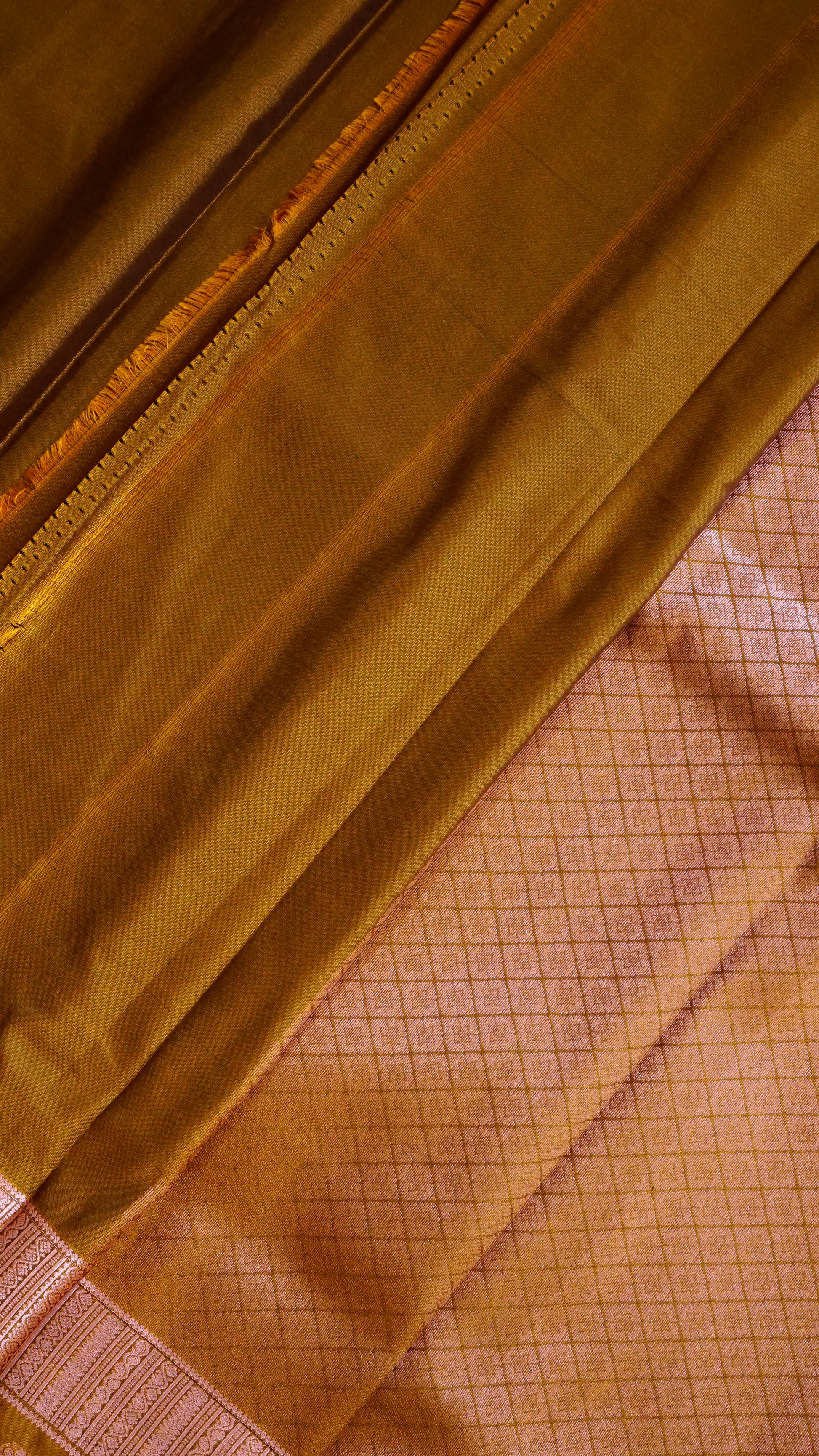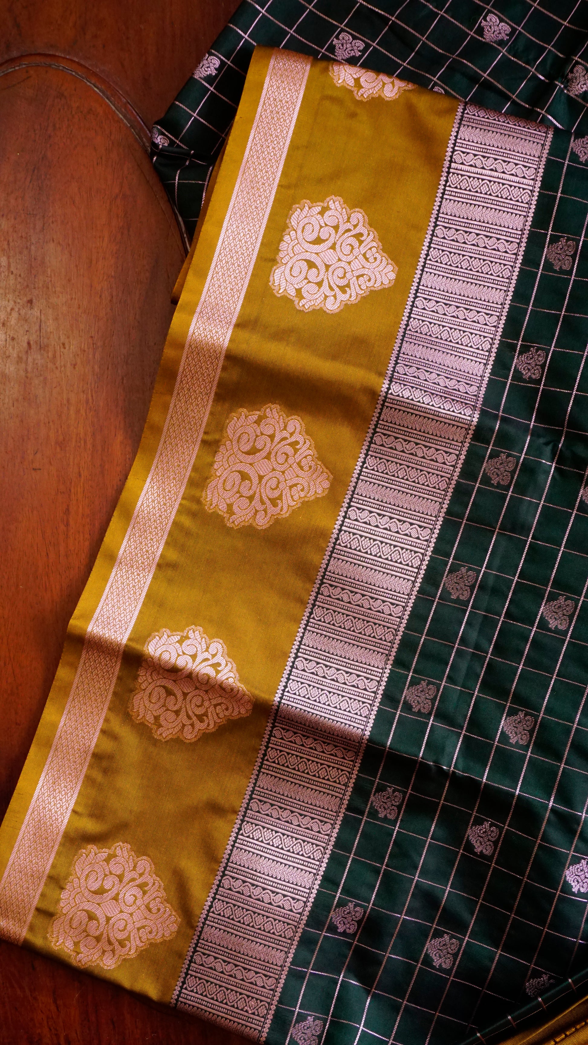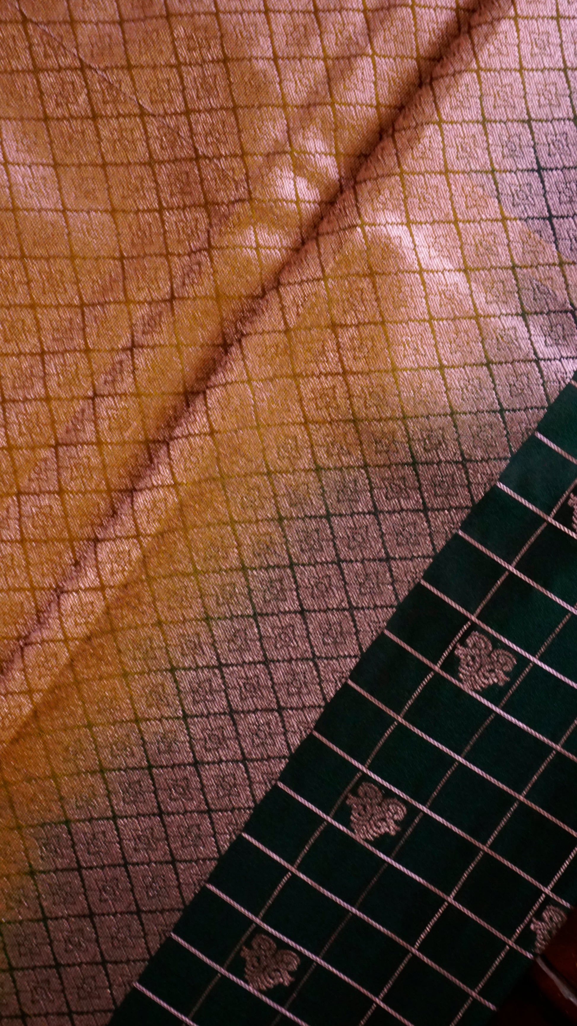 💛 Pink Zari or Mustard & Green Semi-Silk Saree