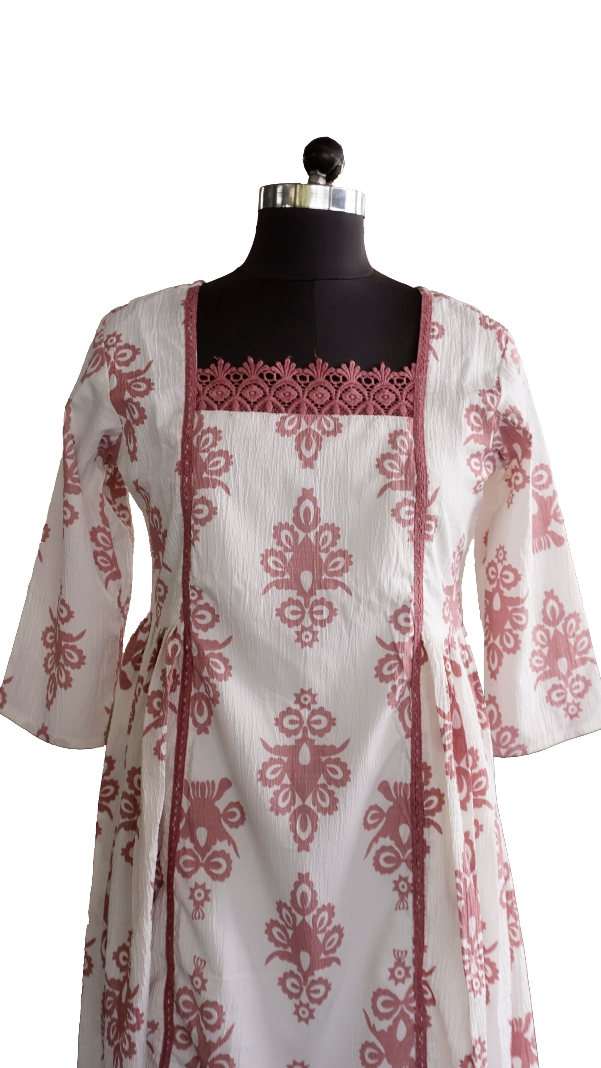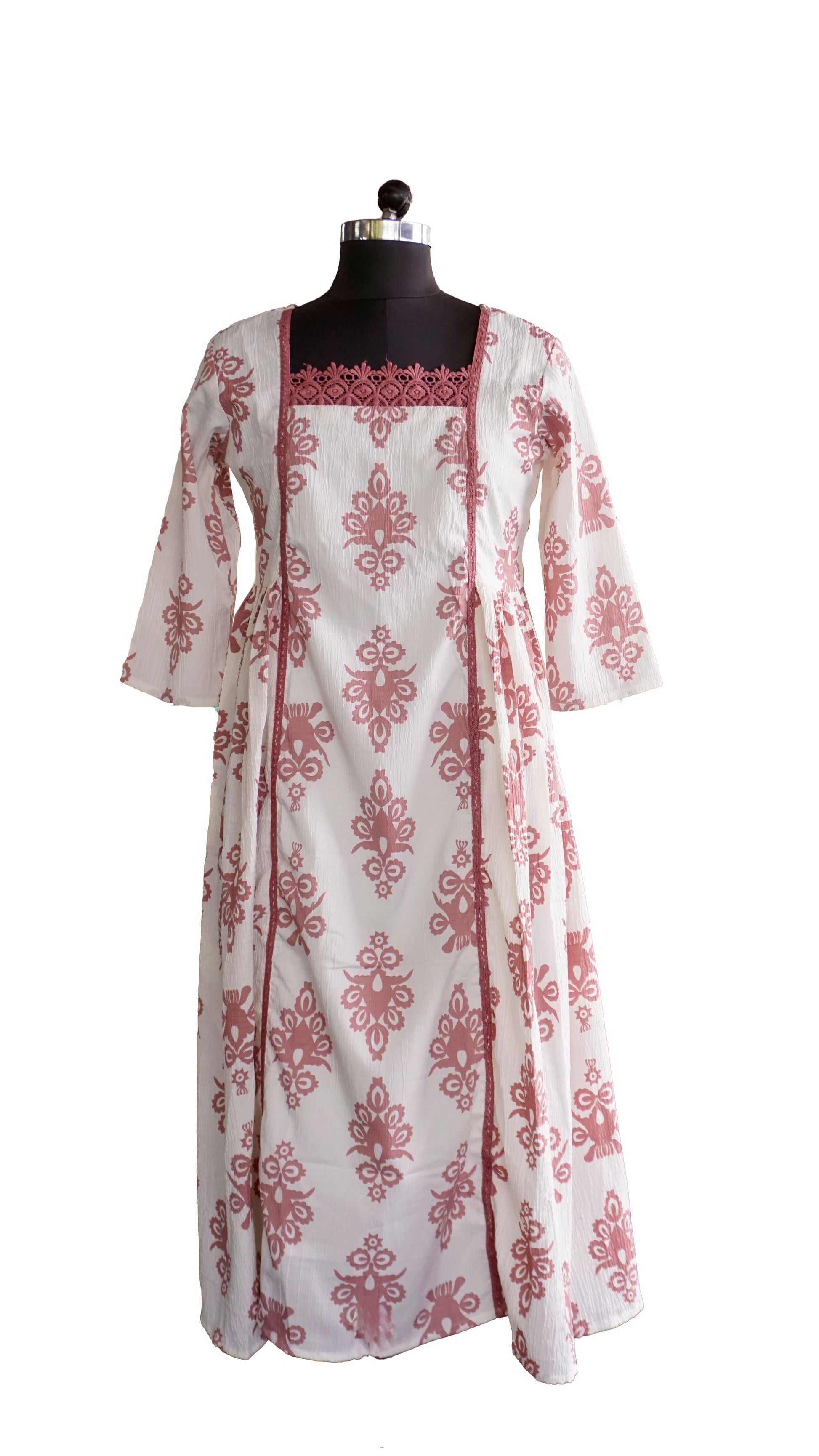 Add a soft, elegant touch to your wardrobe with this Peach Floral Printed Cotton Kurti.