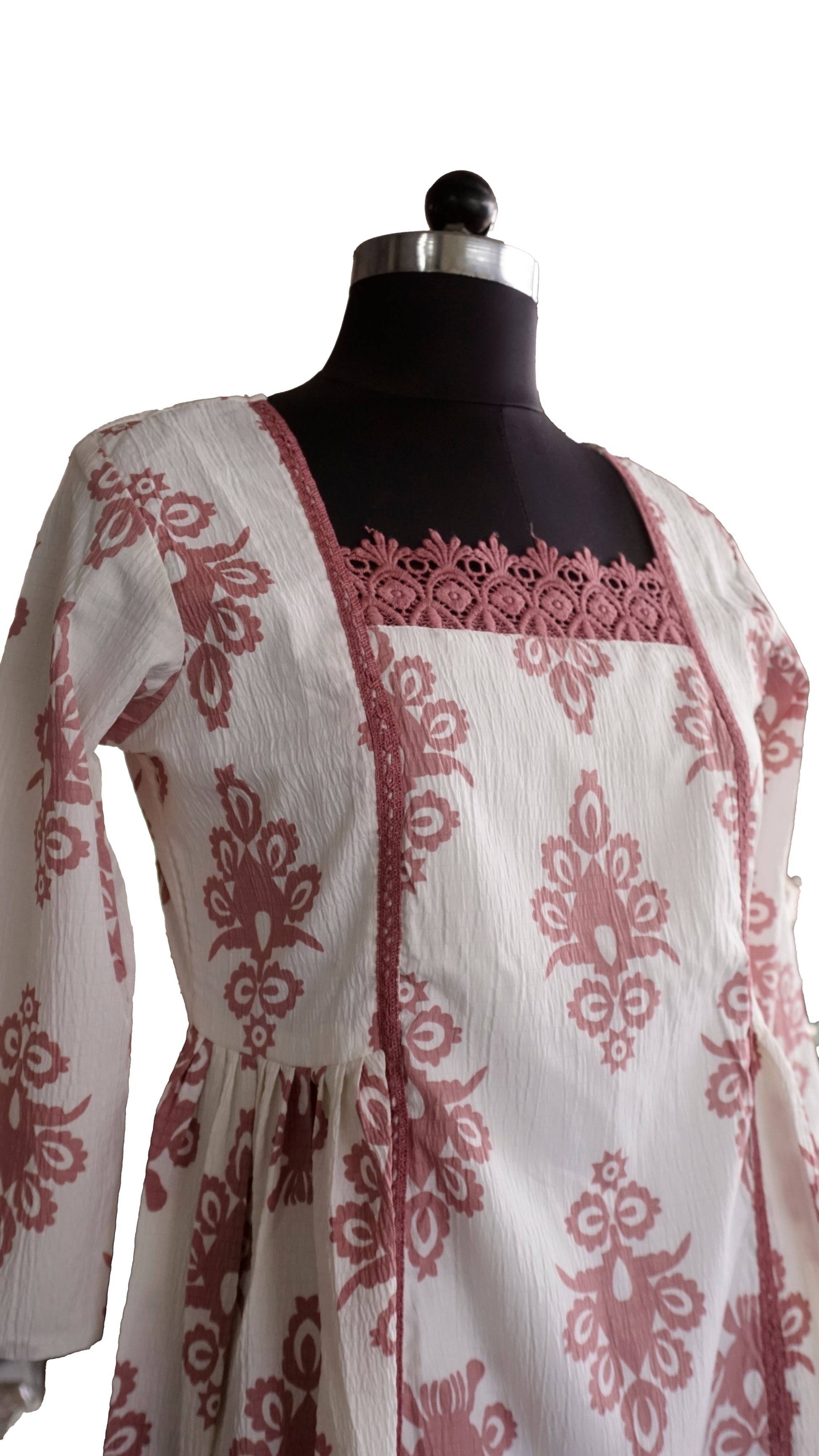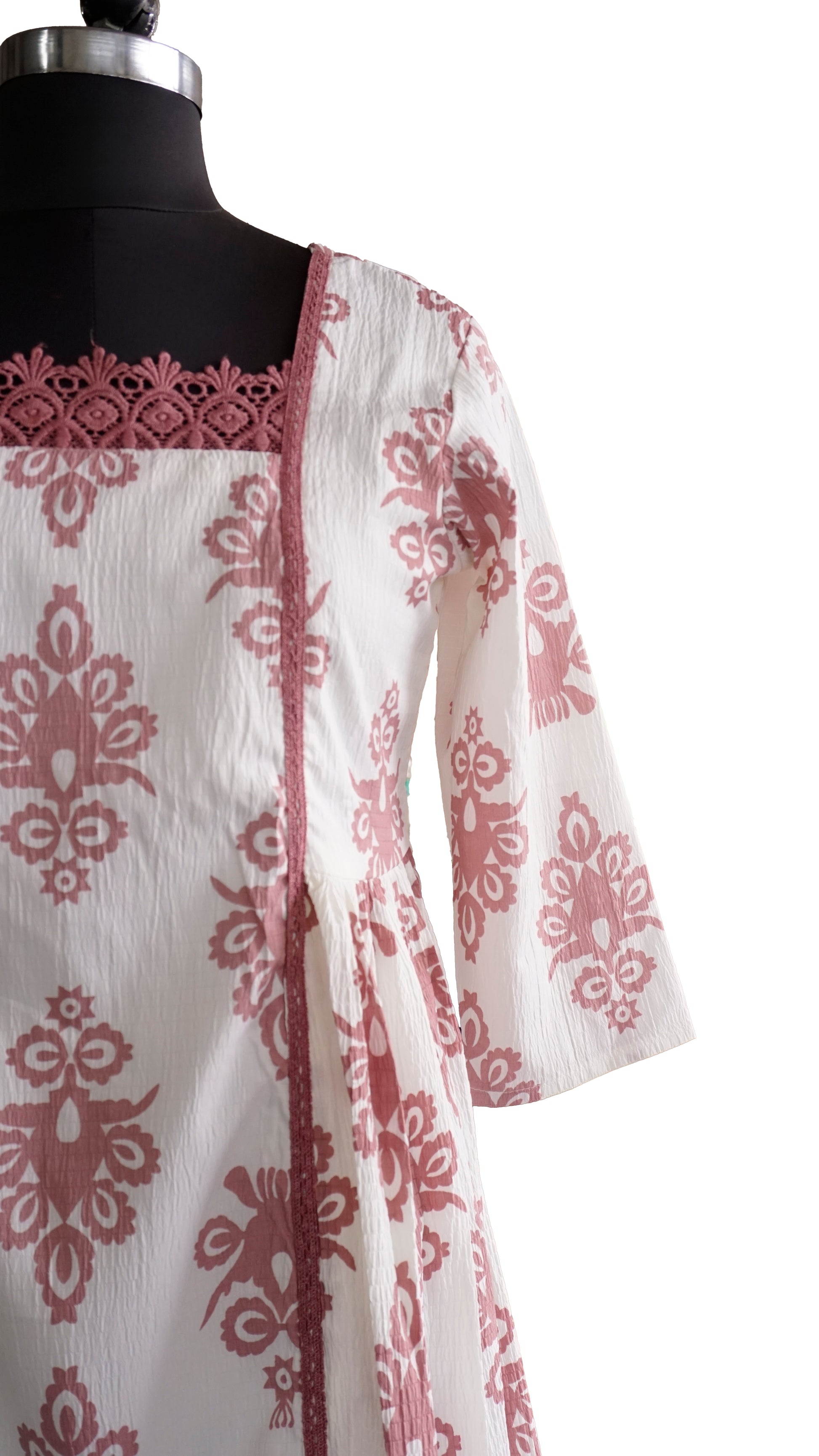 Floral cotton kurti, Women’s cotton kurti,  Daily wear kurti, Peach color kurti, Lightweight cotton kurti, Straight fit kurti, Elegant floral kurt