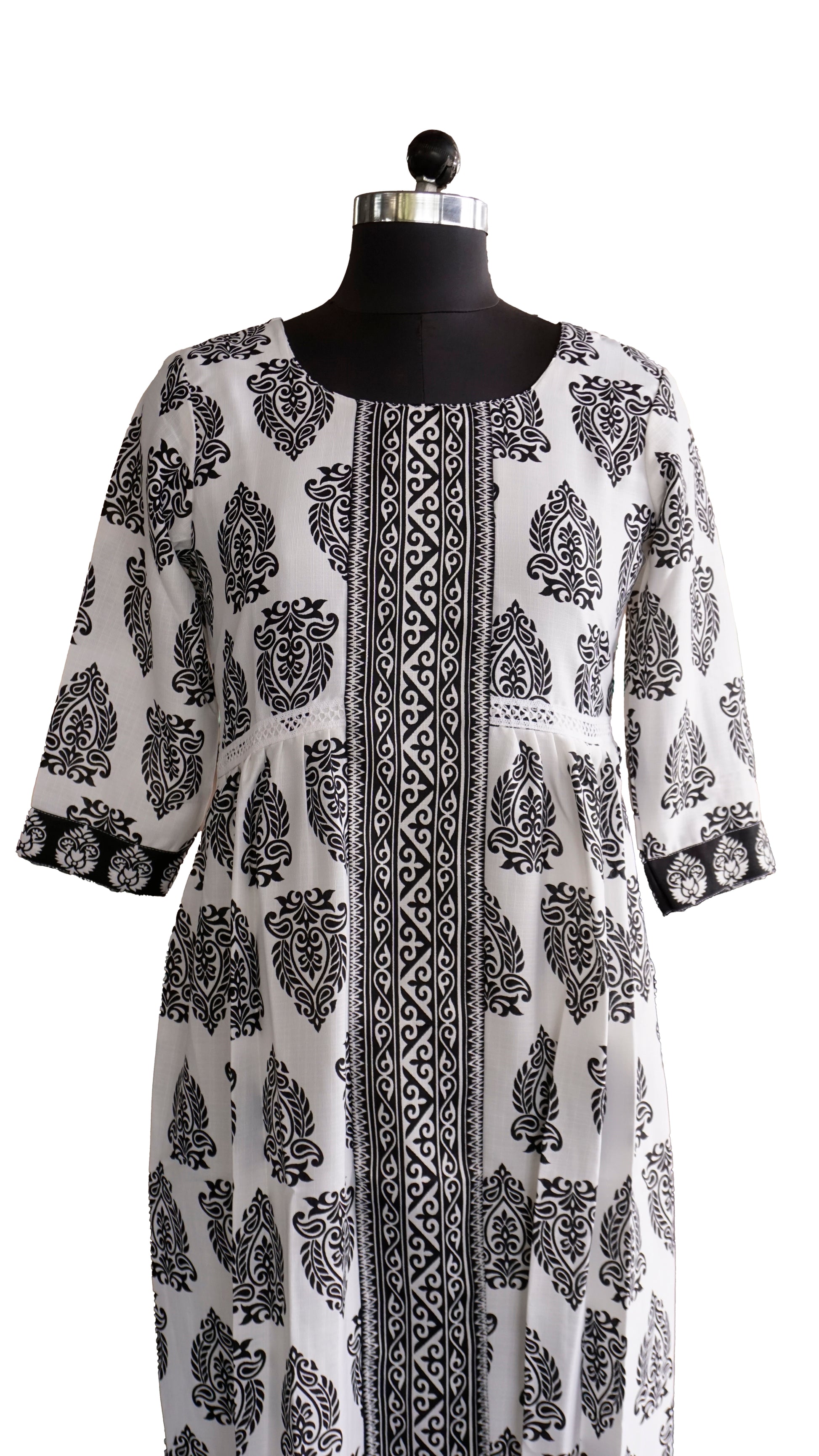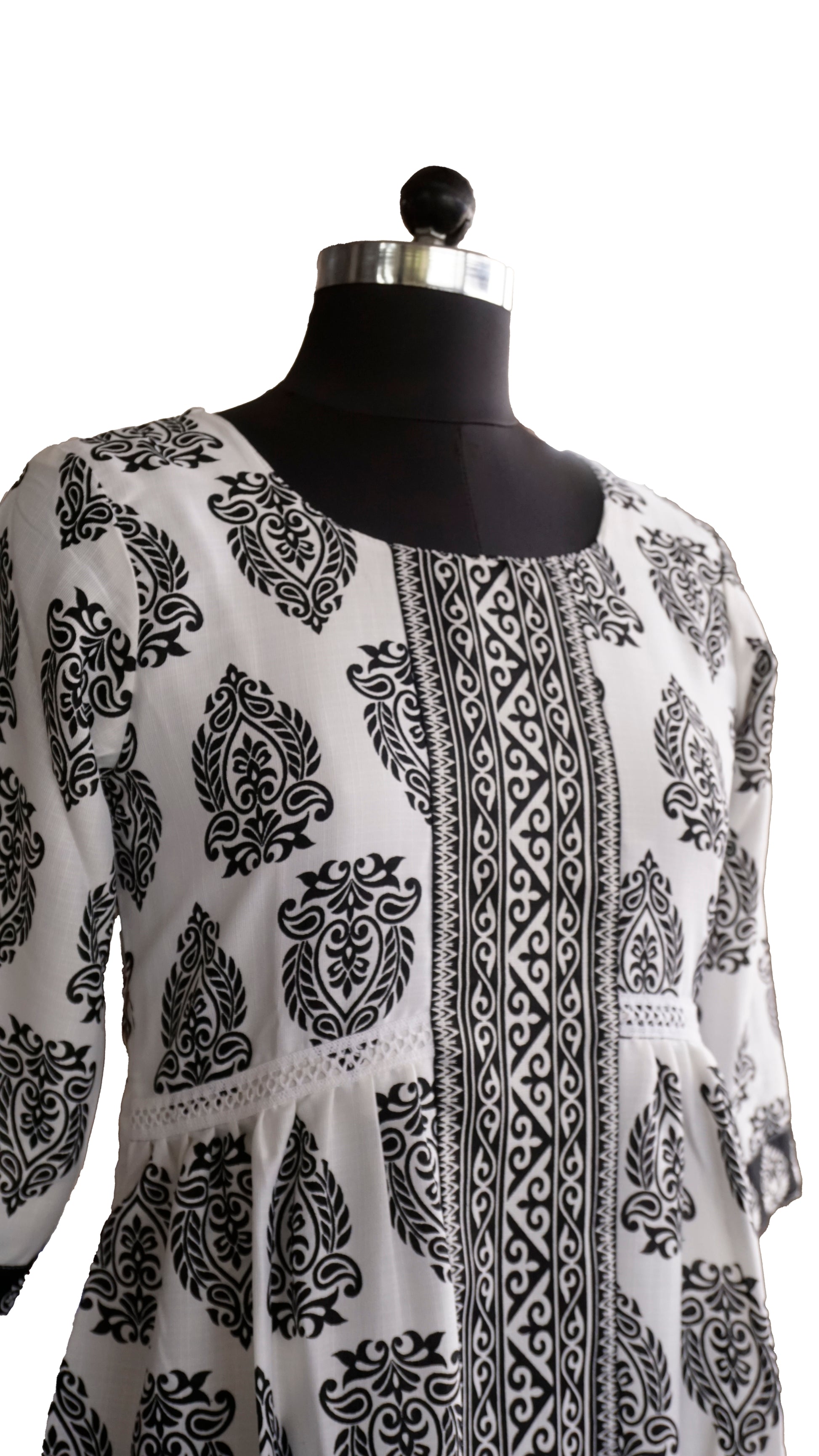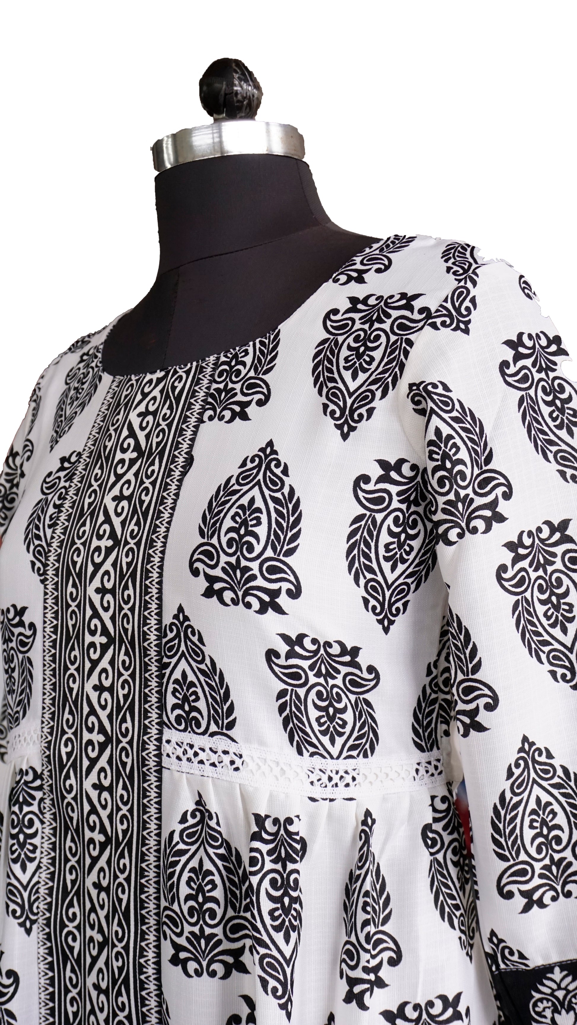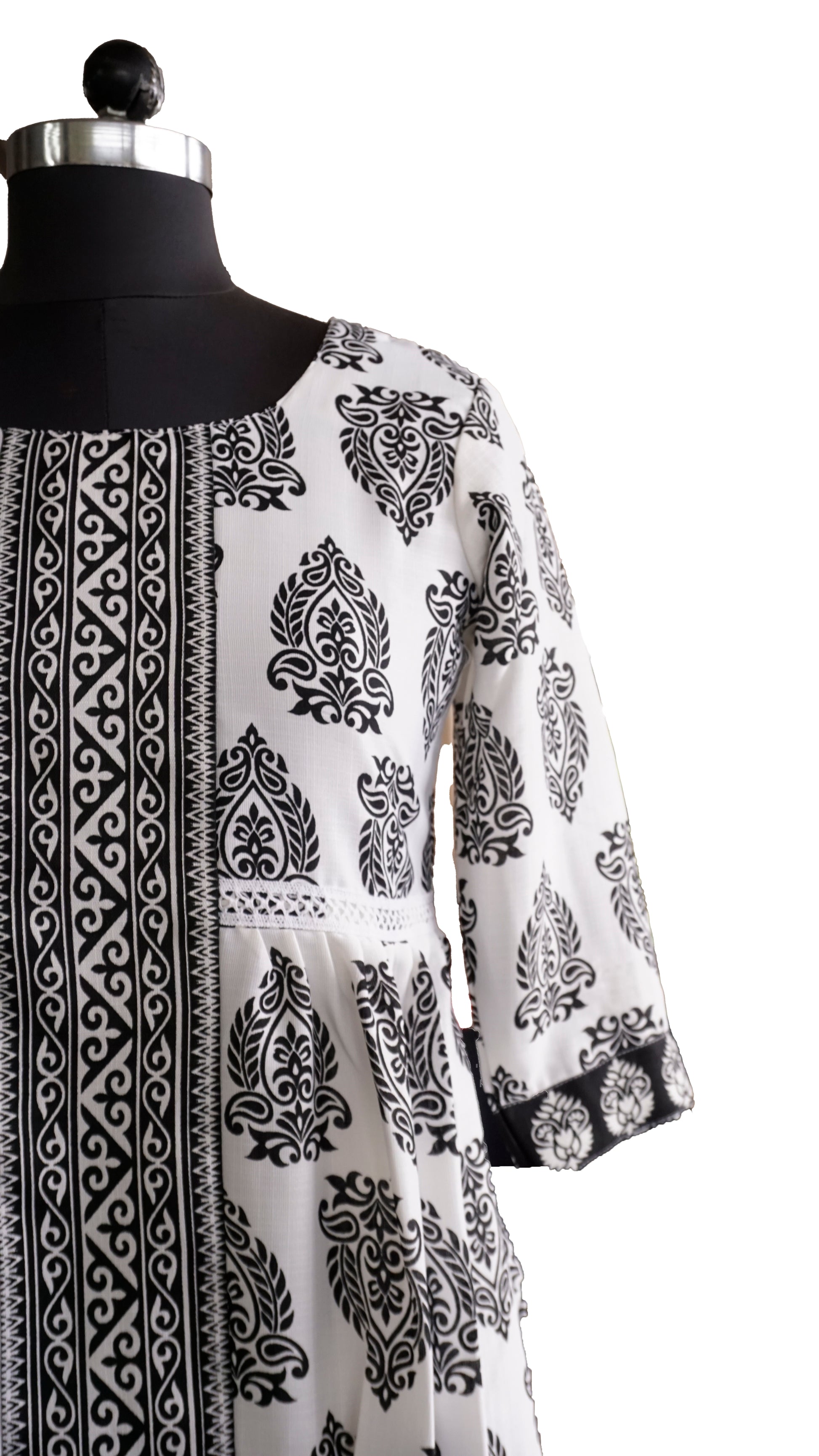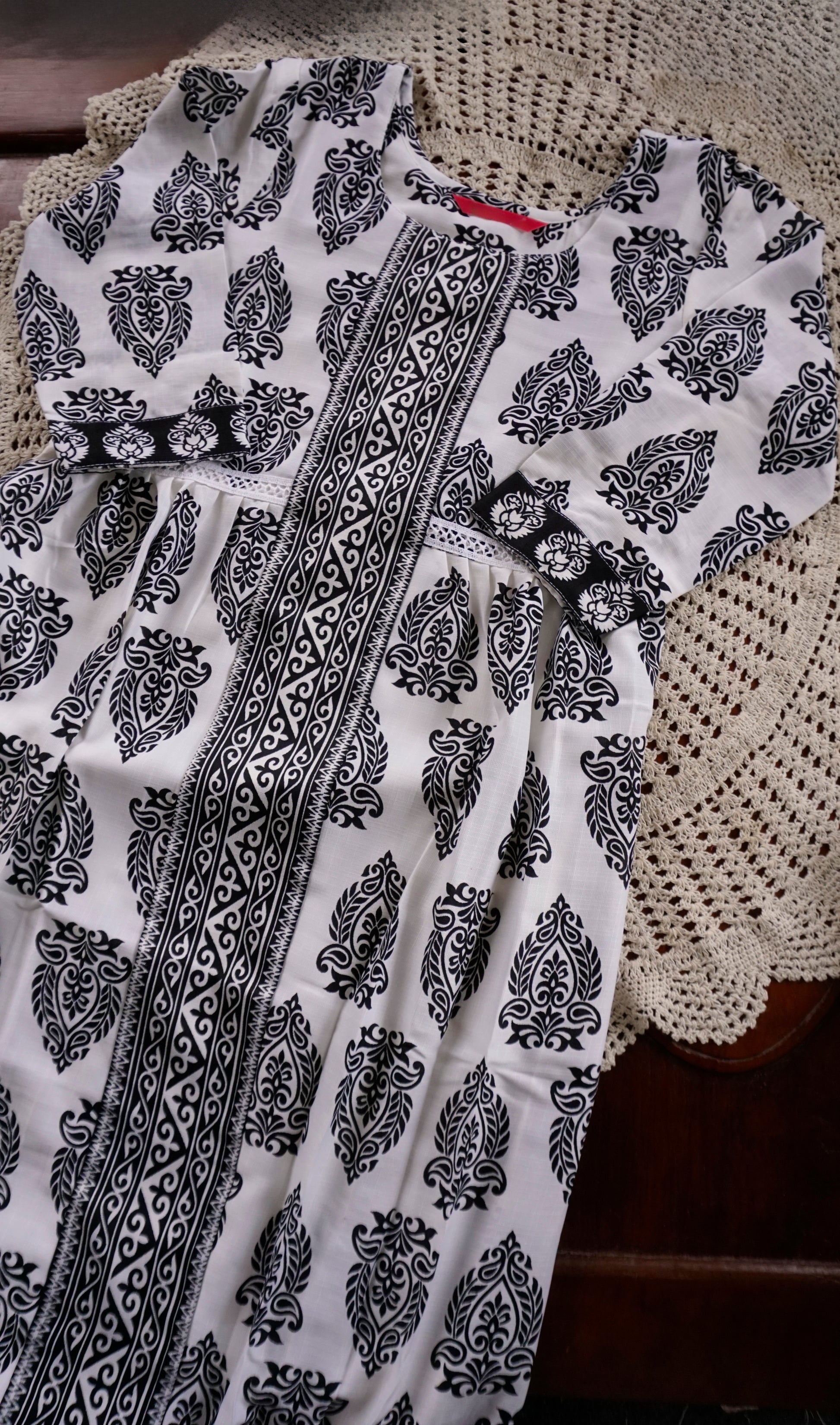 Elevate your everyday style with this elegant Black & White Cotton Printed Kurti.