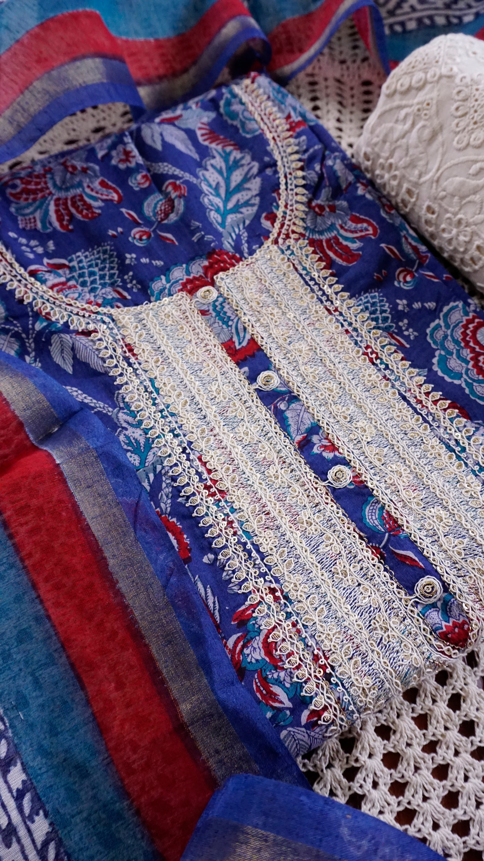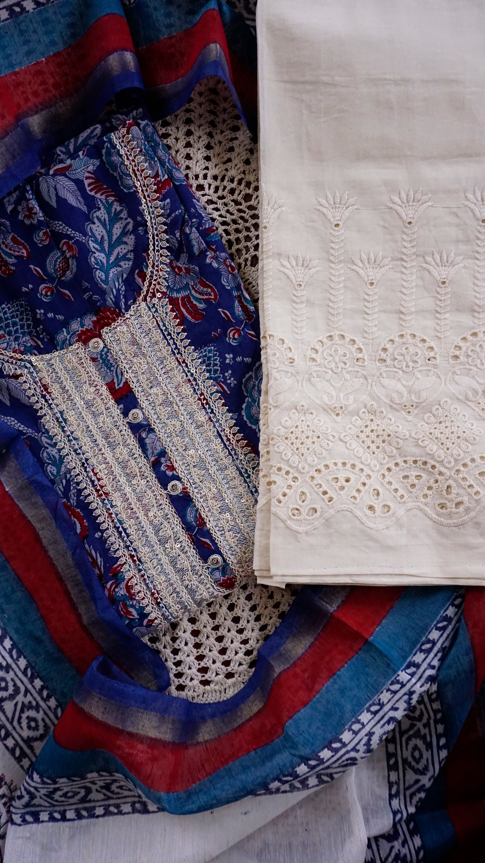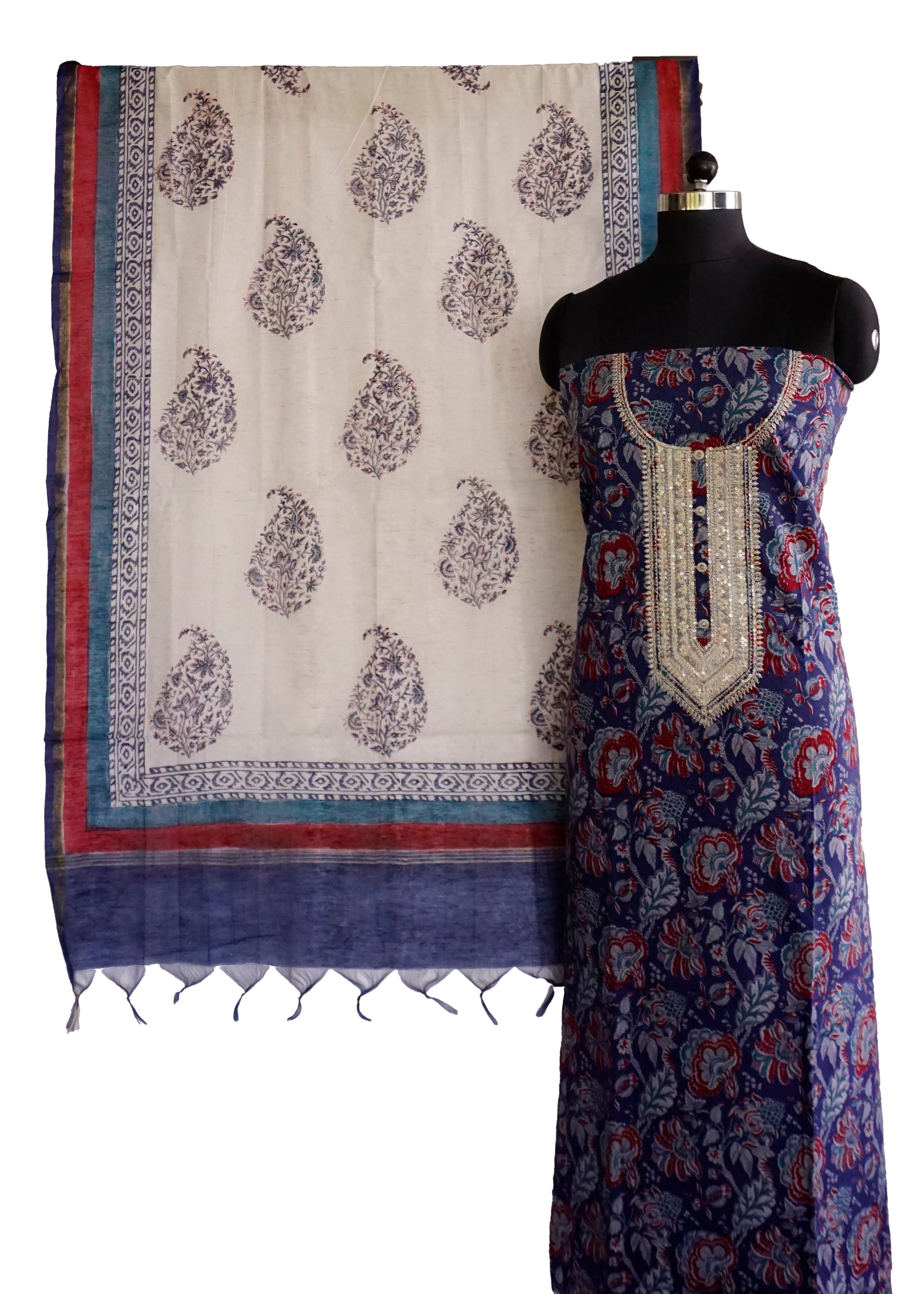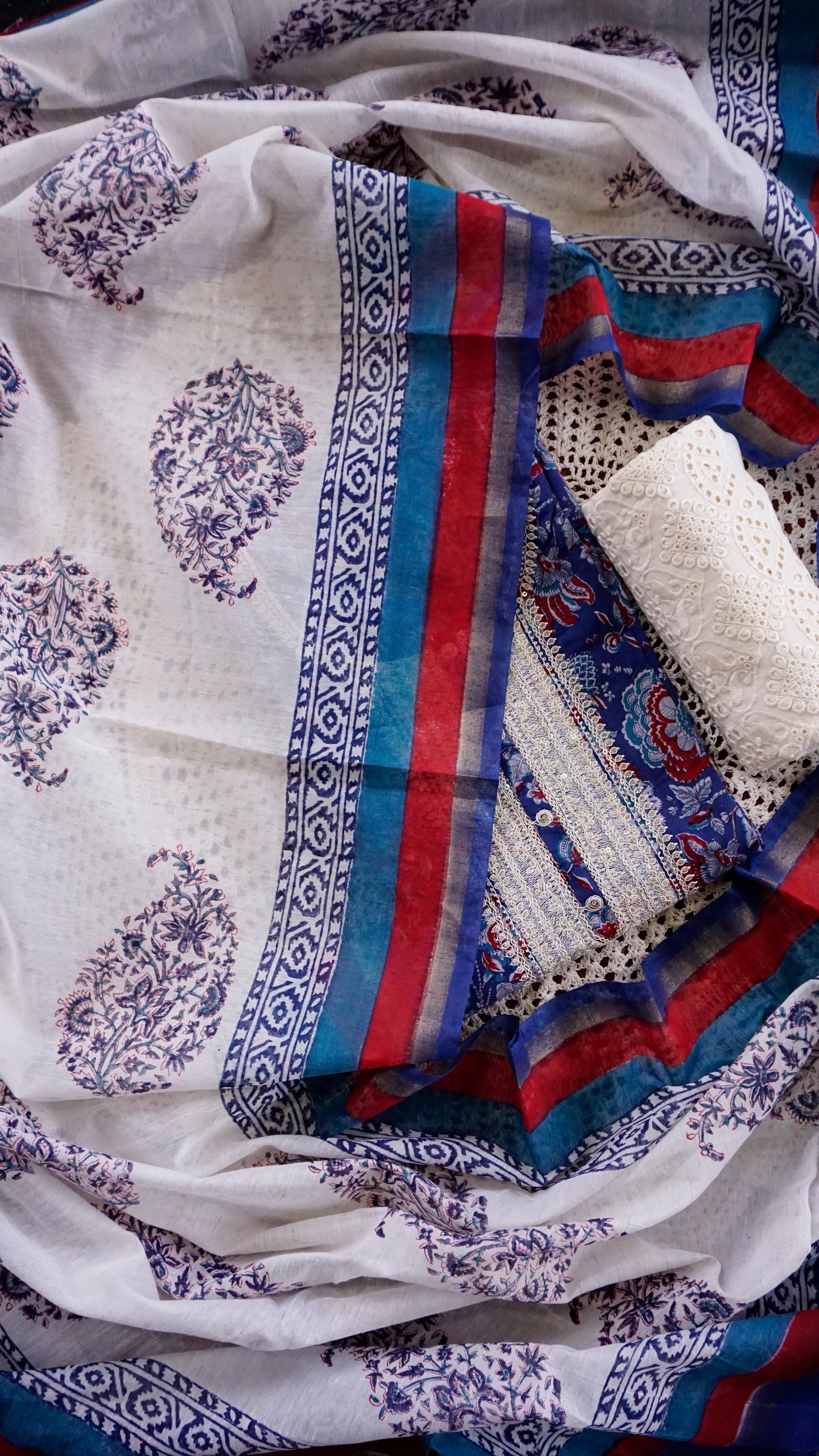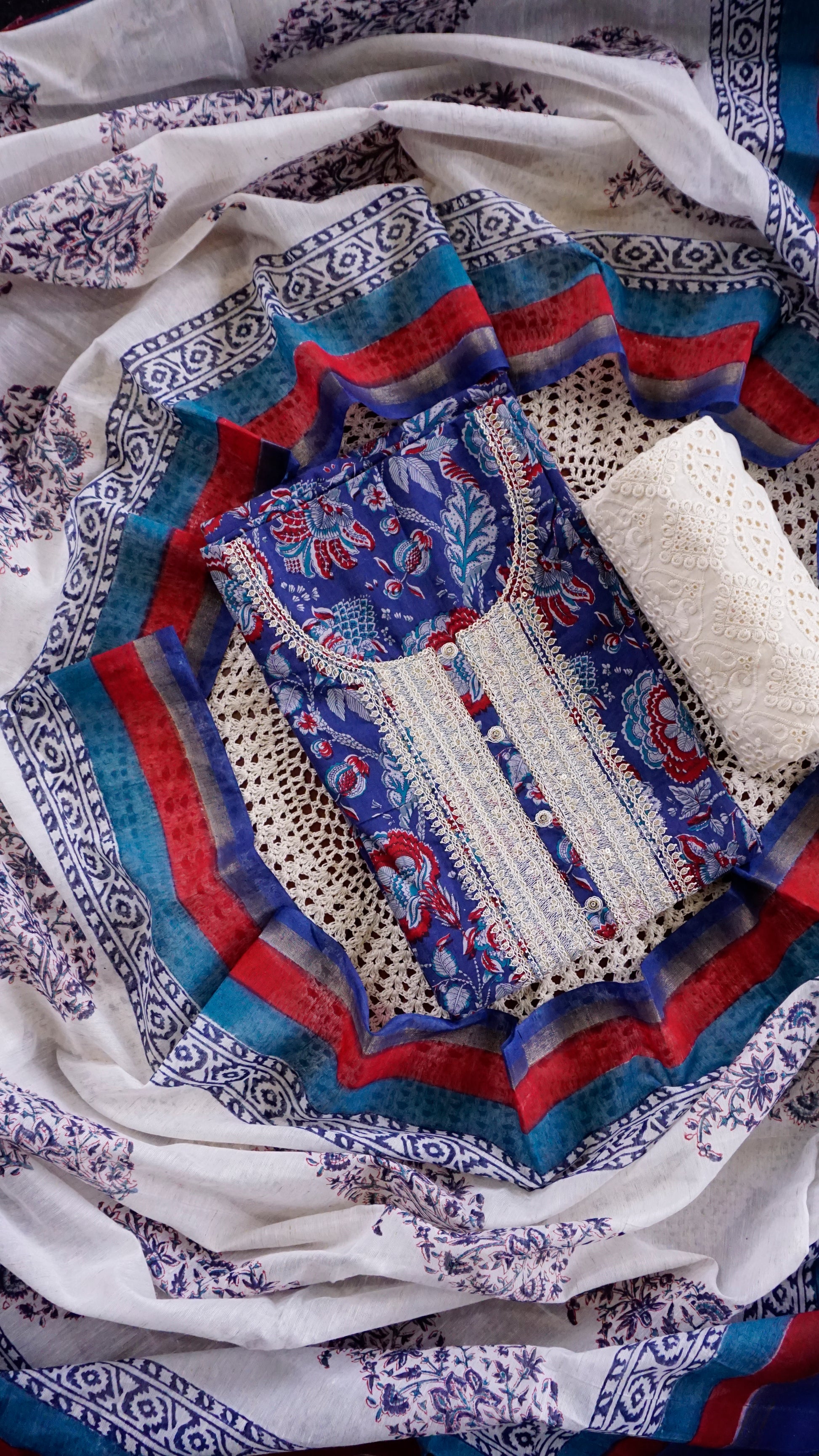 Unstitched Salwar, Cotton Dress Material, Printed Salwar Set, Embroidered Neck, Block Print Dress, Ethnic Wear, Casual Wear, Daily Wear, Summer Collection, Lightweight Fabric,
