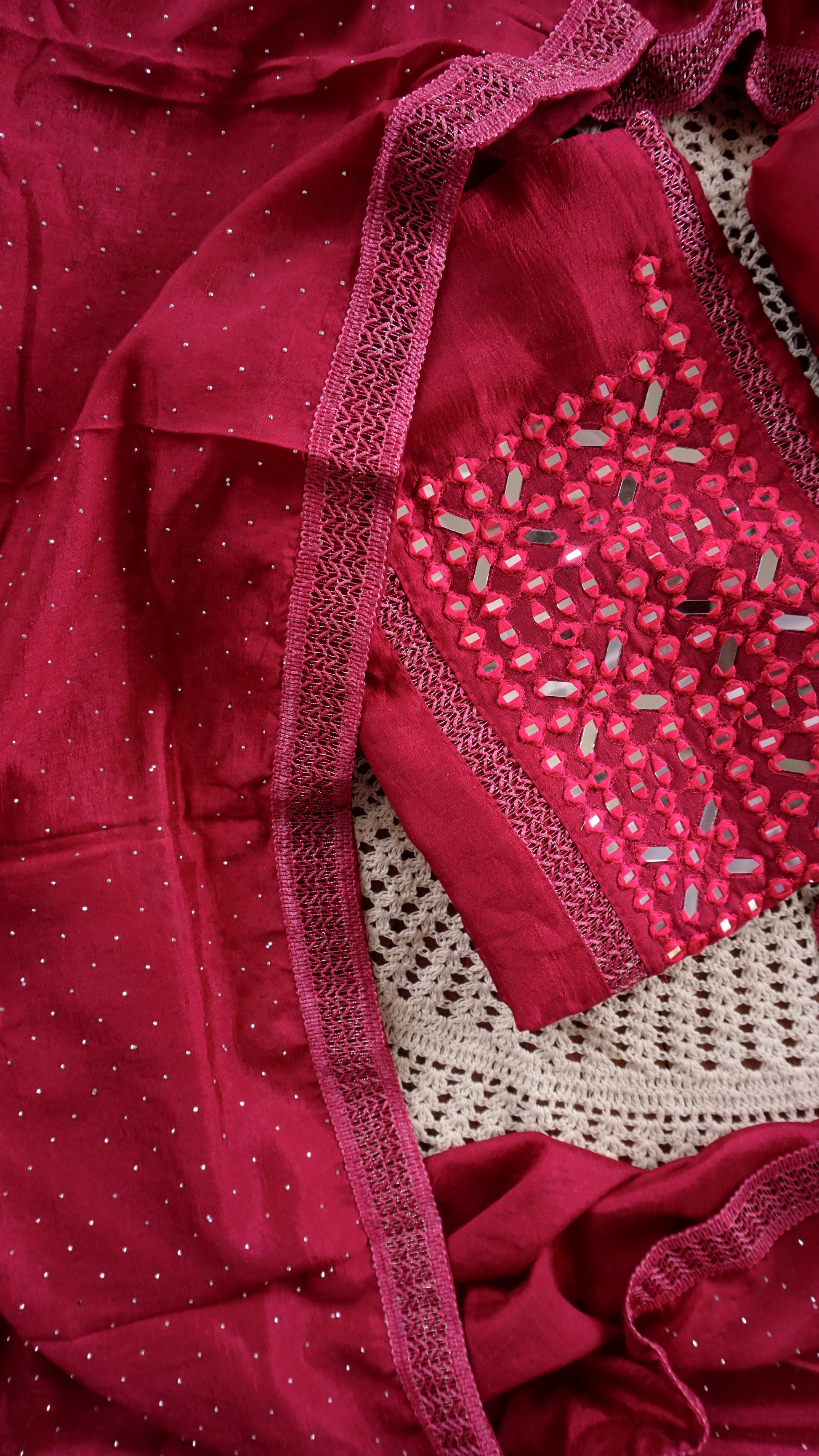 ✨ Premium Mirror Work Unstitched Salwar Set ✨
