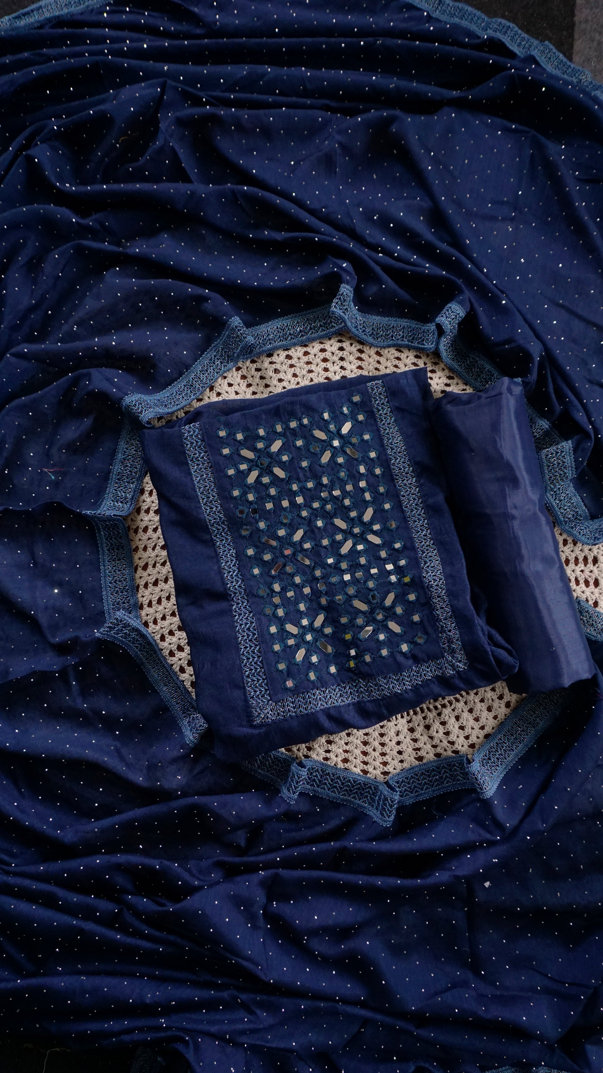 ✨ Premium Mirror Work Unstitched Salwar Set ✨
