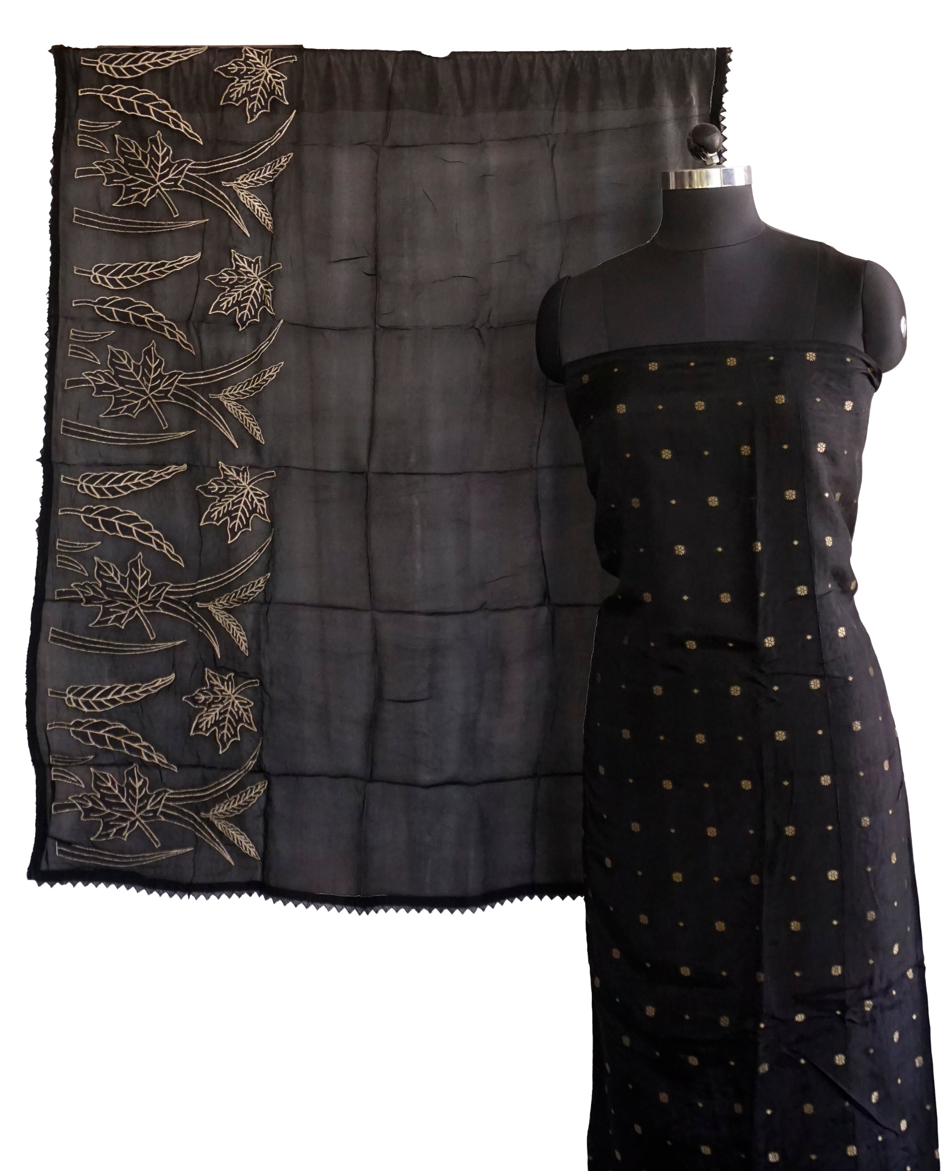 Elegant Banarasi Unstitched Salwar Set – Jet Black