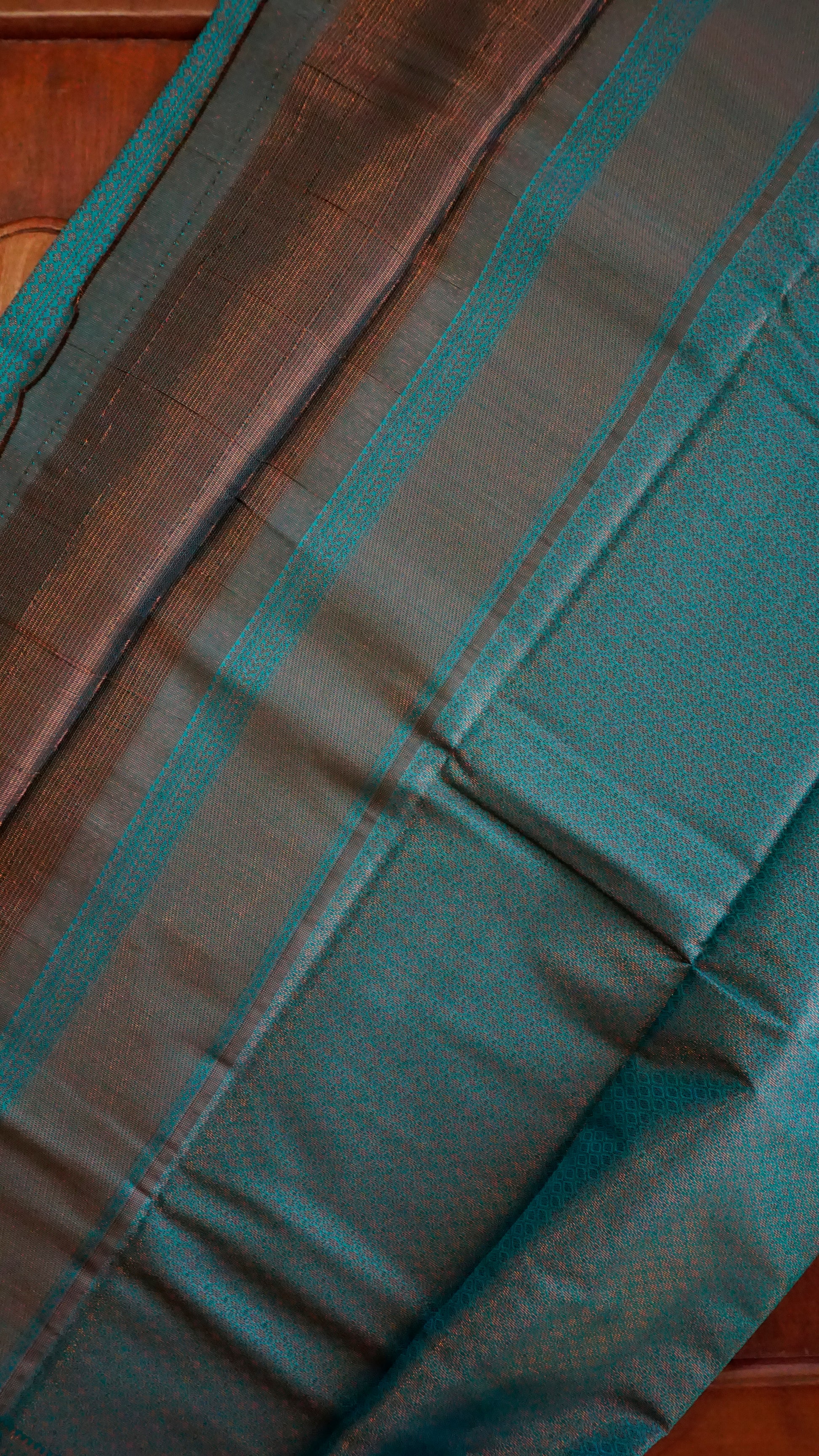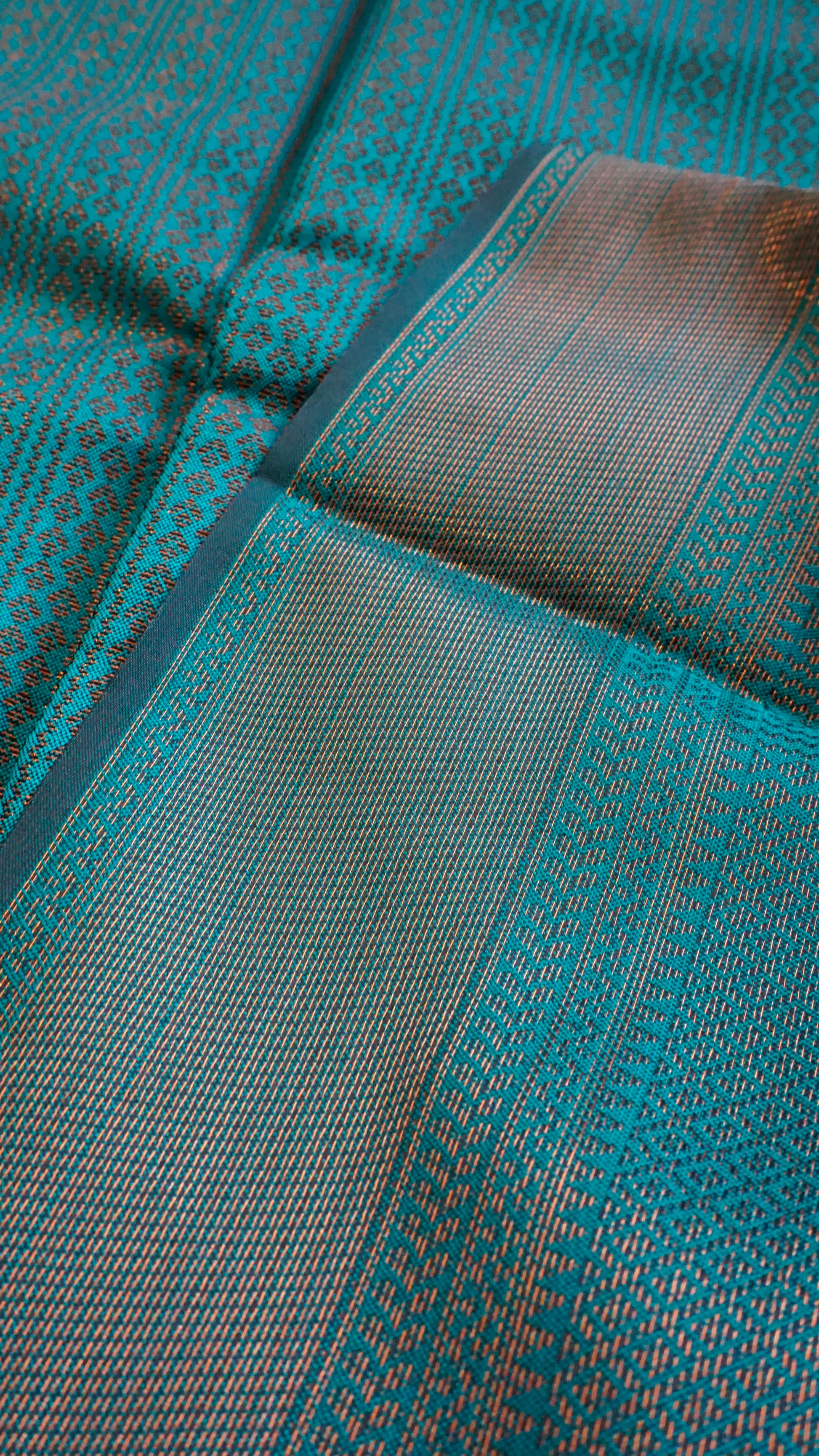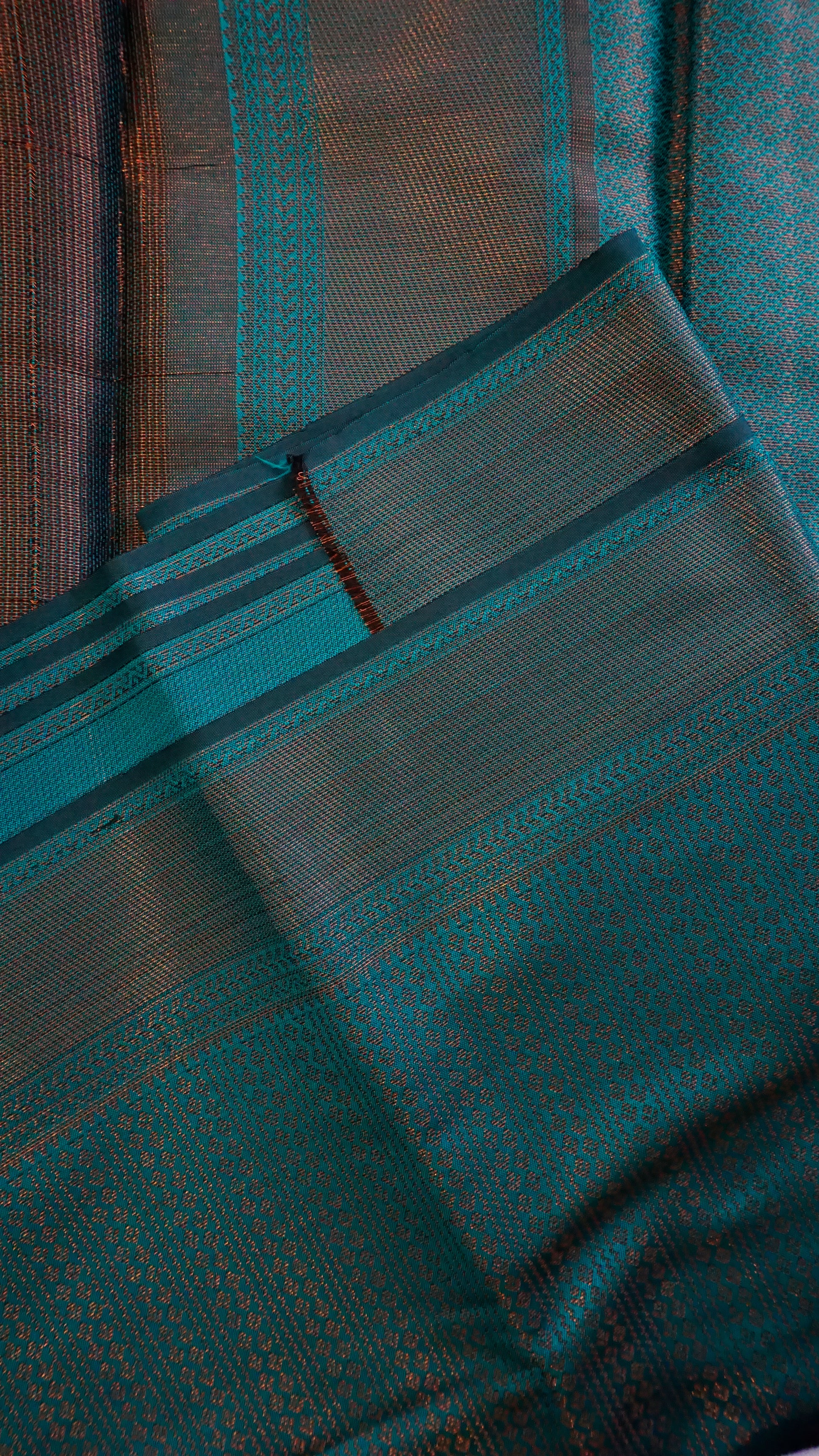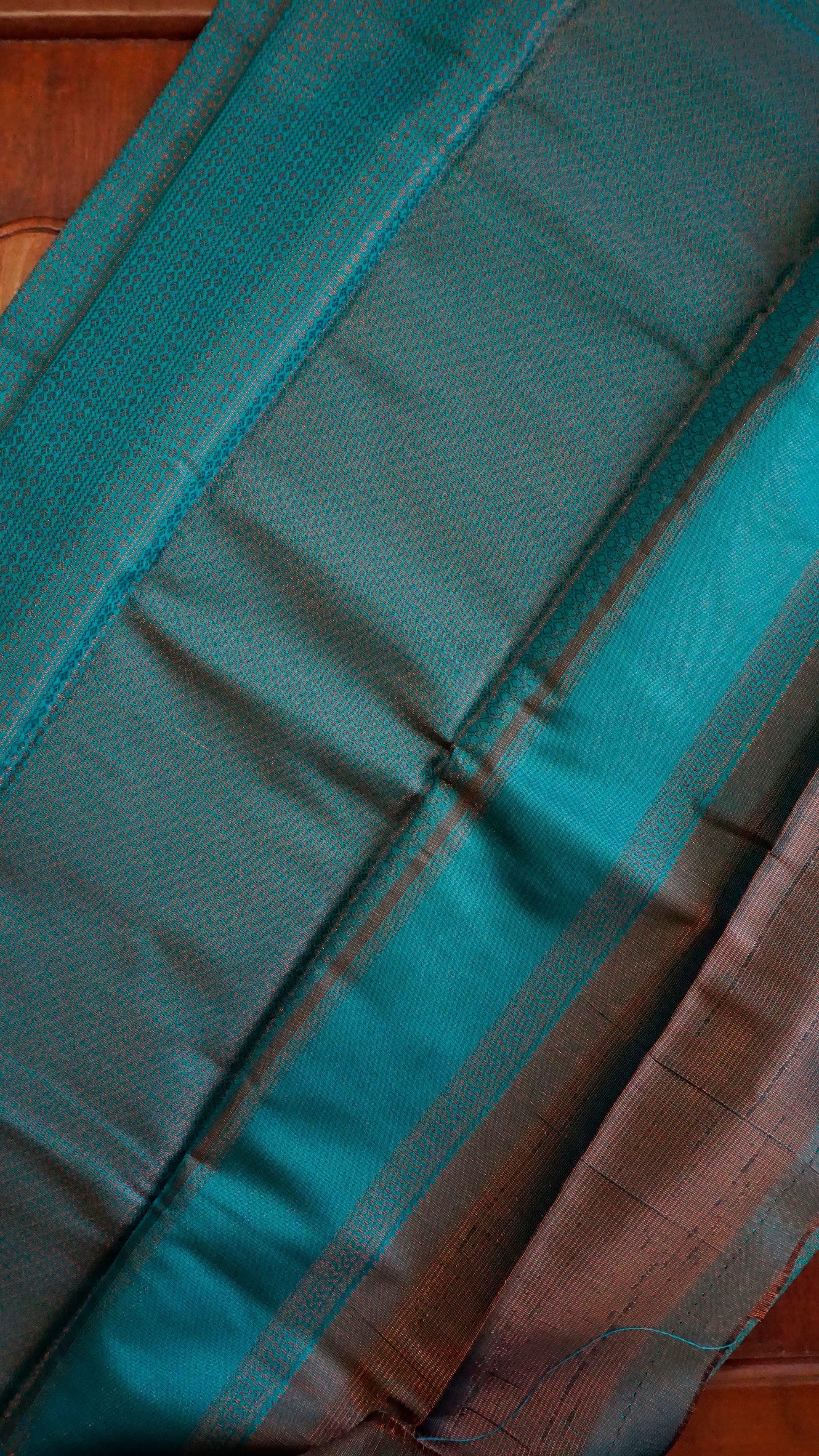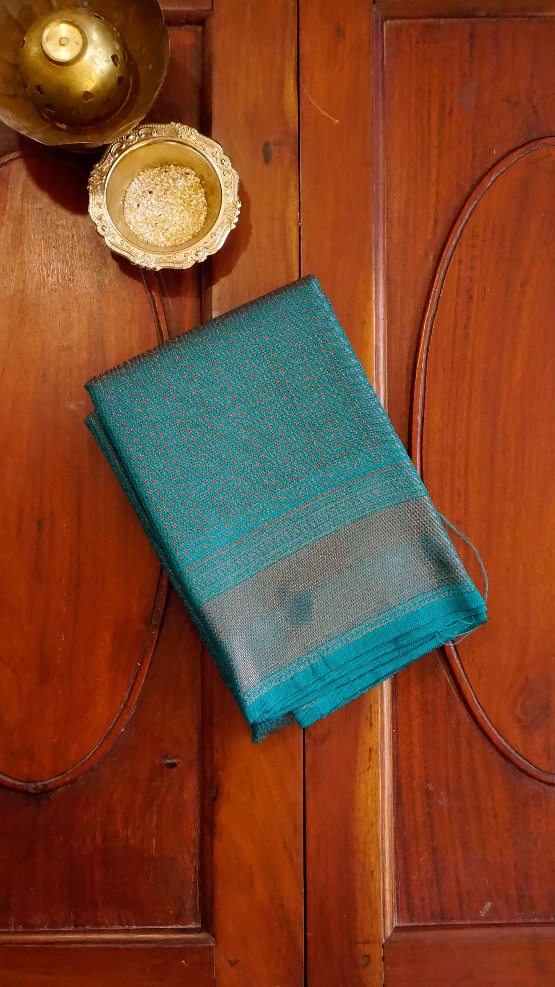 Semi silk saree, teal green saree, woven silk saree, traditional saree, festive saree, ethnic wear saree, elegant saree, wedding saree