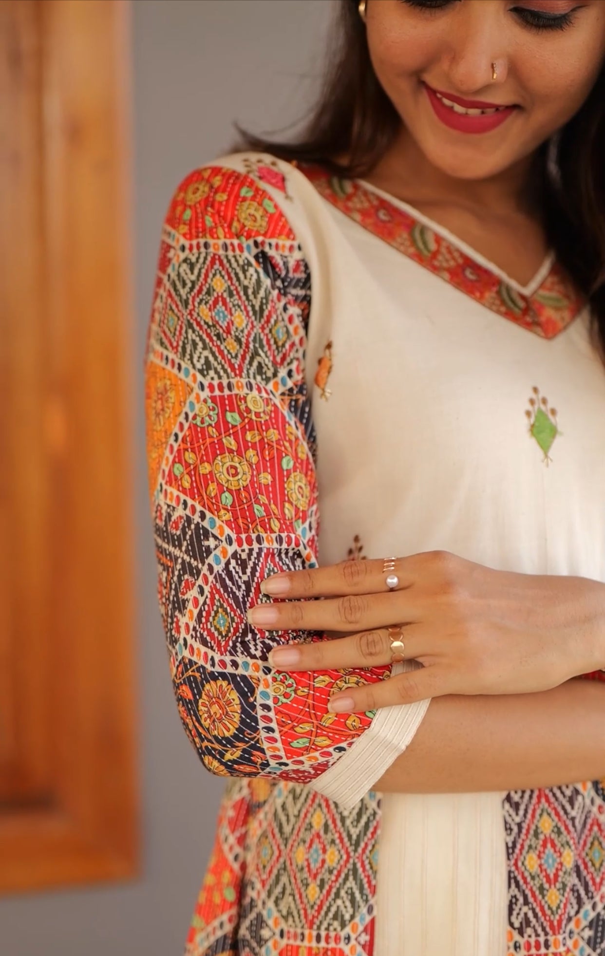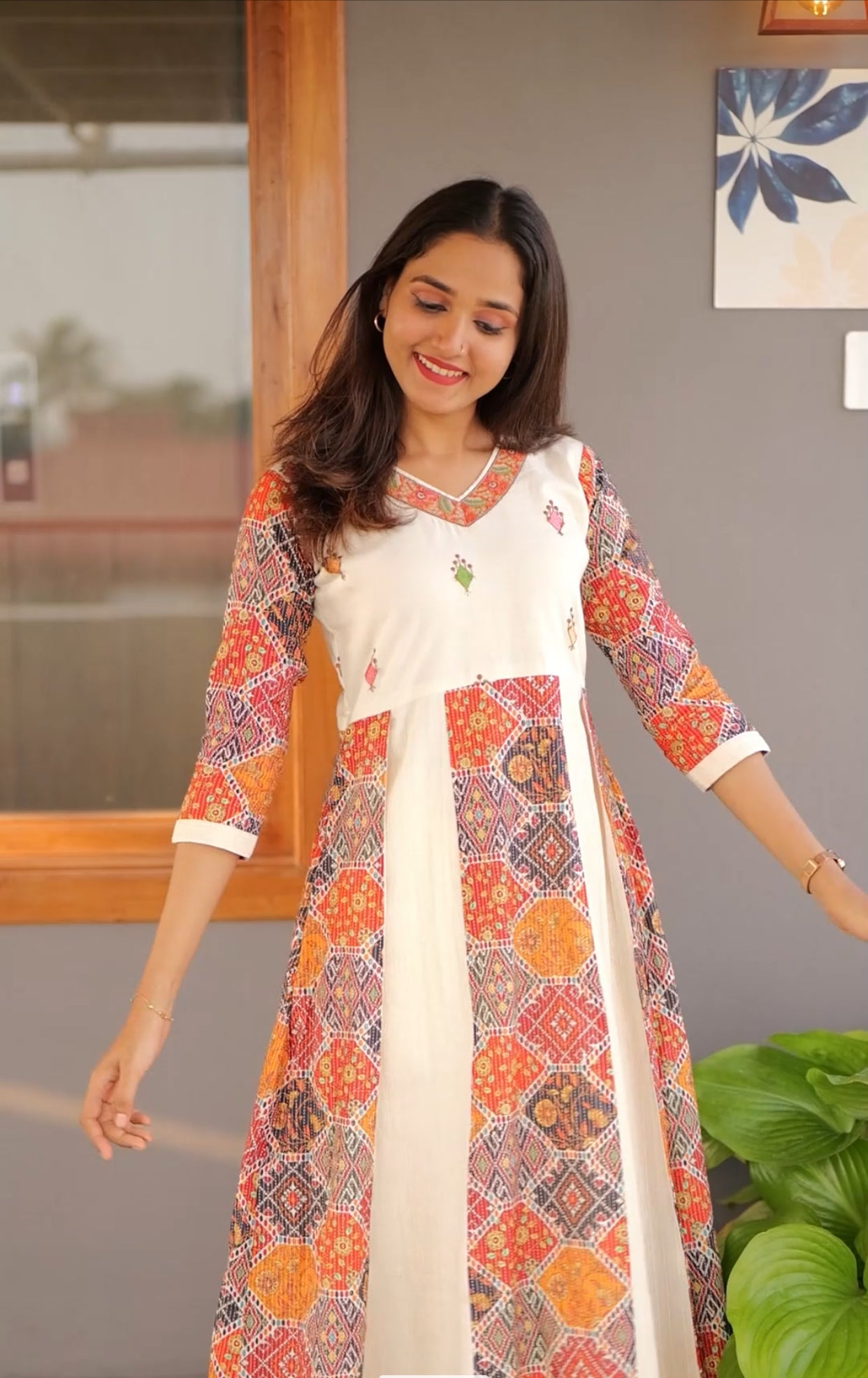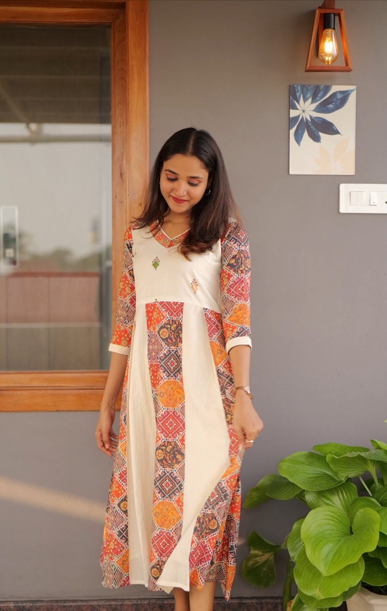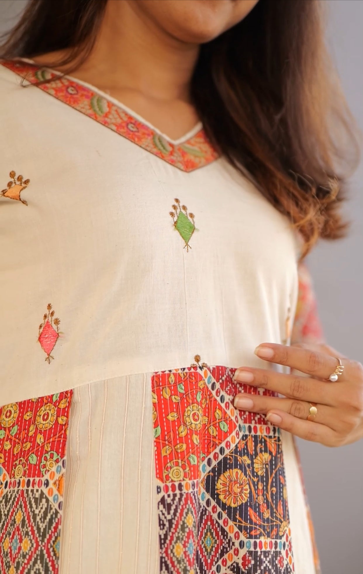 Premium cotton Kurthi with embroidery detailing and embellishments lining present