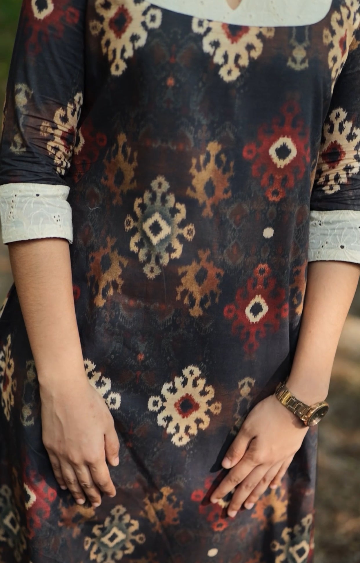 Premium Rayon fabric with Hakkoba embellishments. Lining present.