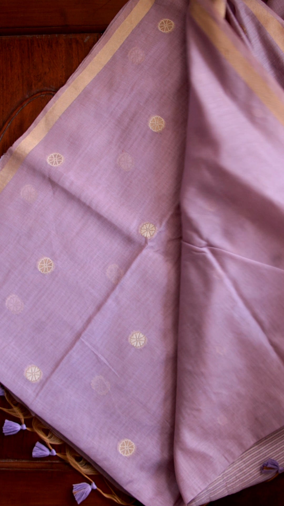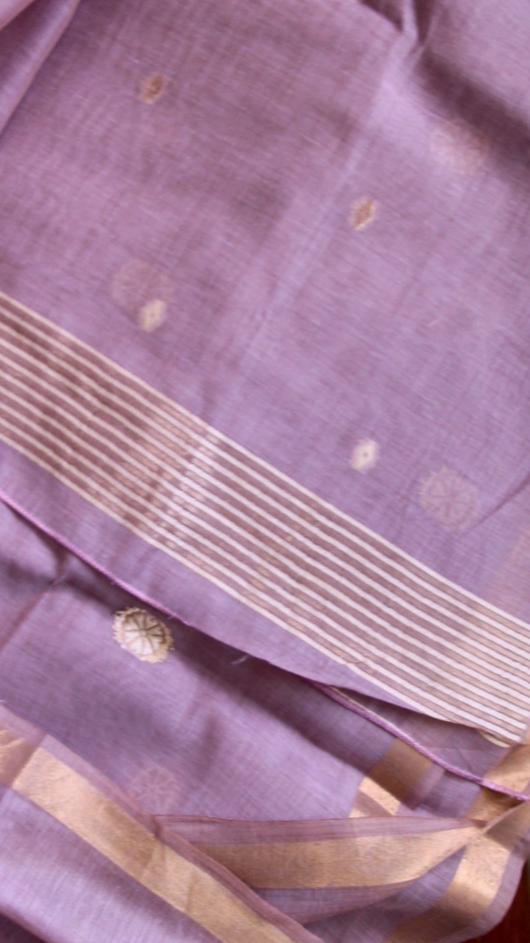 Fabric and Weave: It looks like the saree is composed of a soft, light cotton, most likely mul cotton. This kind of cloth is perfect for warm weather because of its soft drape and cozy texture.