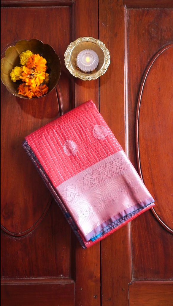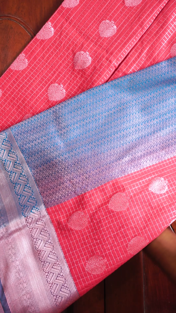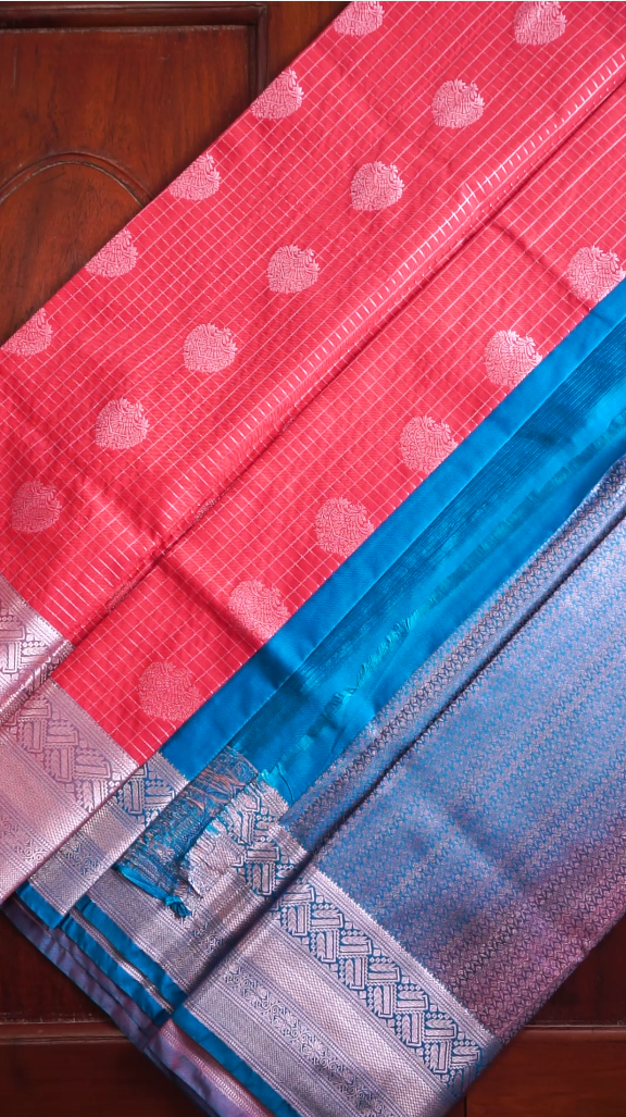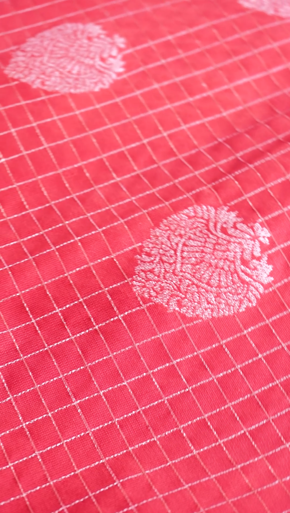 Work: Silver zari checks & floral buttas