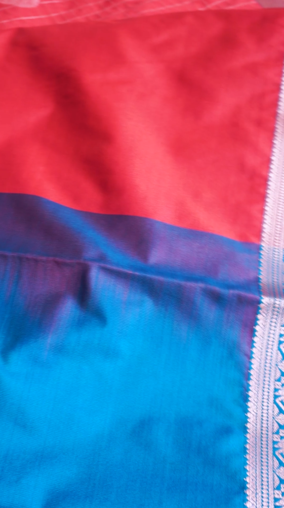Dual-Tone Pink & Blue Semi Silk Saree with Silver Zari Border Fabric: Semi Silk