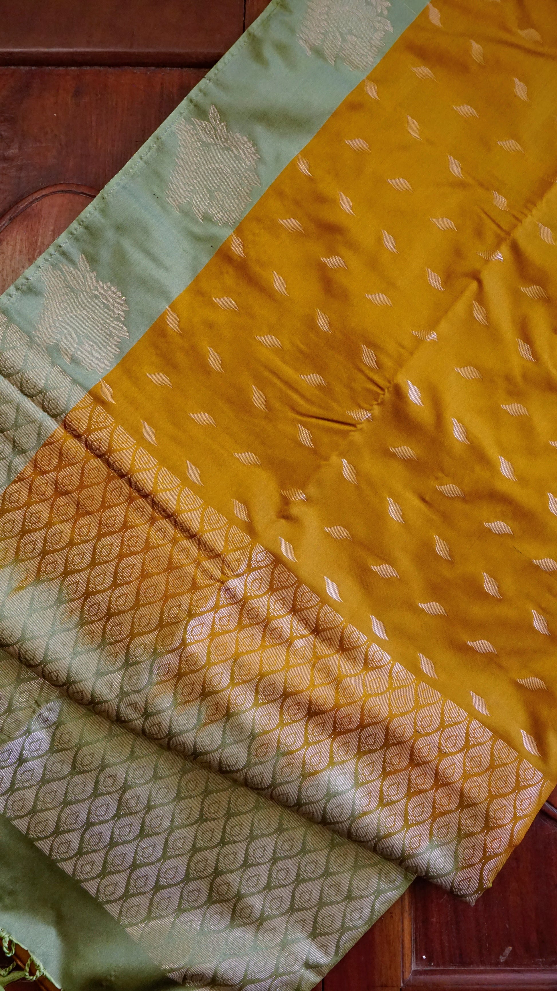 Body: Mustard yellow base with delicate woven motifs for a graceful charm
