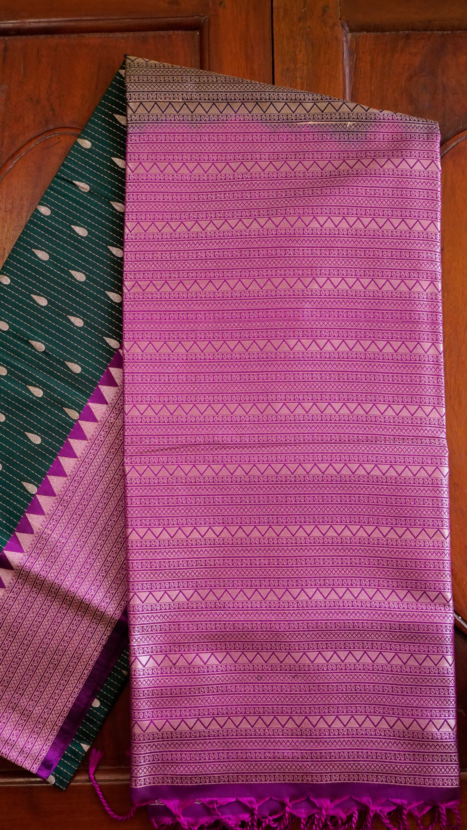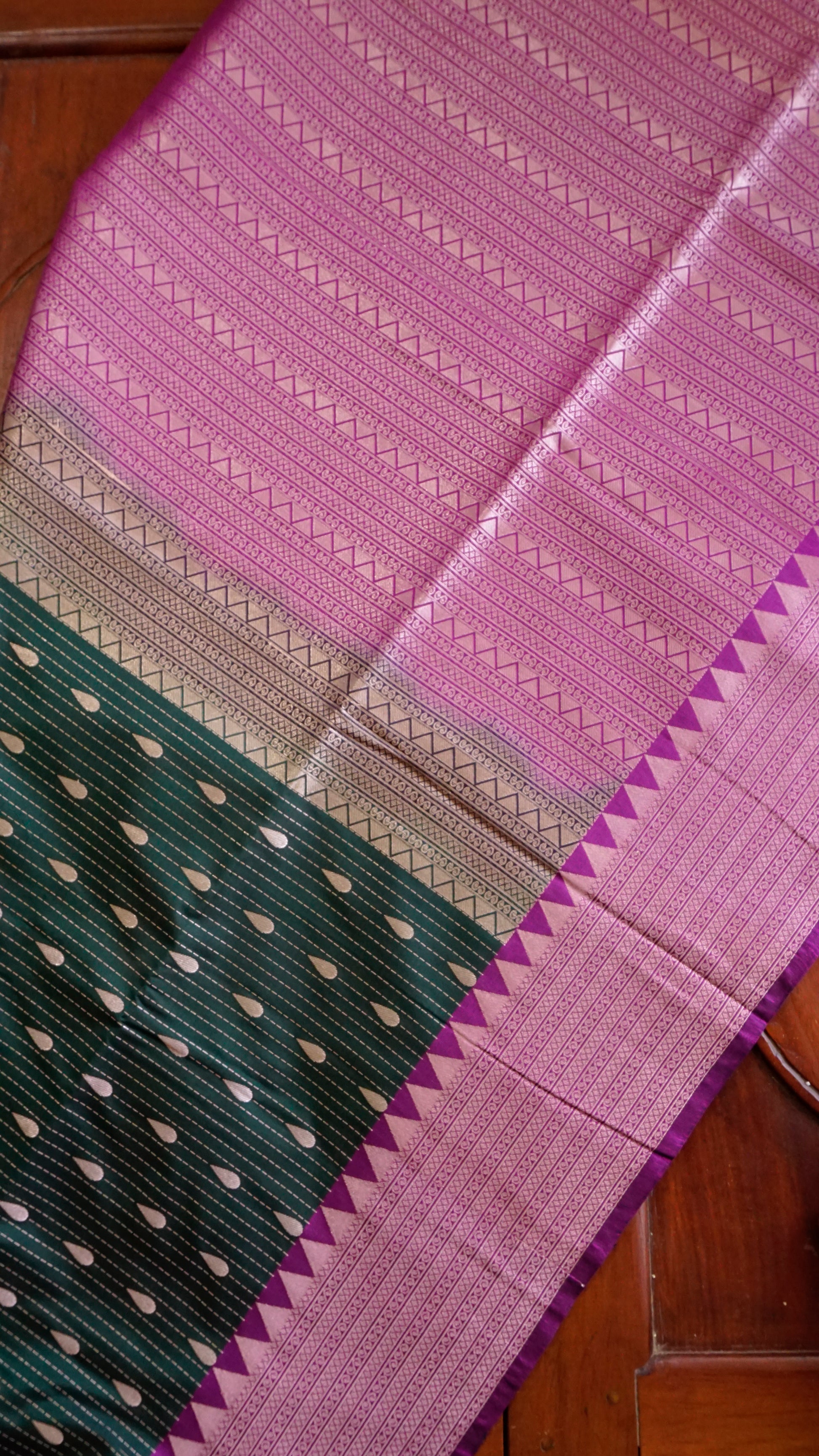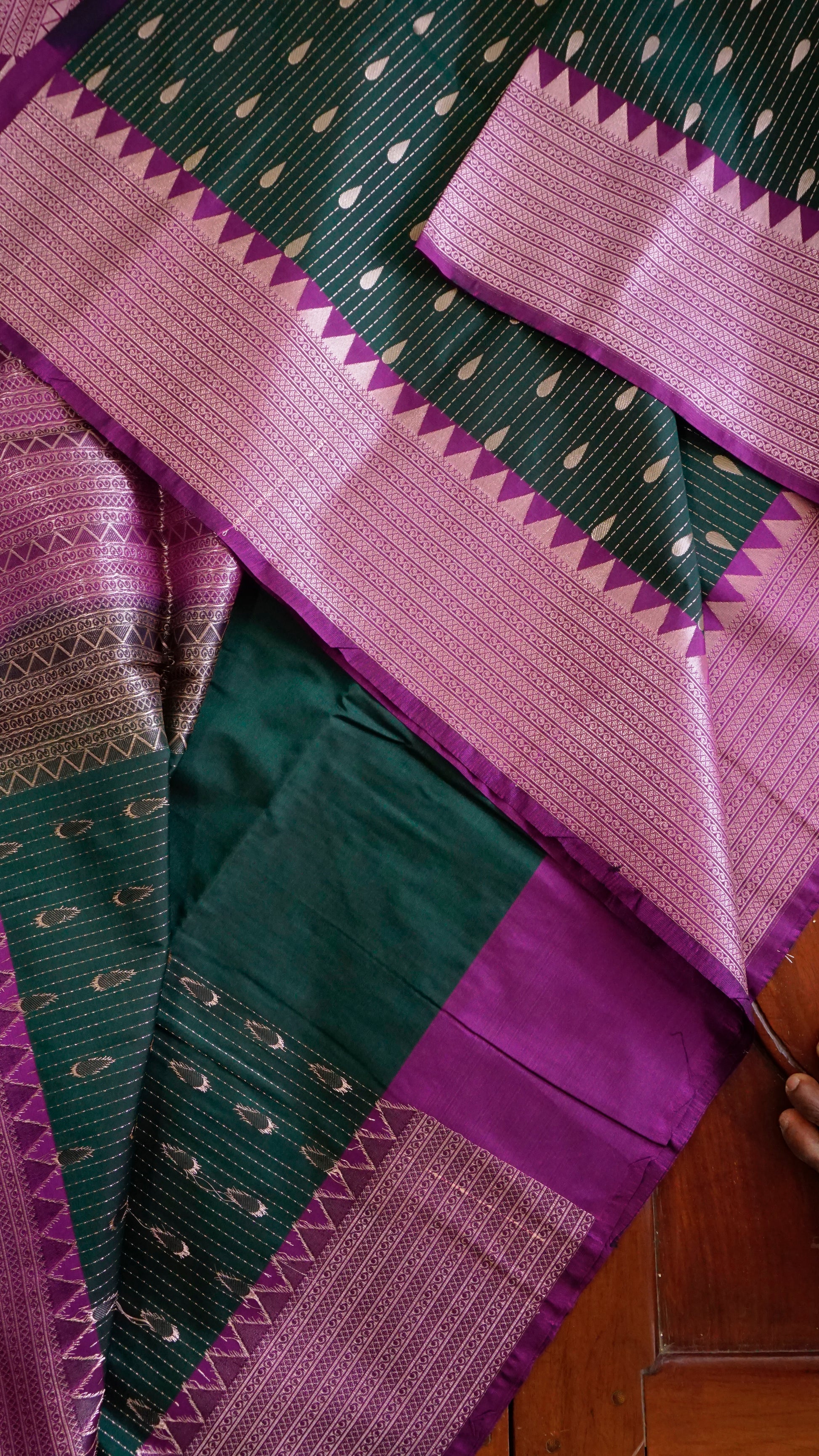 Deep Green Magenta Pallu Semi-Silk Saree 🌿  ✨