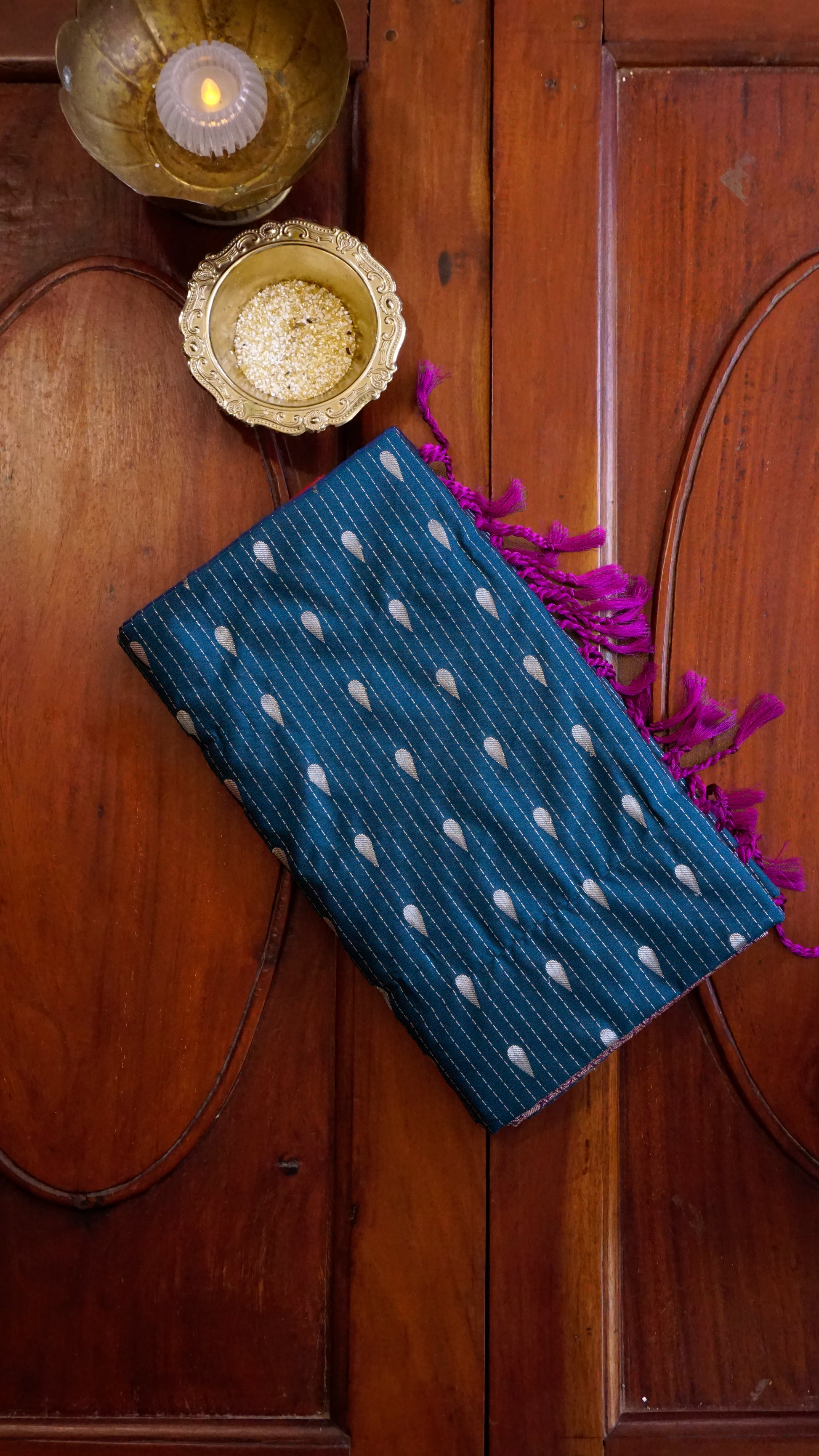 Style Tip: Perfect for weddings, festive occasions, and cultural functions. Pair with a contrast blouse (purple, silver, or even magenta) and silver/gold jewelry for a grand look.