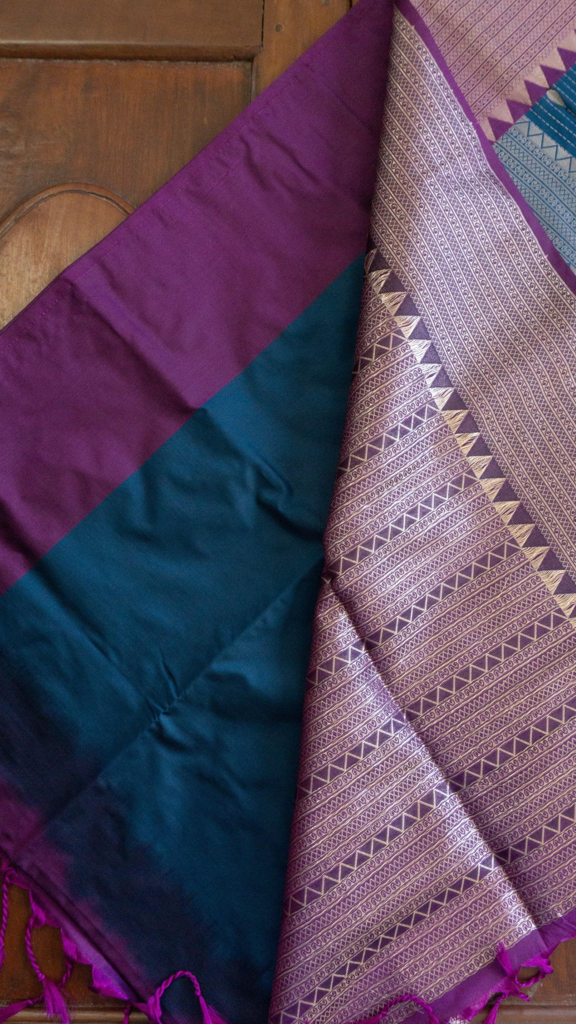 Pallu woven in royal purple with traditional zari detailing