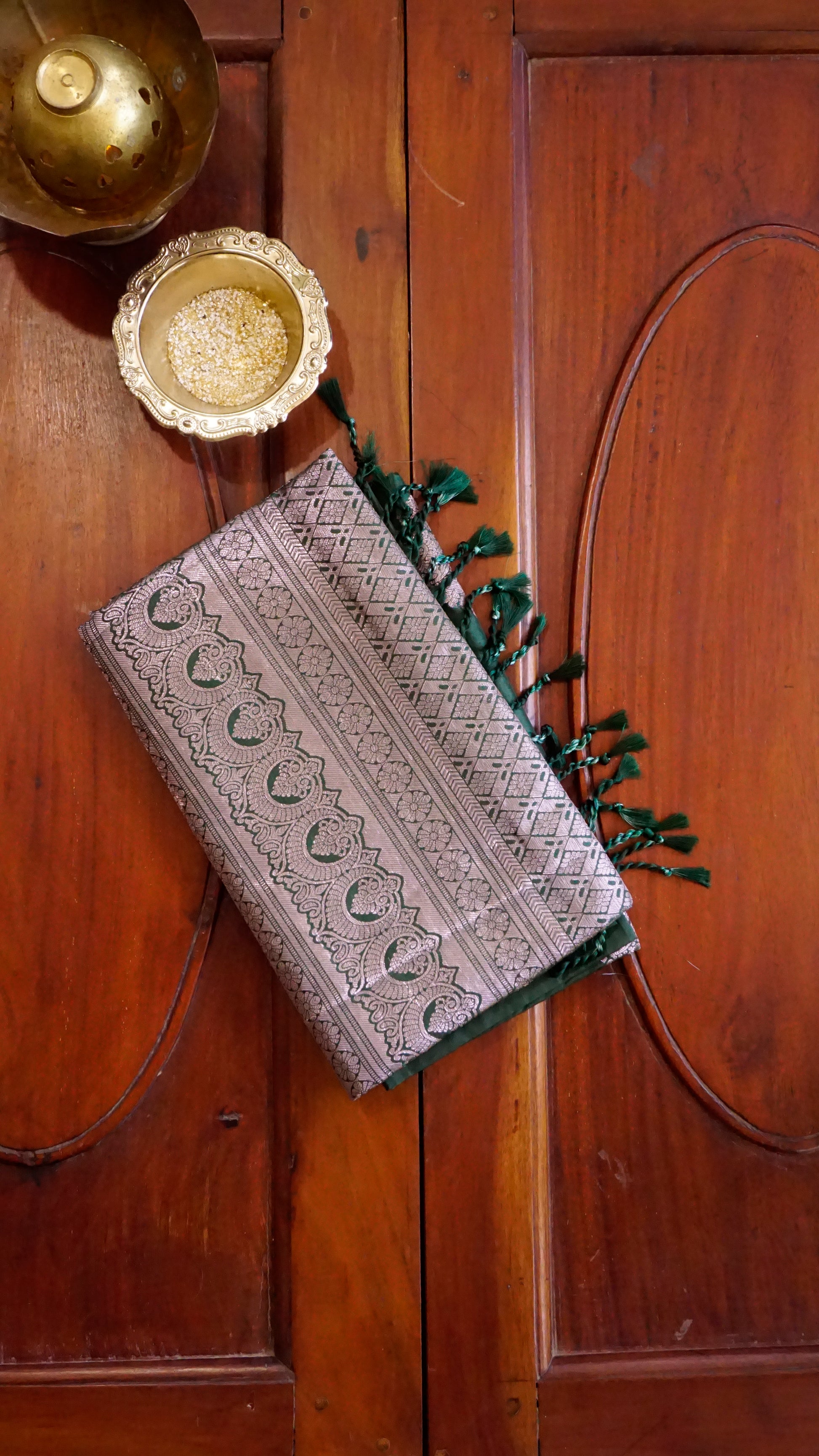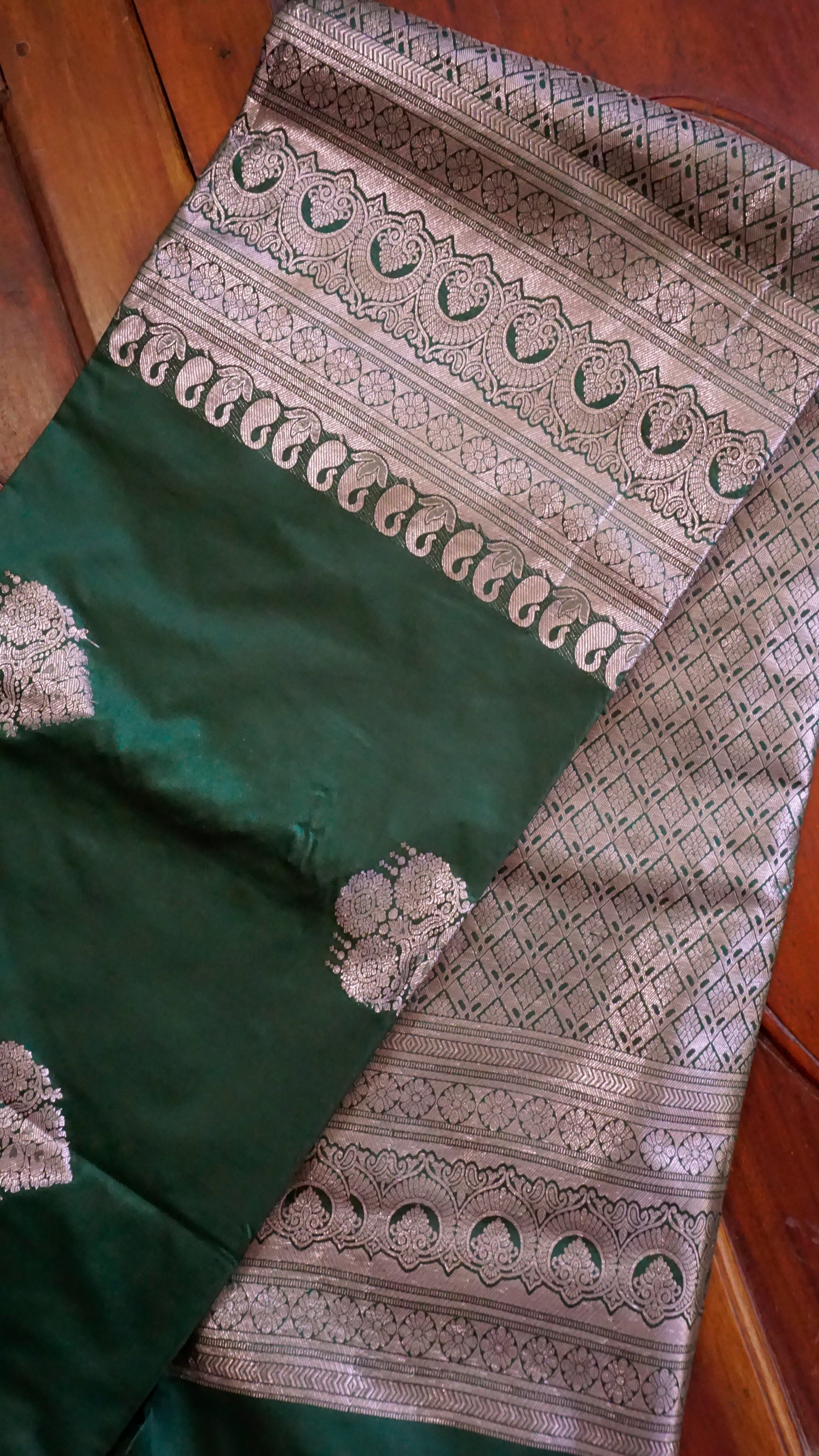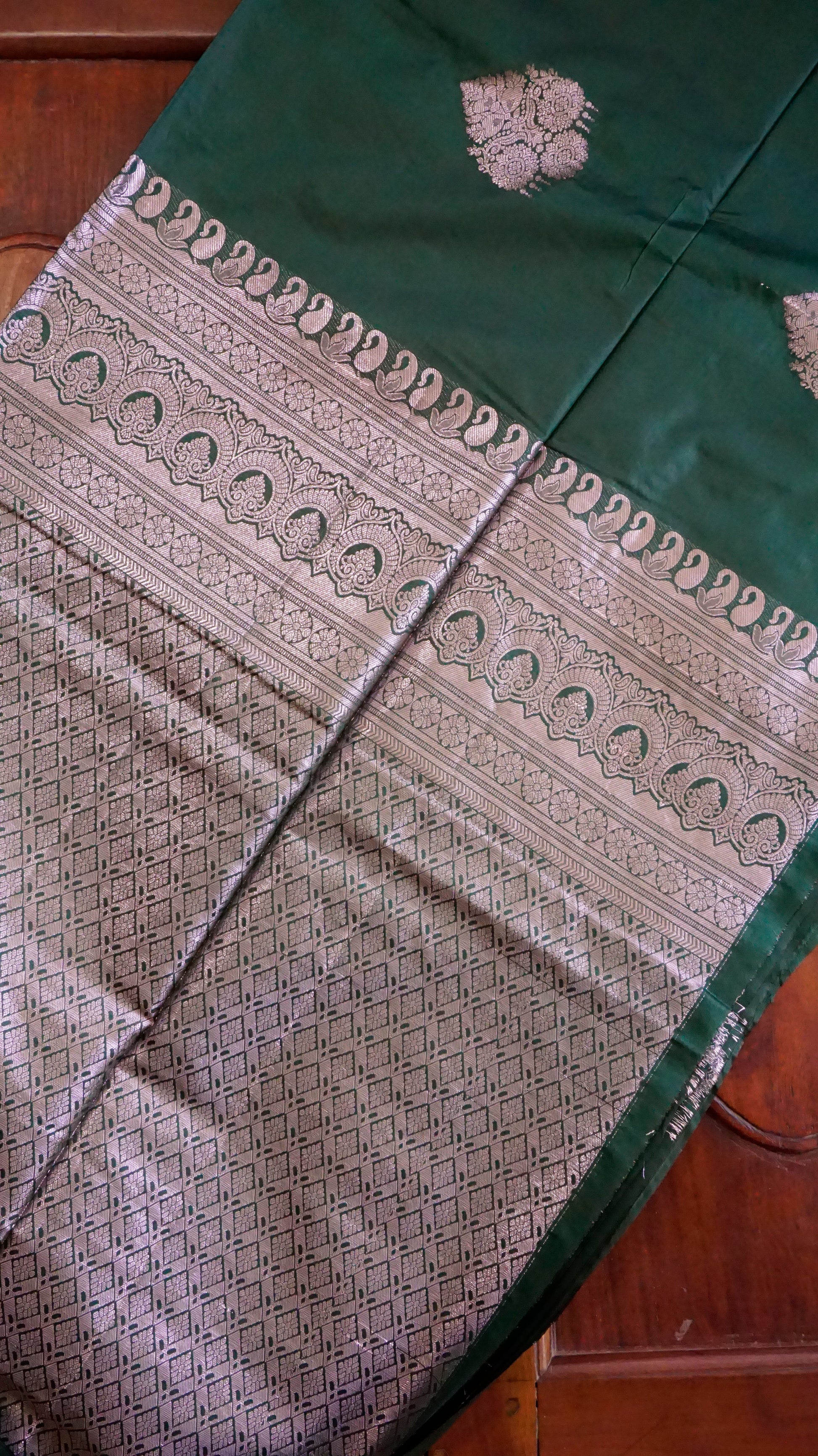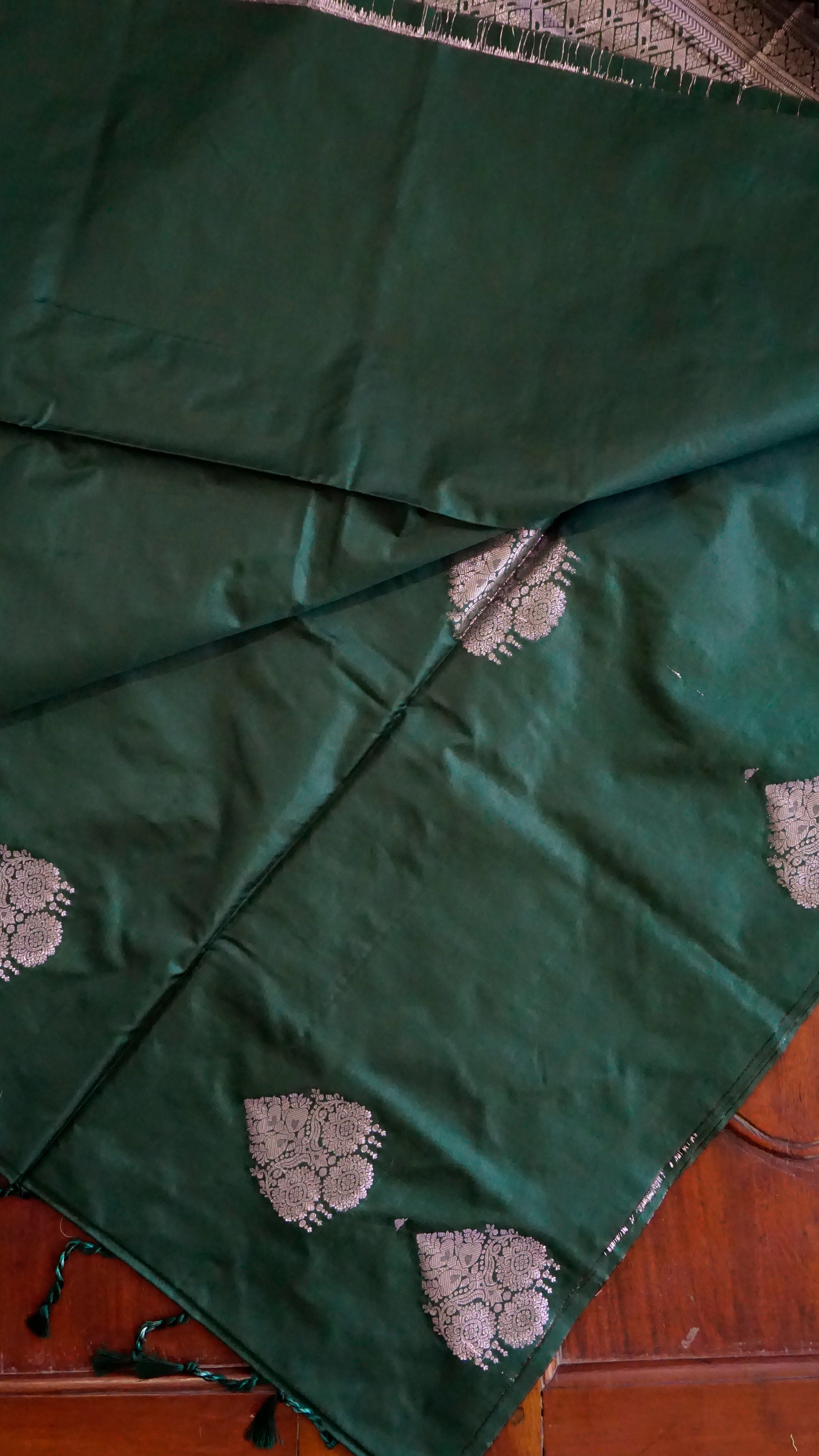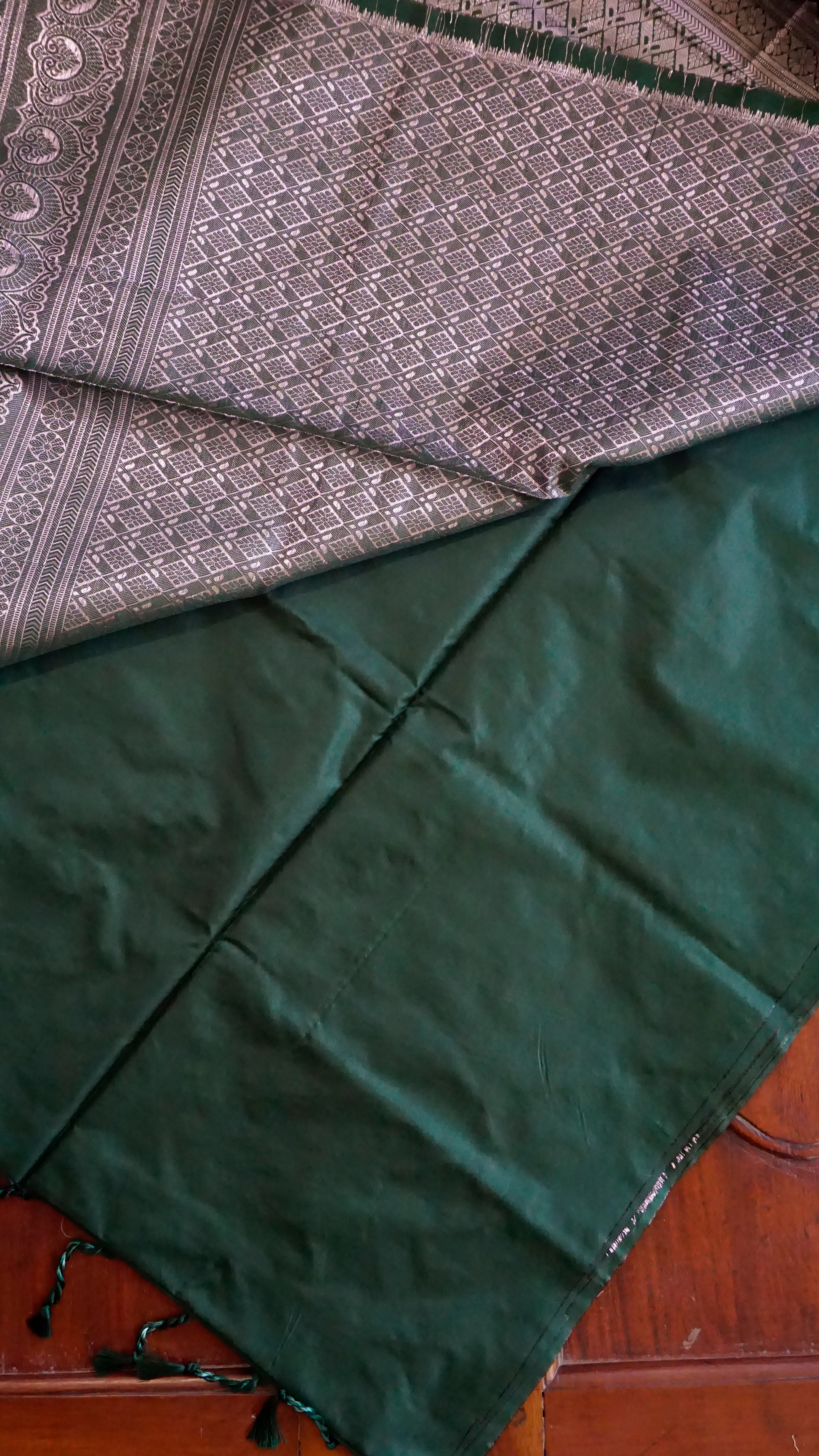 Silver Zari Work on a Green Semi-Silk Saree ✨