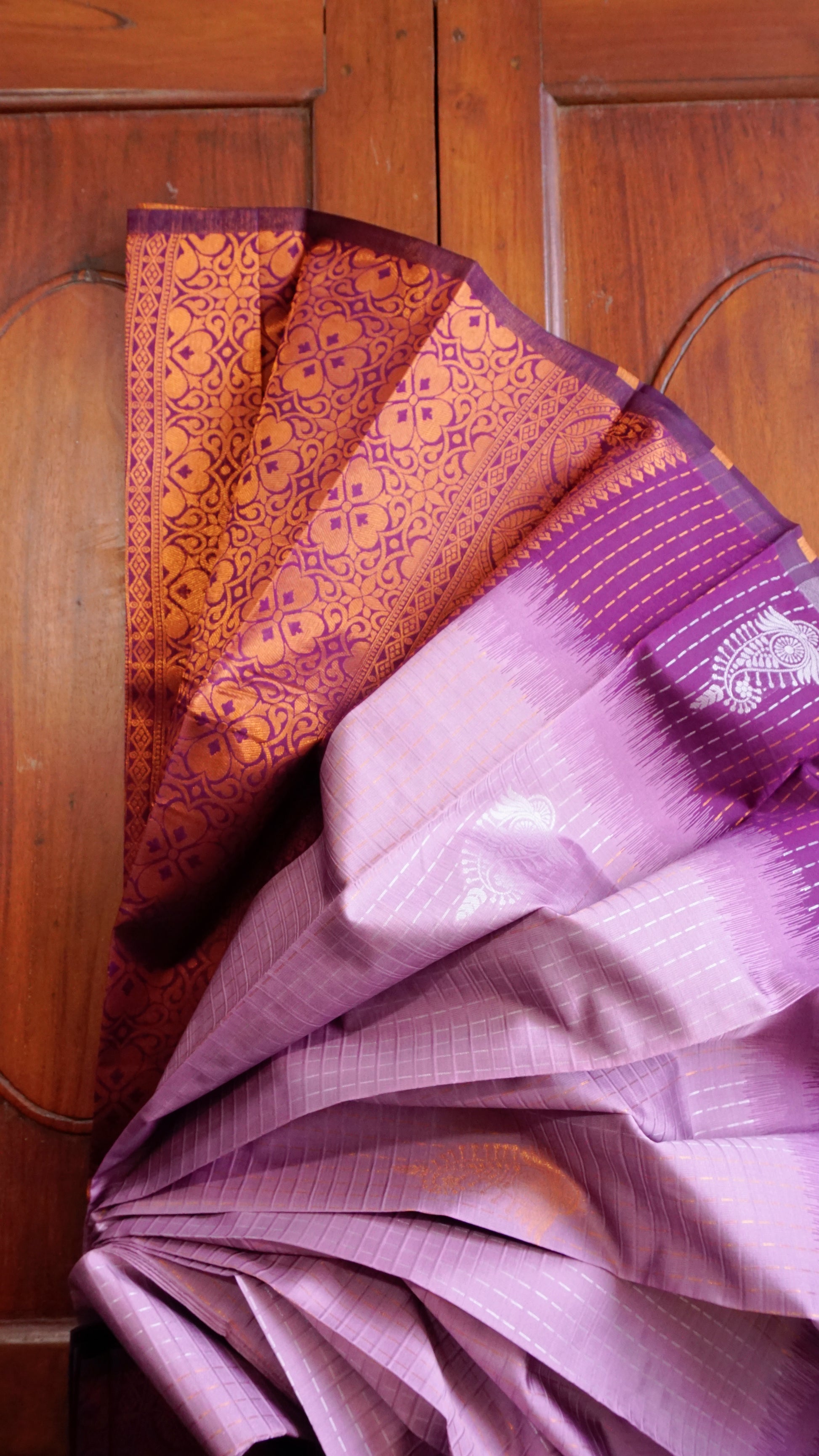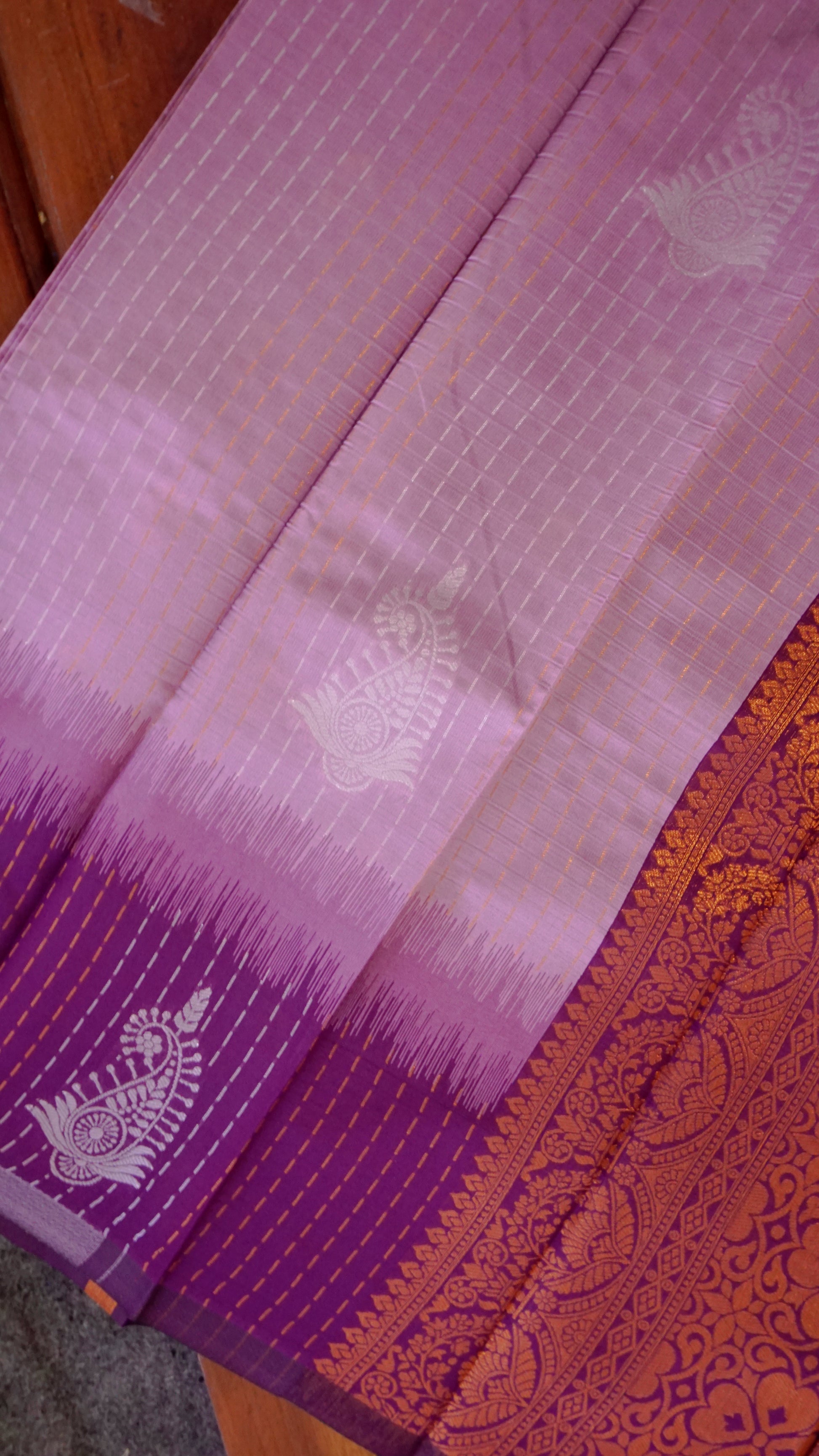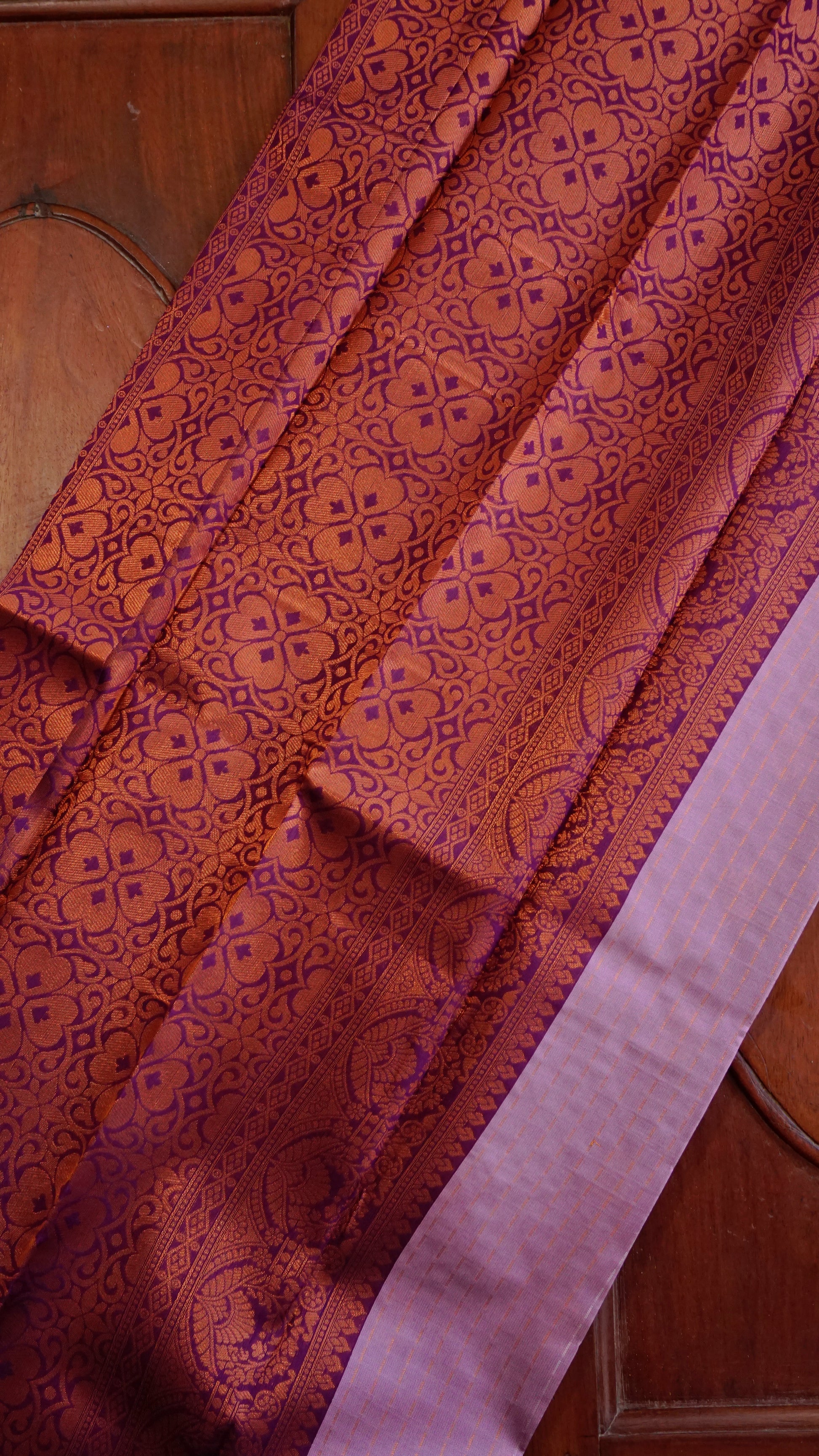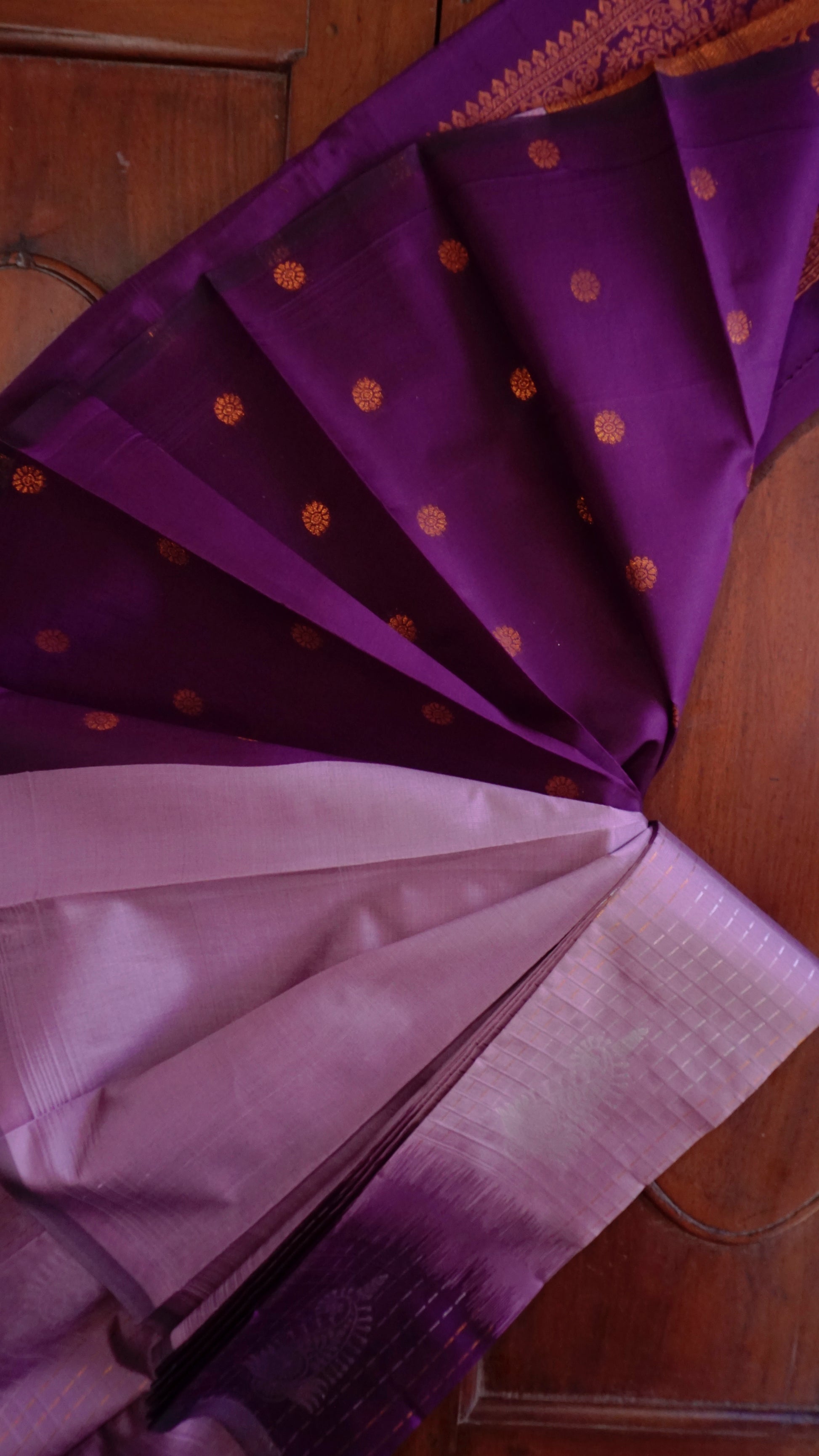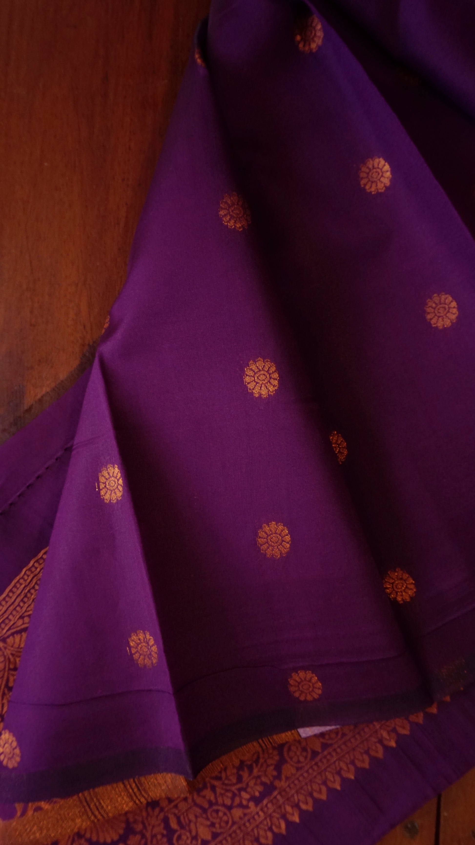 Purple Semi Silk Saree with Golden Motifs & Contrast Border