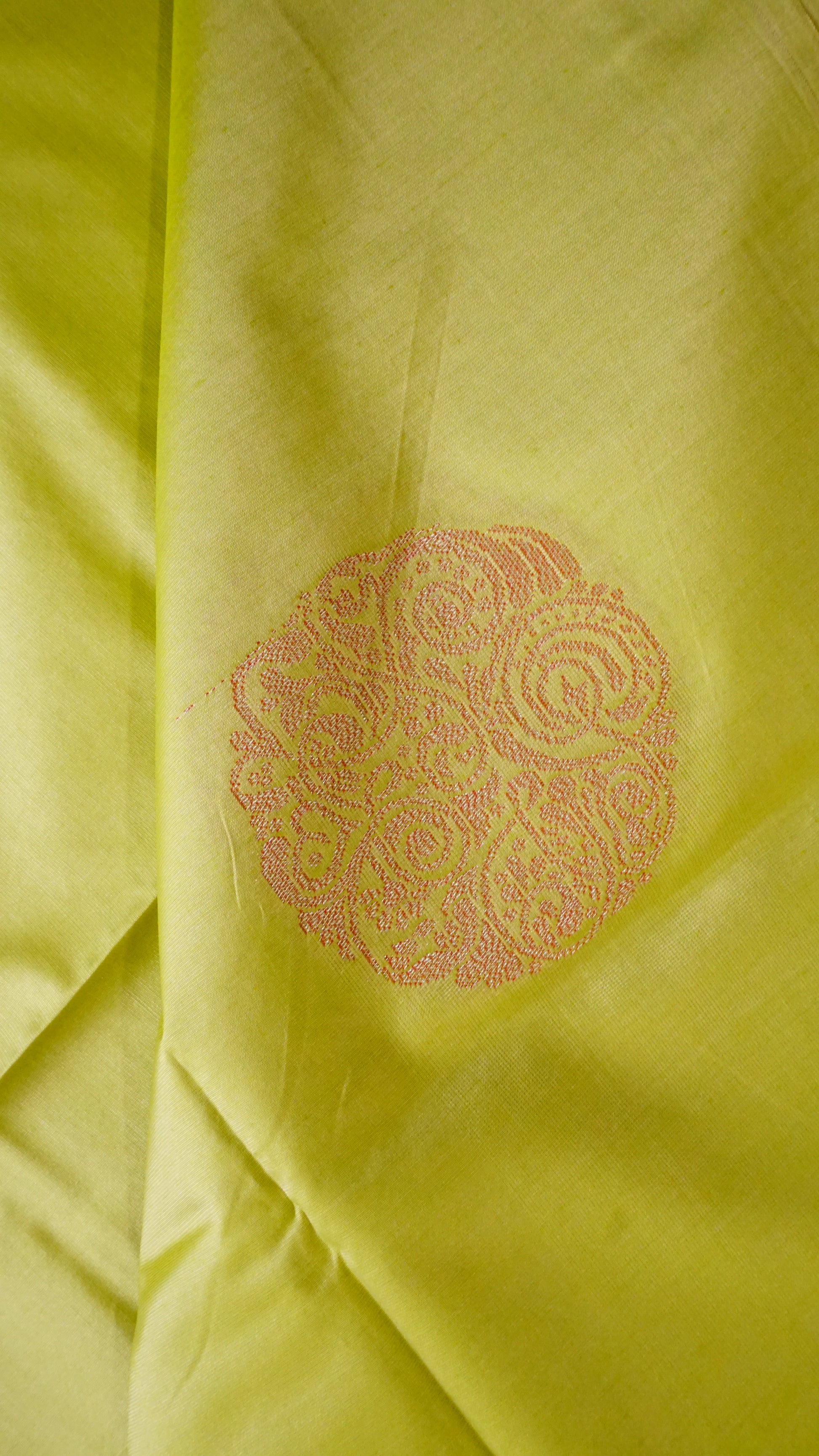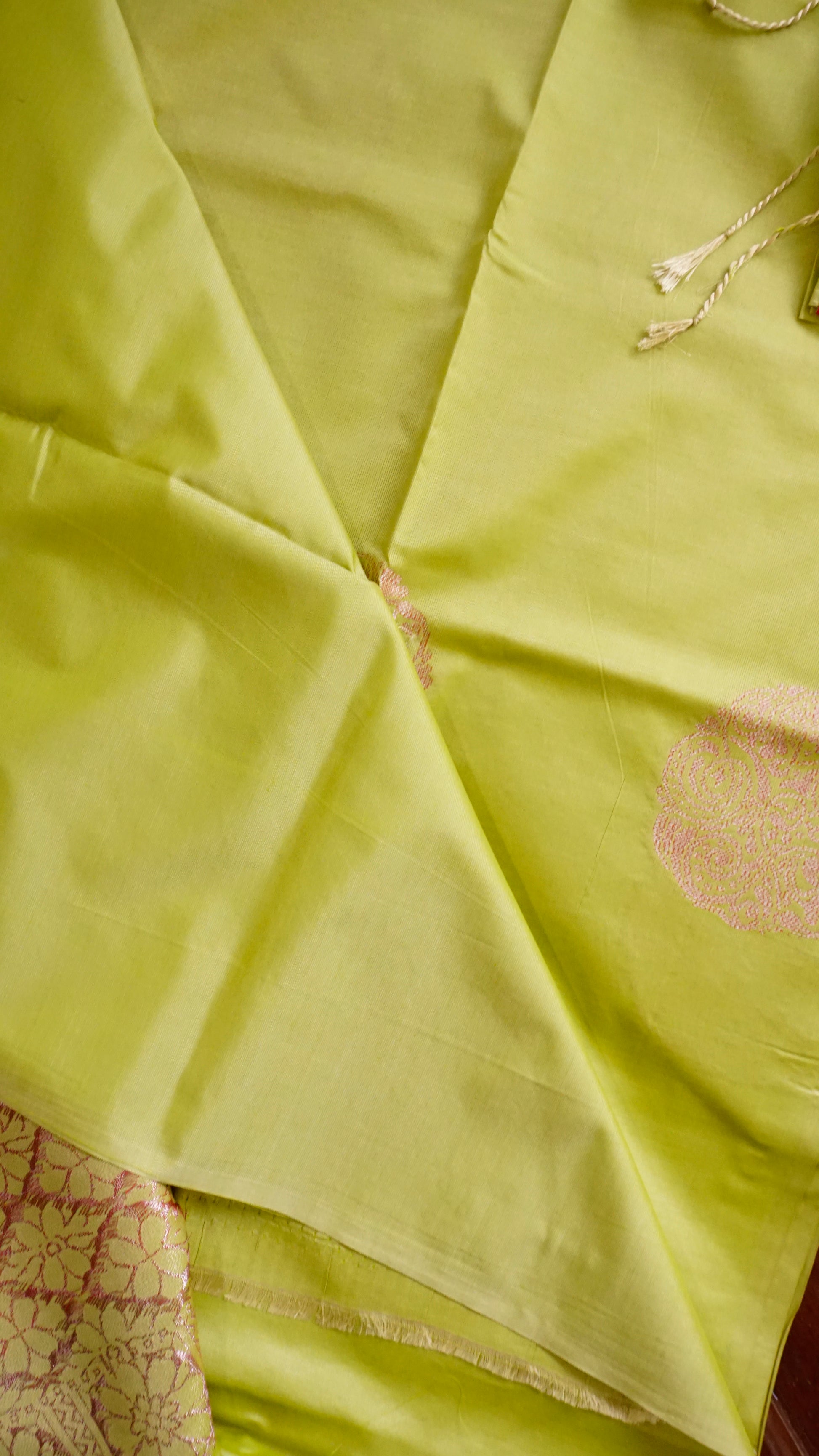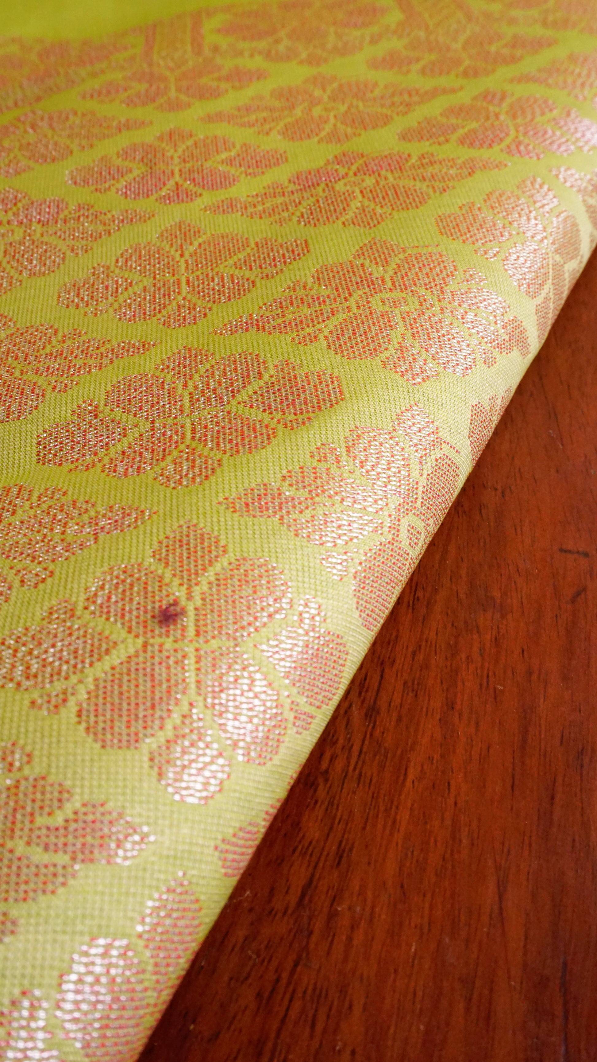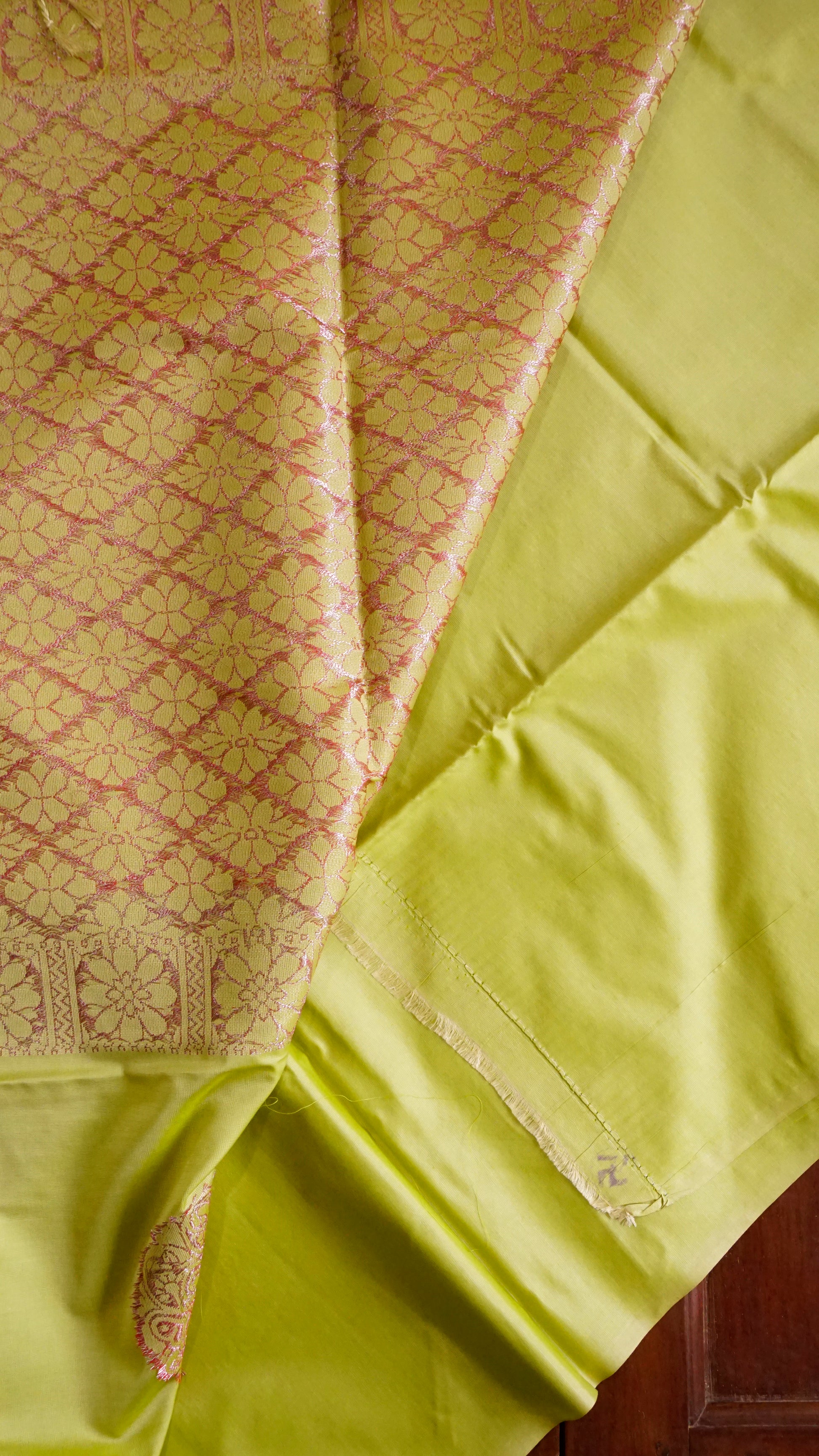 Color: Lime Green with pink-gold zari motifs