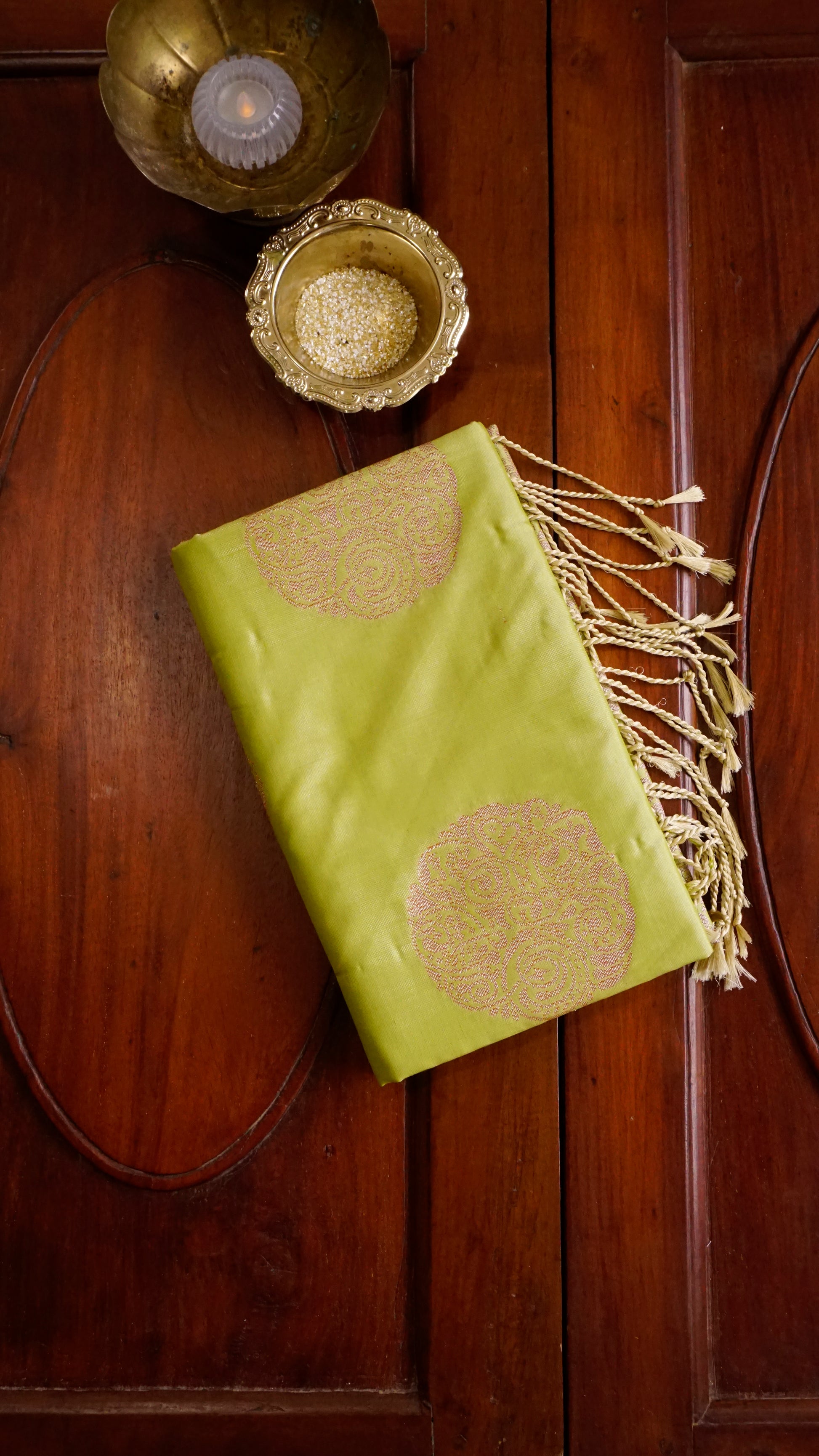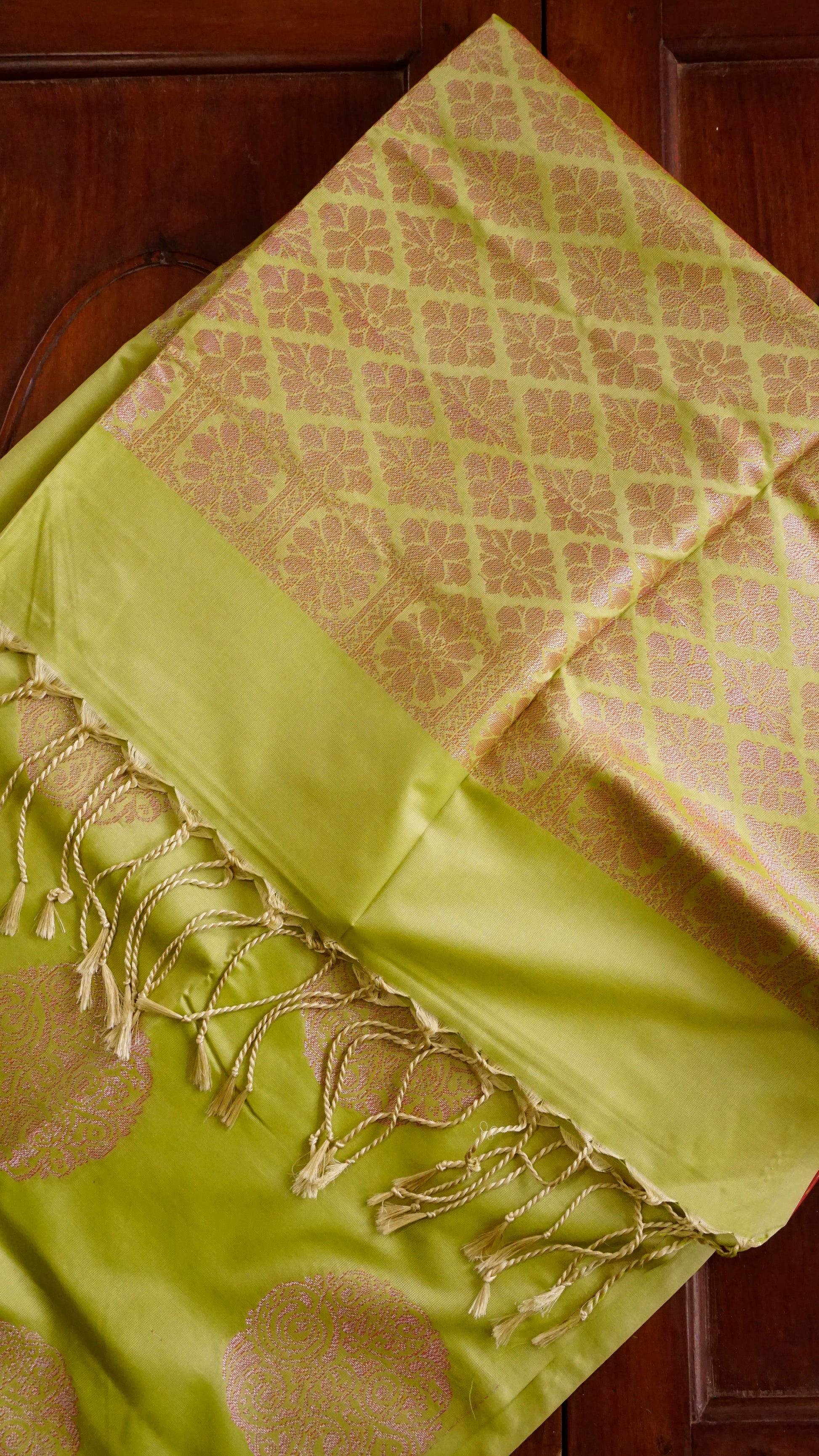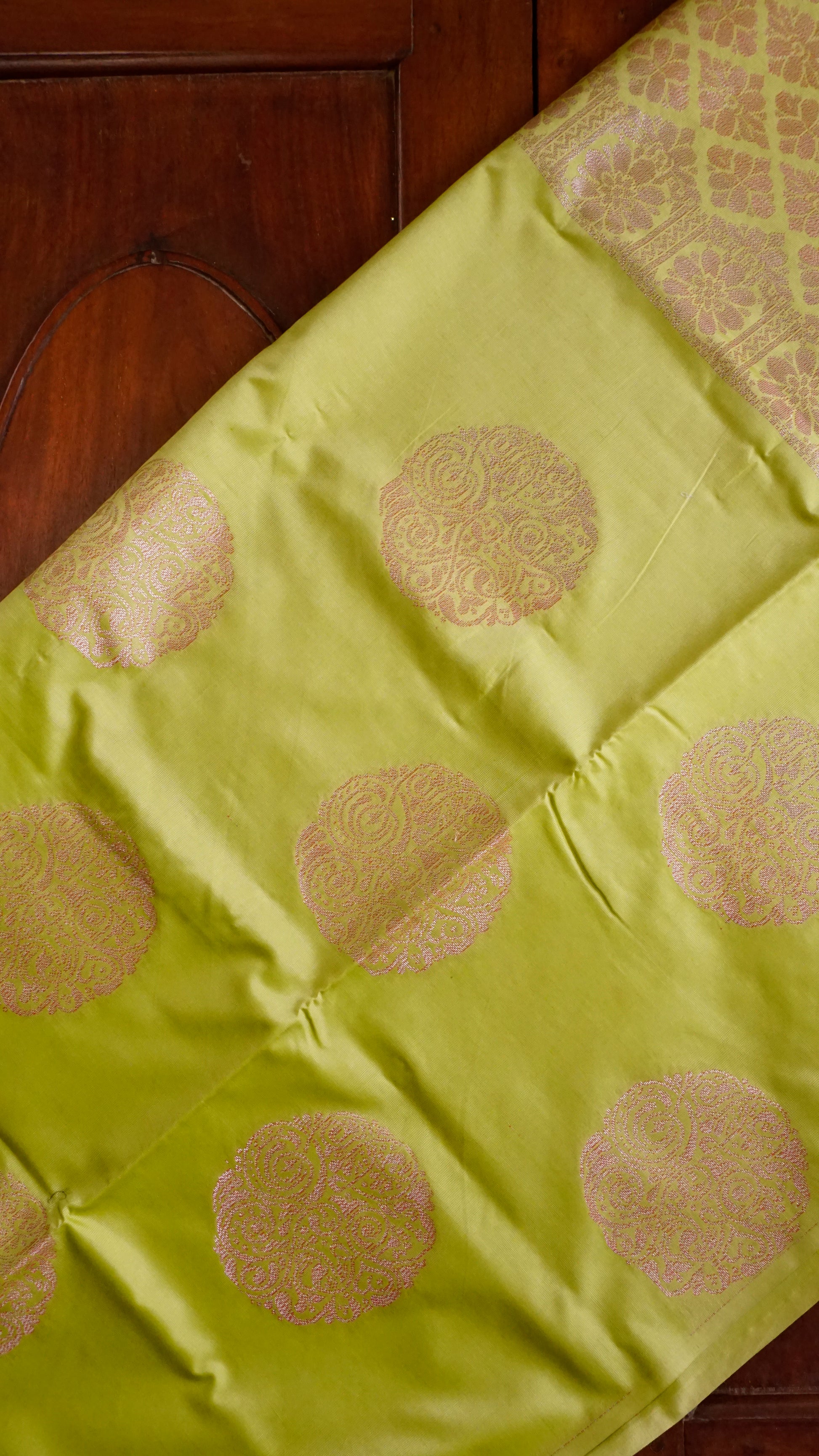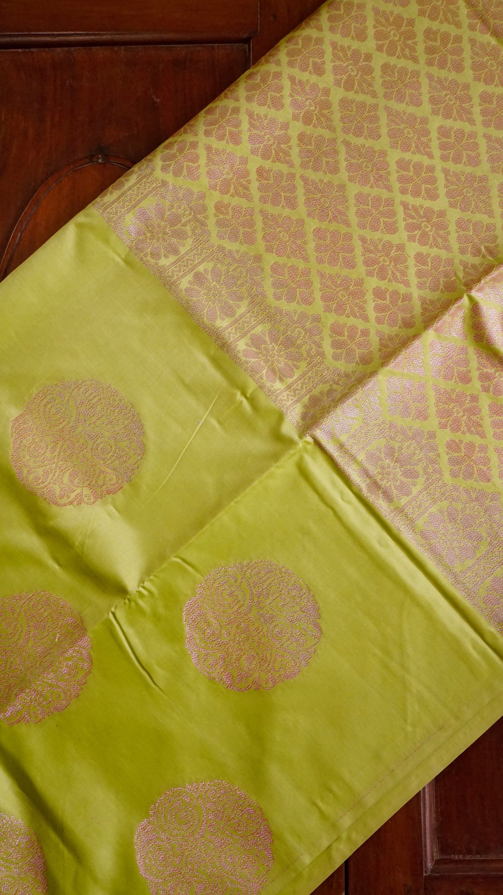 Color: Lime Green with pink-gold zari motifs
