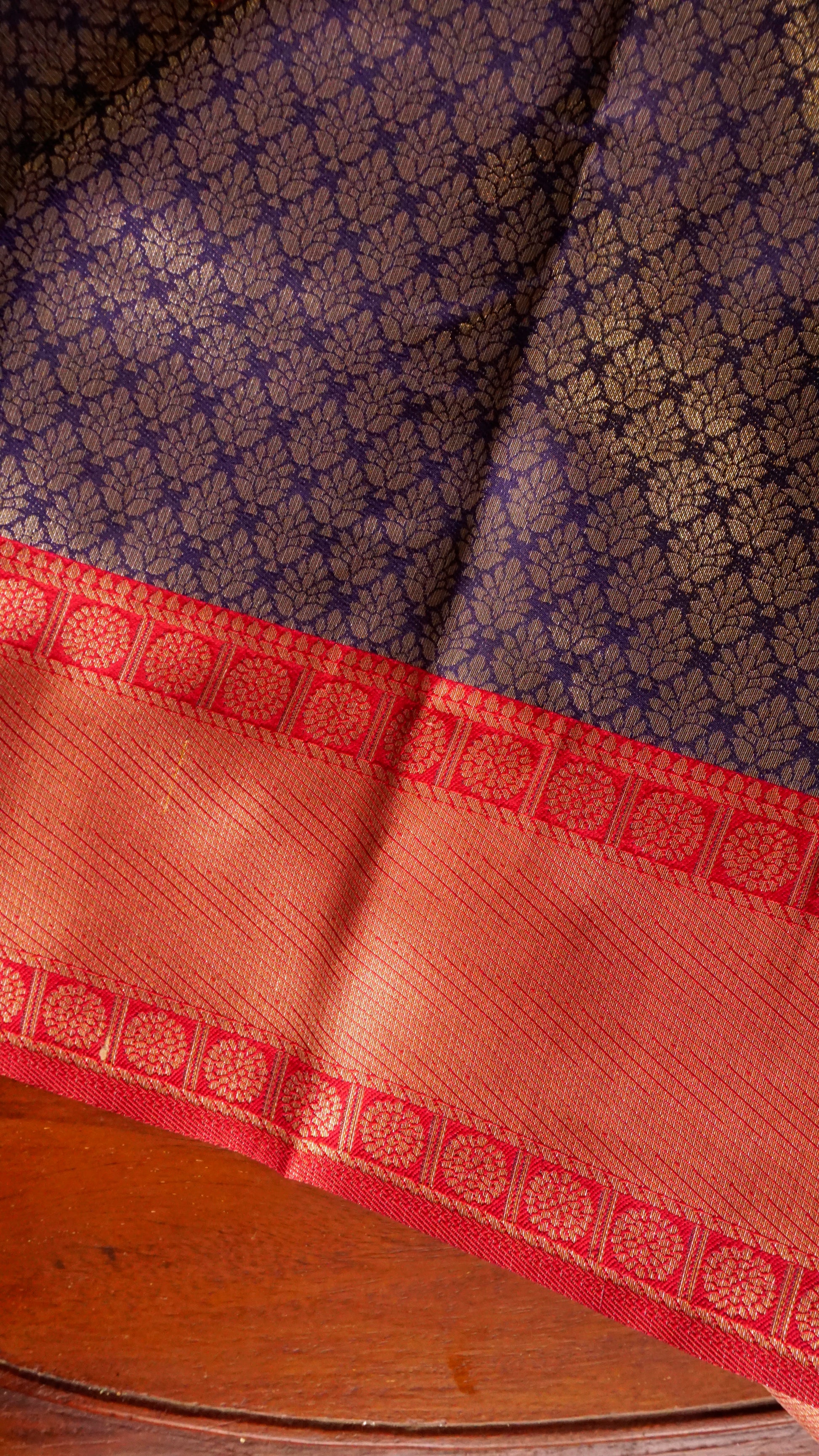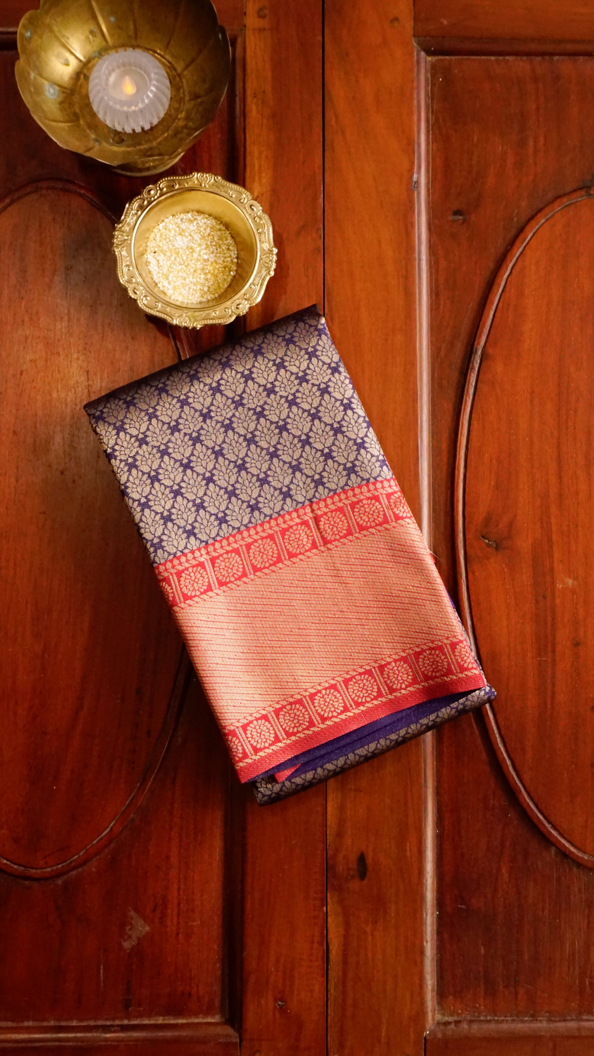 Golden floral buttas on royal blue base