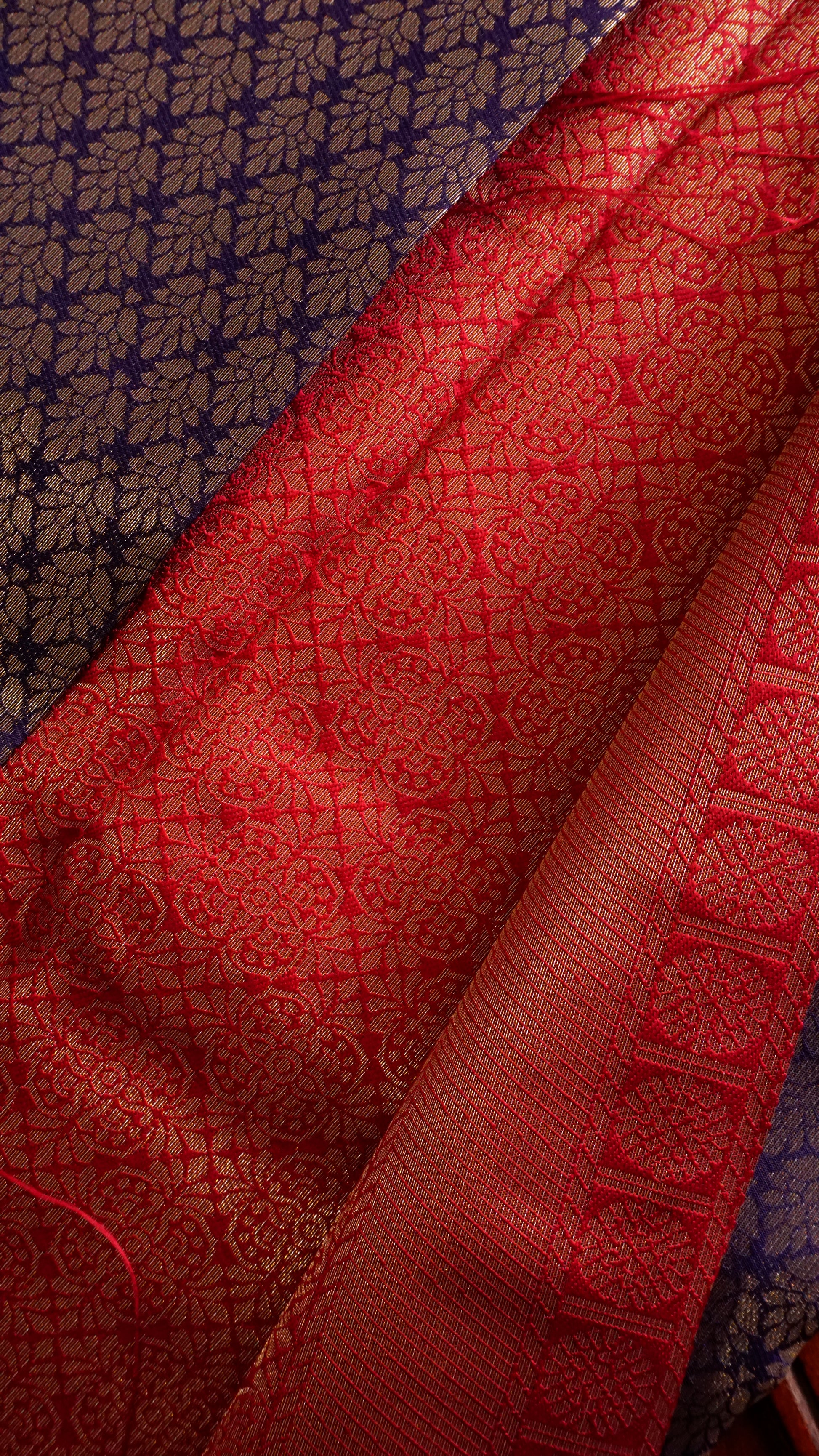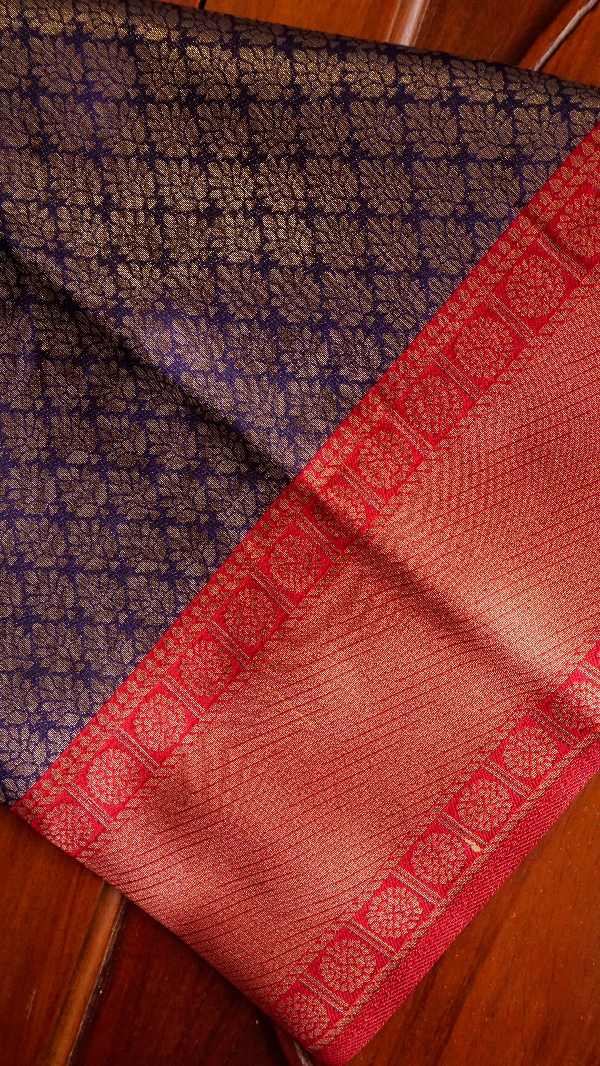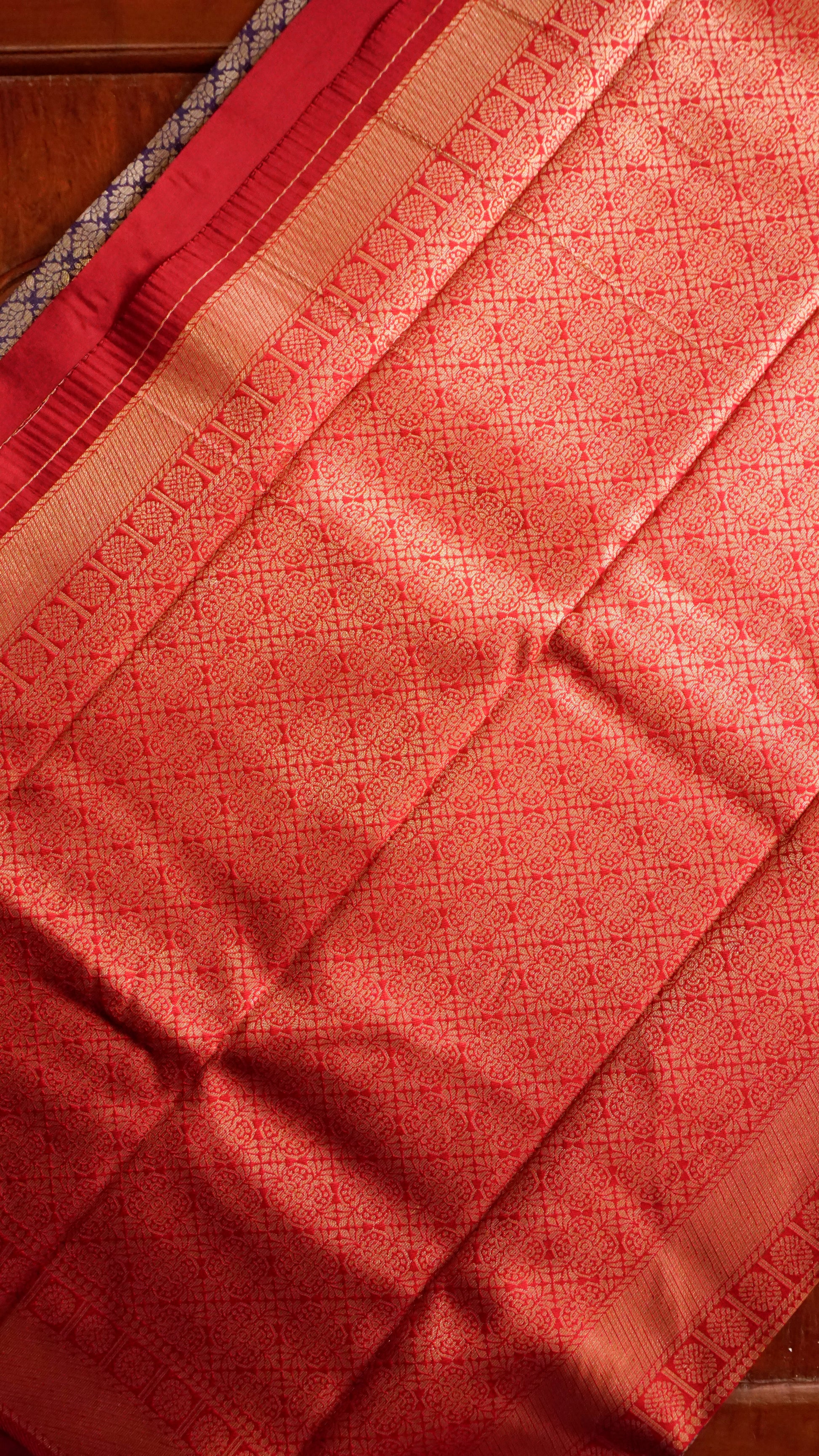 Crimson red pallu with intricate zari weave