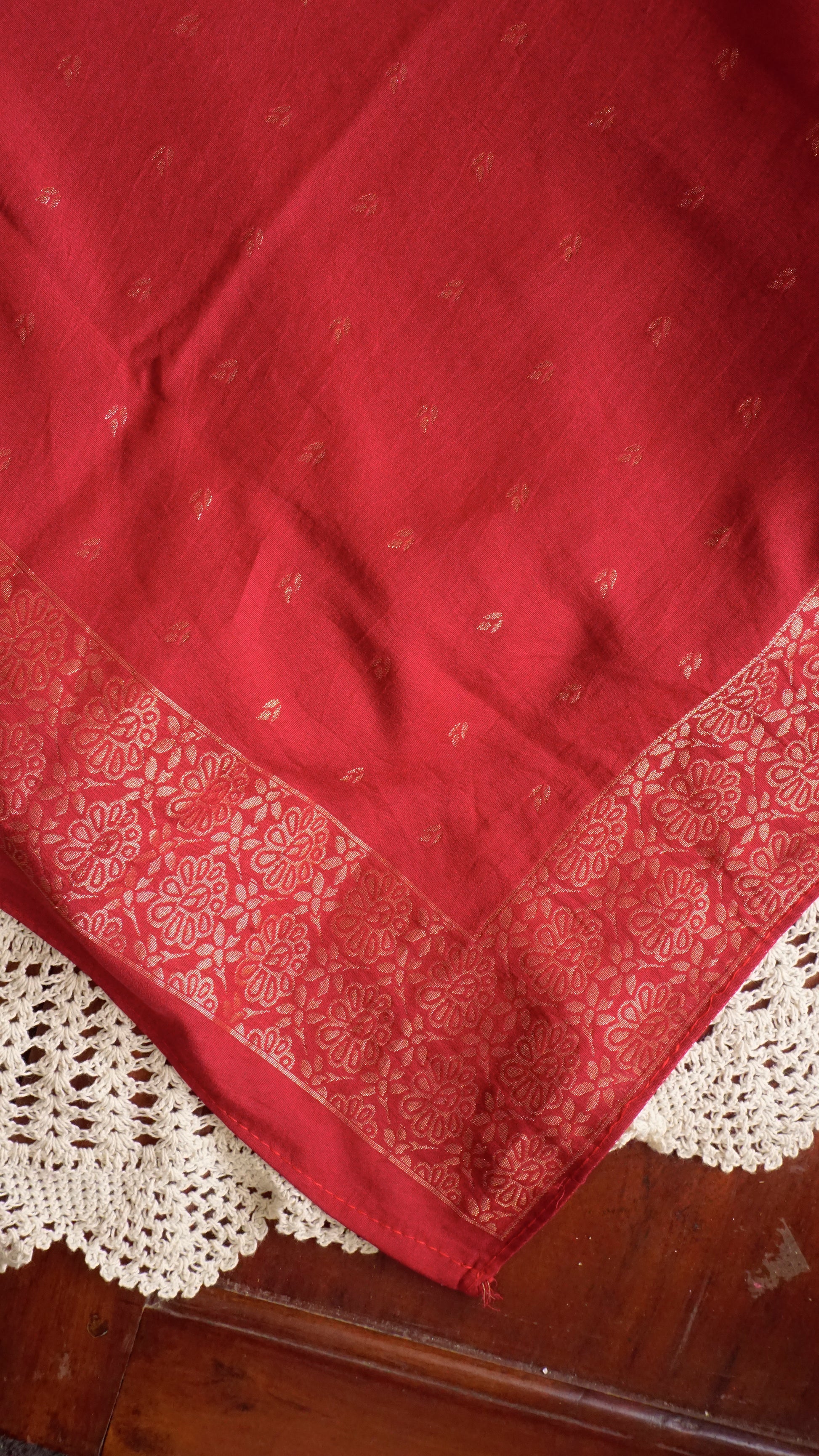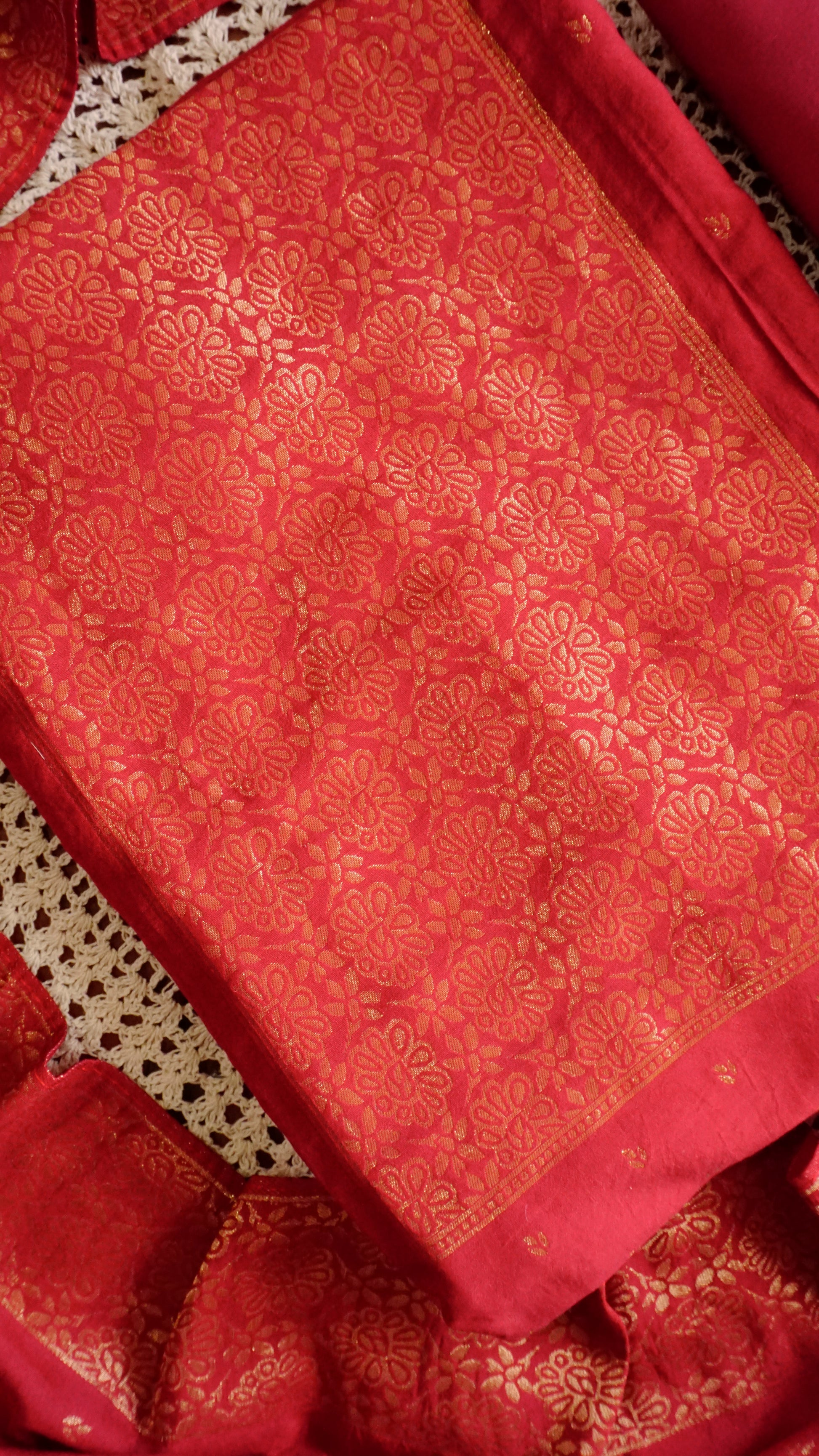 🎨 Color: Vibrant Red with Golden Zari work
