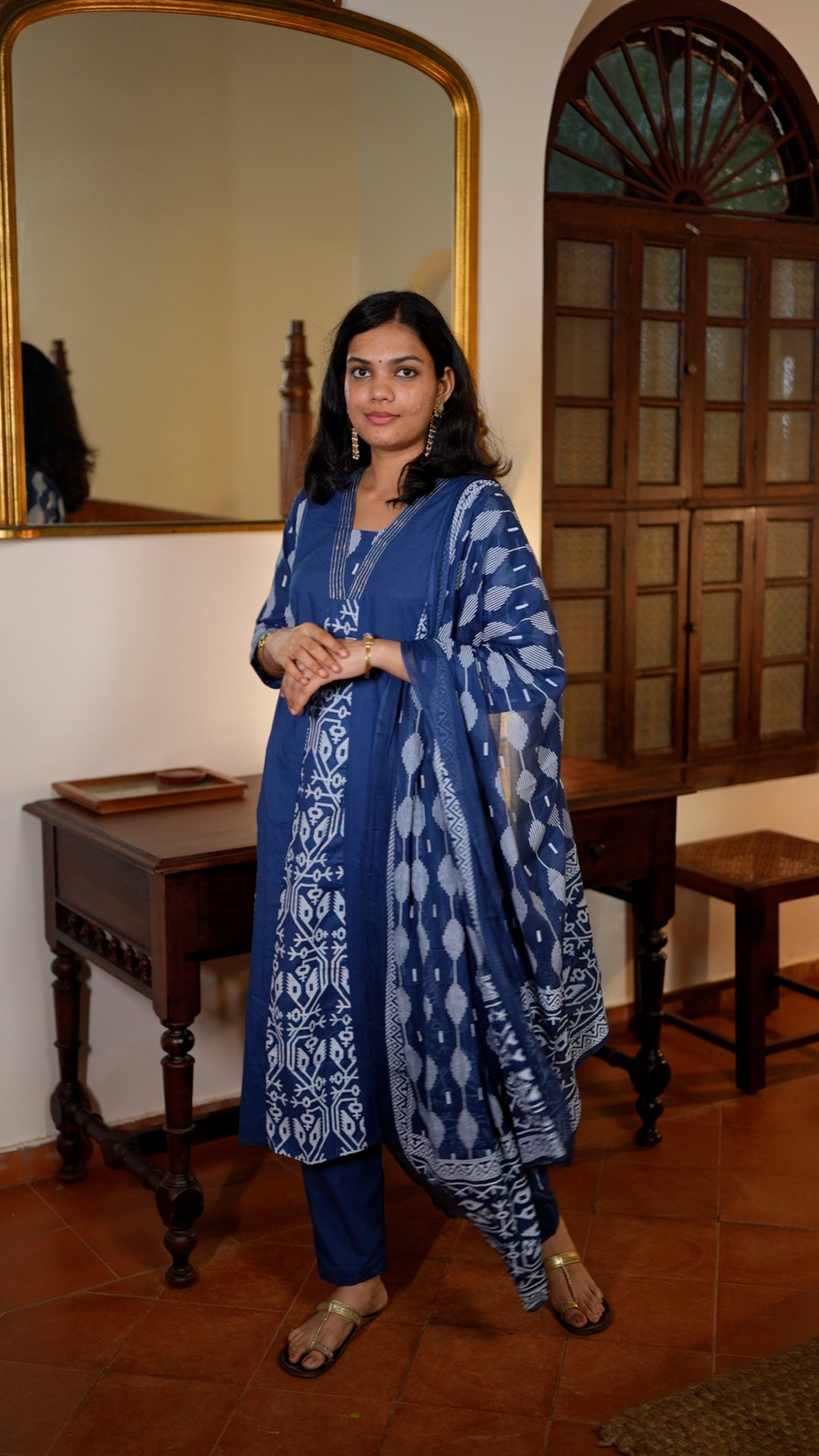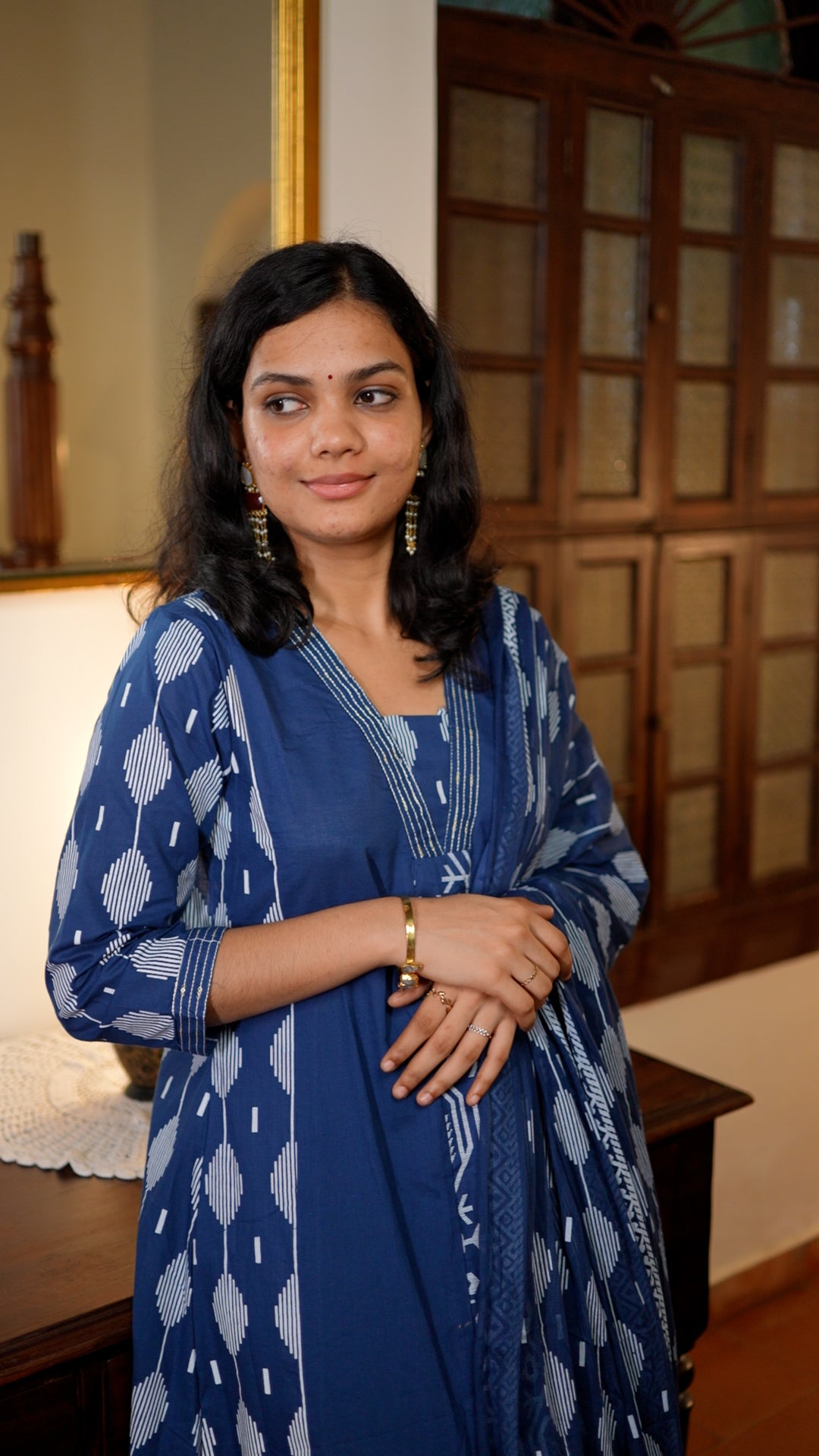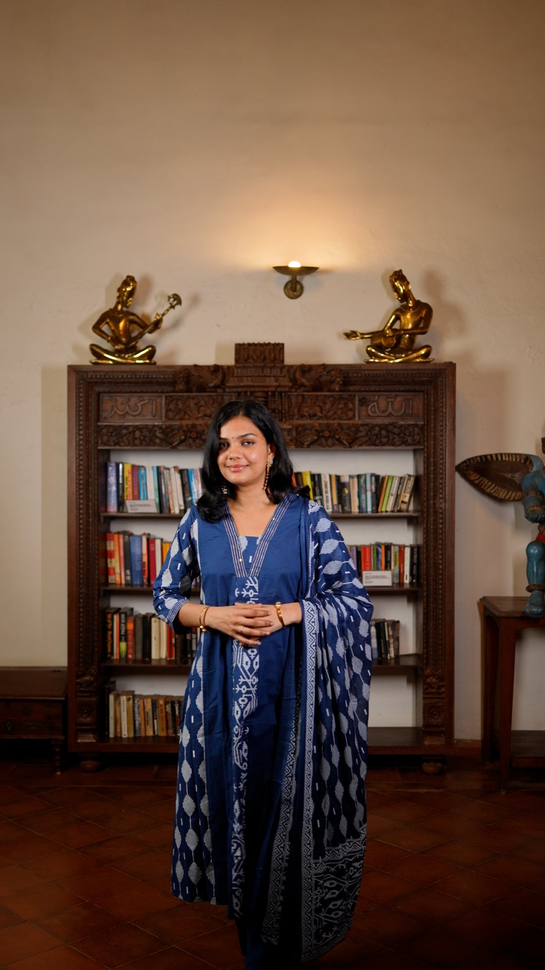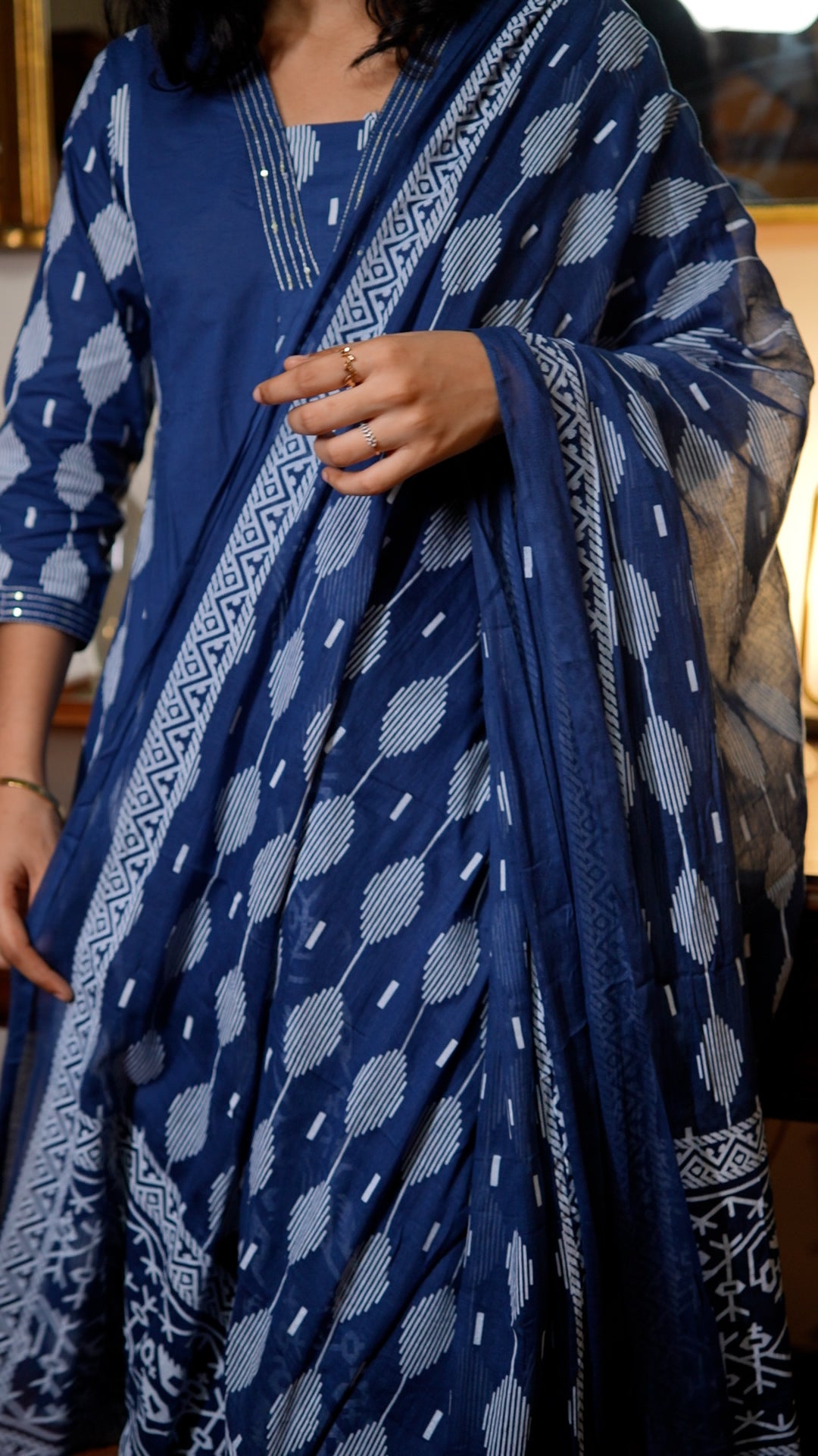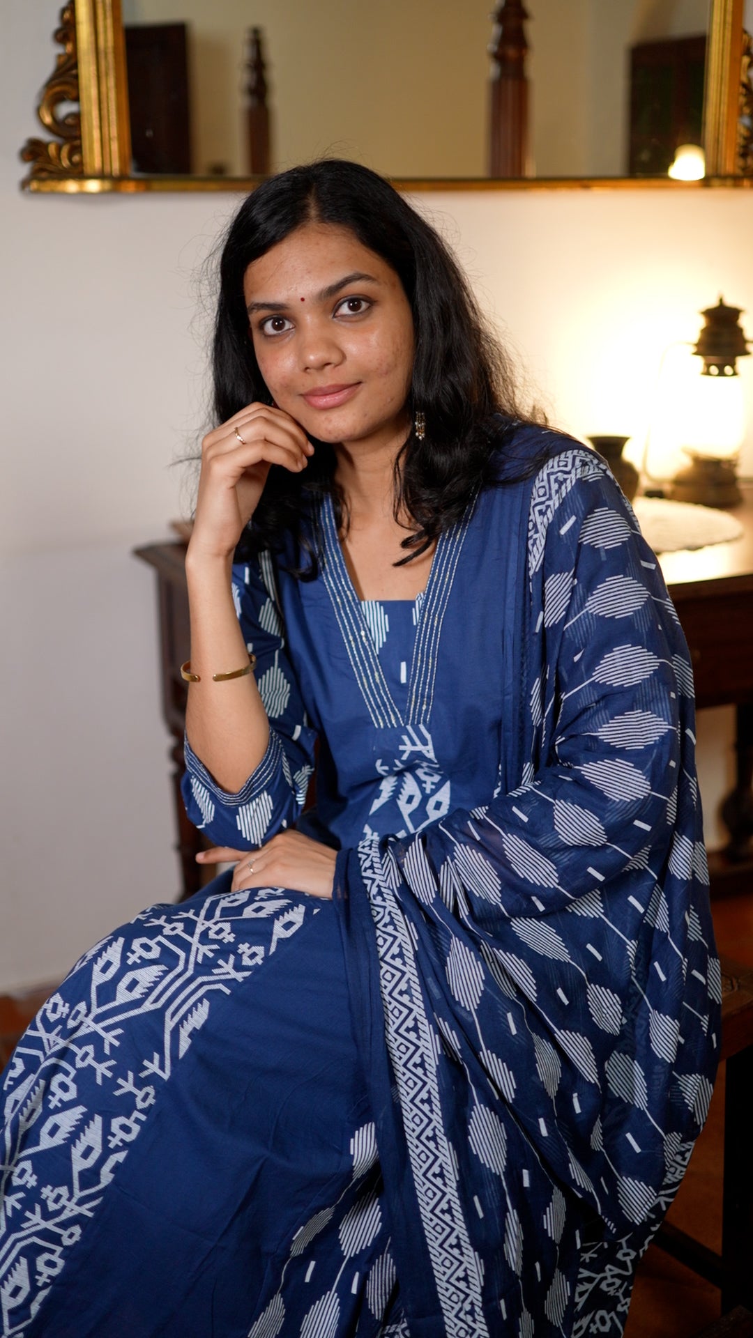 Indigo palazzo set, handblock print, cotton ethnic wear, printed suit set, Indian wear, festive outfit, stylish palazzo, traditional look, handmade fashion, ethnic style