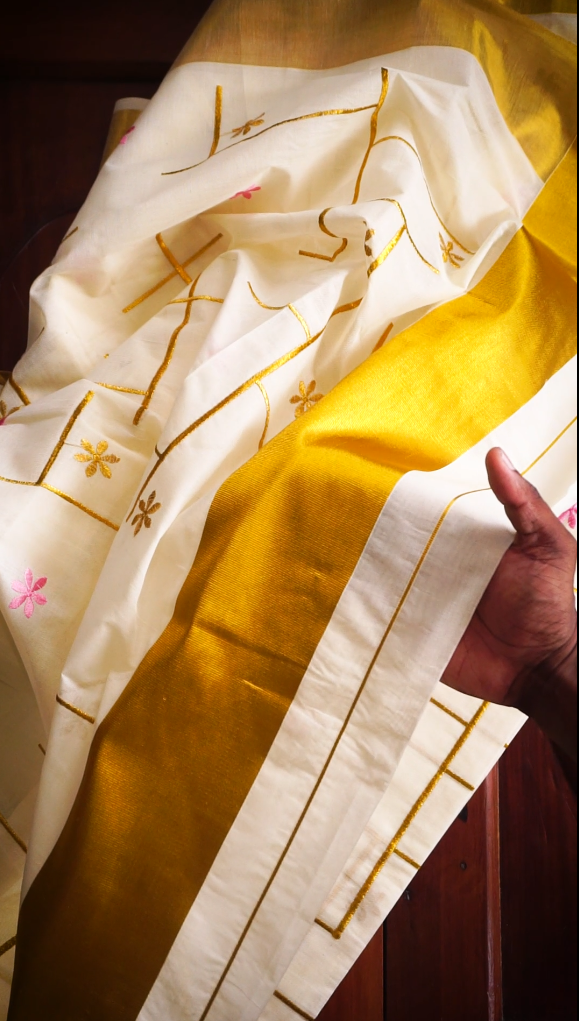 [ Onam Saree, Kerala Kasavu, Cotton Saree, Contrast, Onam Styling, Online Shopping, New Launch ]