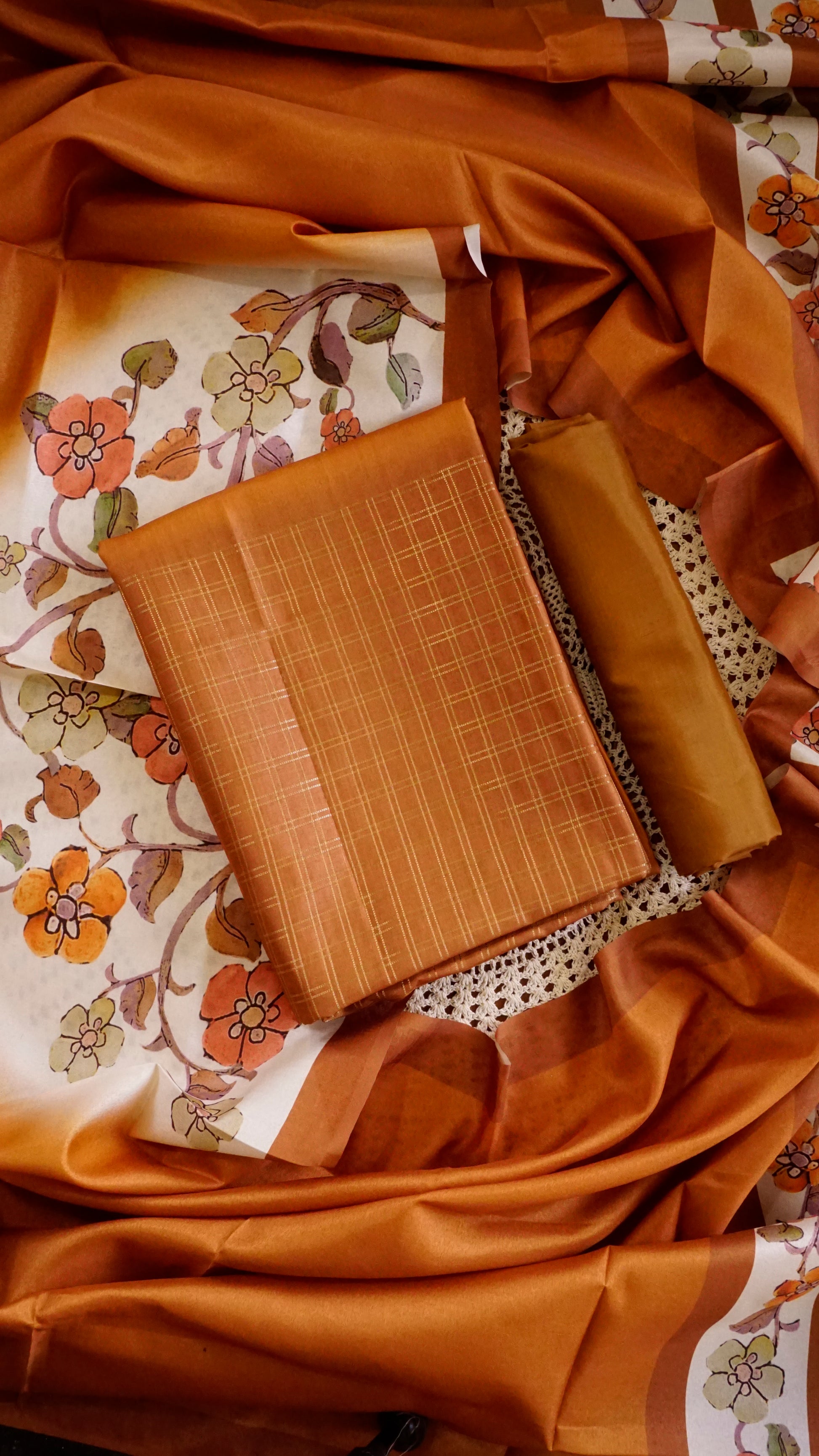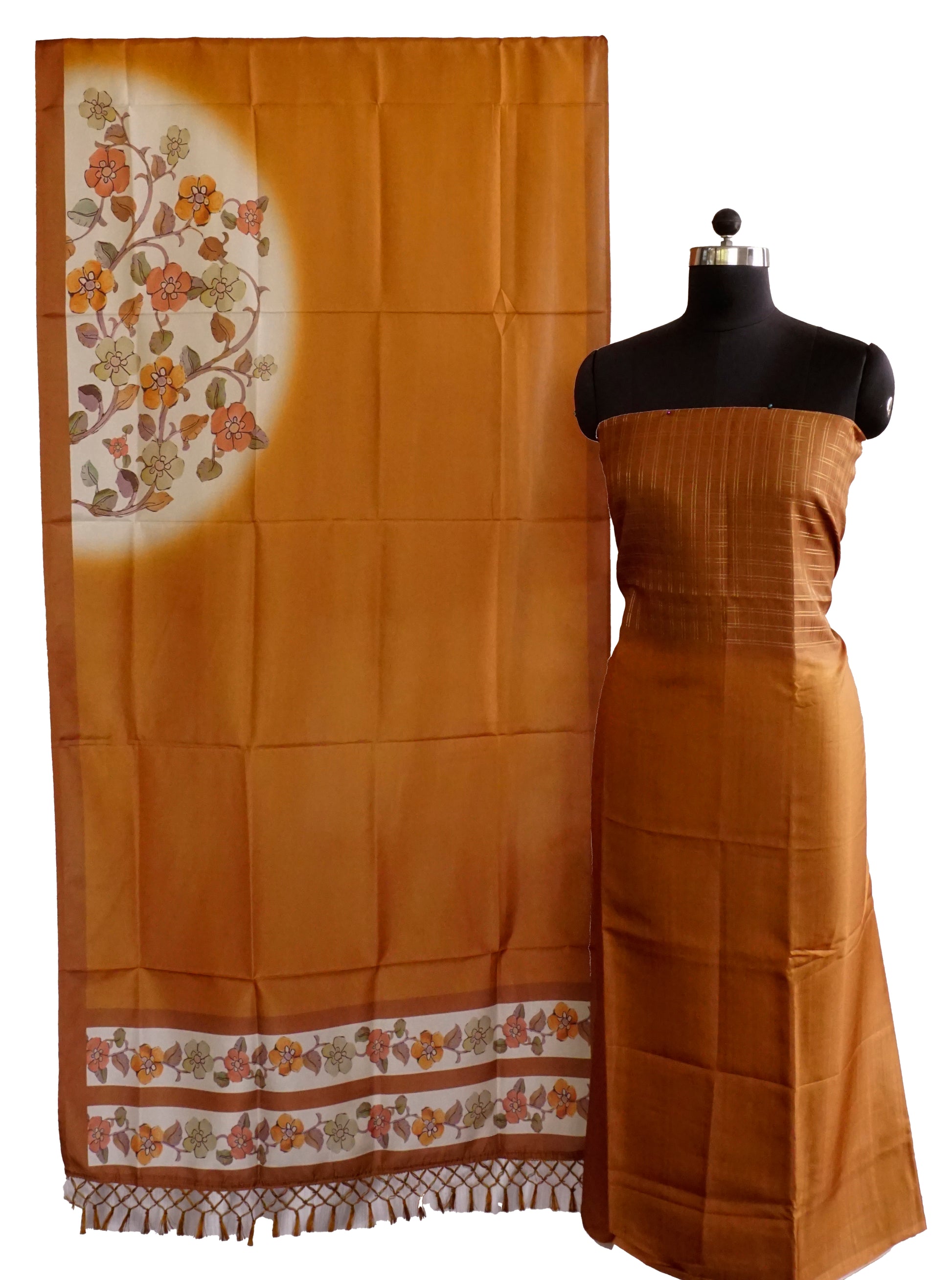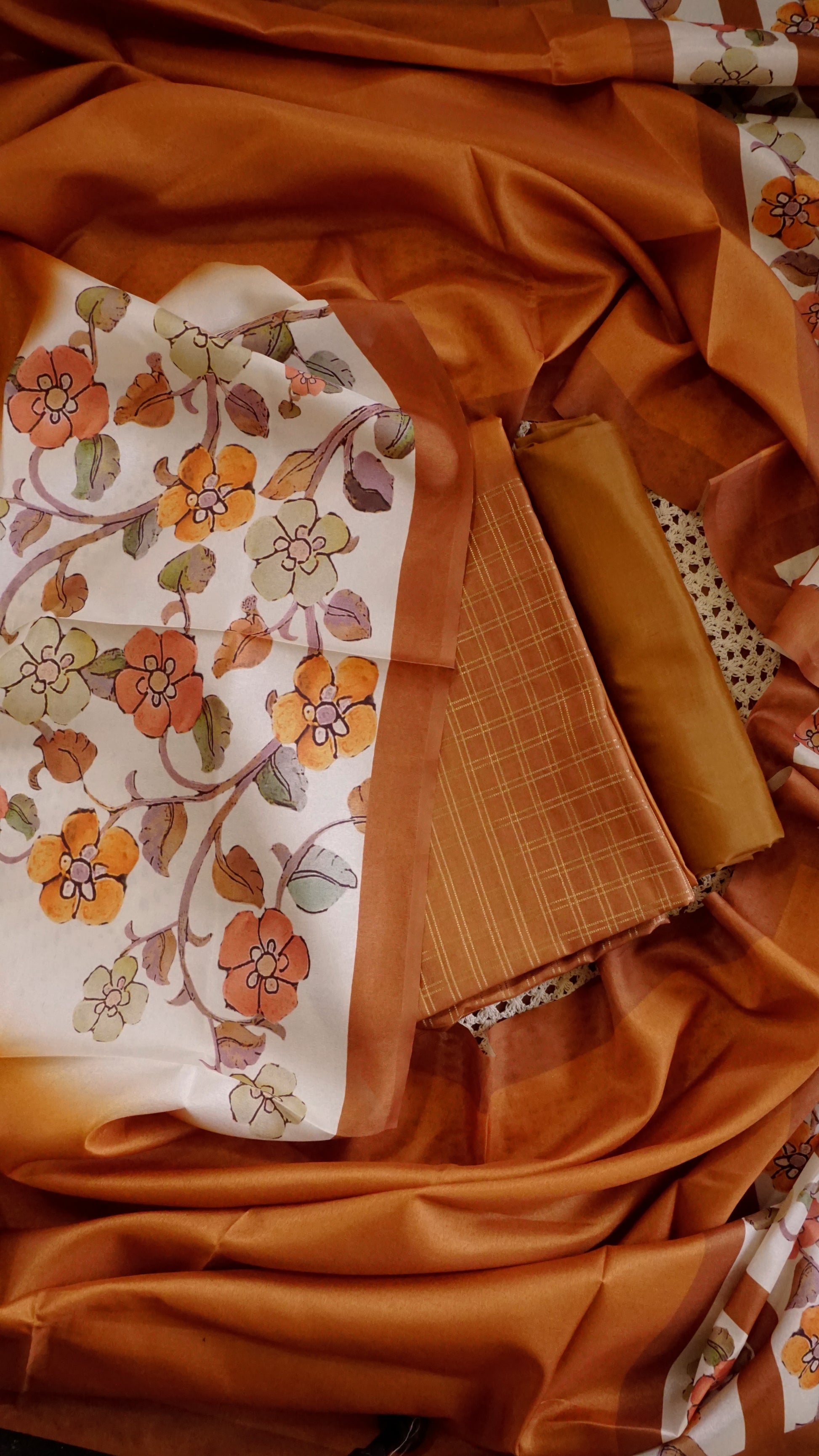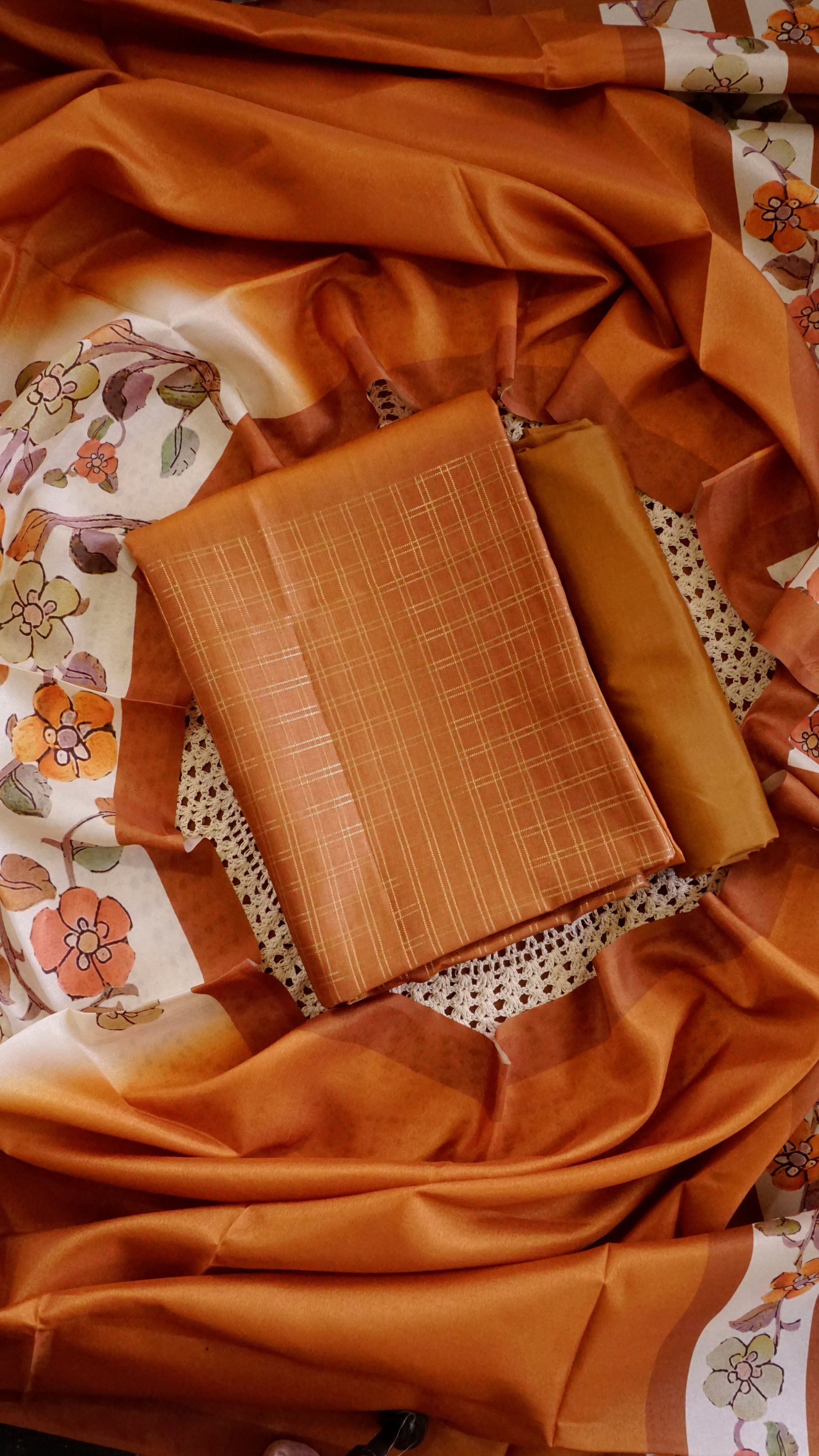 With these sophisticated unstitched salwar suit sets, you may update your ethnic closet. Each set comes with a vibrantly printed dupatta and a gorgeously patterned cloth with delicate stripes or checks. These fabrics are soft, adaptable, and ideal for designing into salwar suits, kurtis, or churidars. They come in deep purple, rust orange, teal green, brilliant pink, and olive green hues. Perfect for festive occasions, the workplace, and everyday wear.