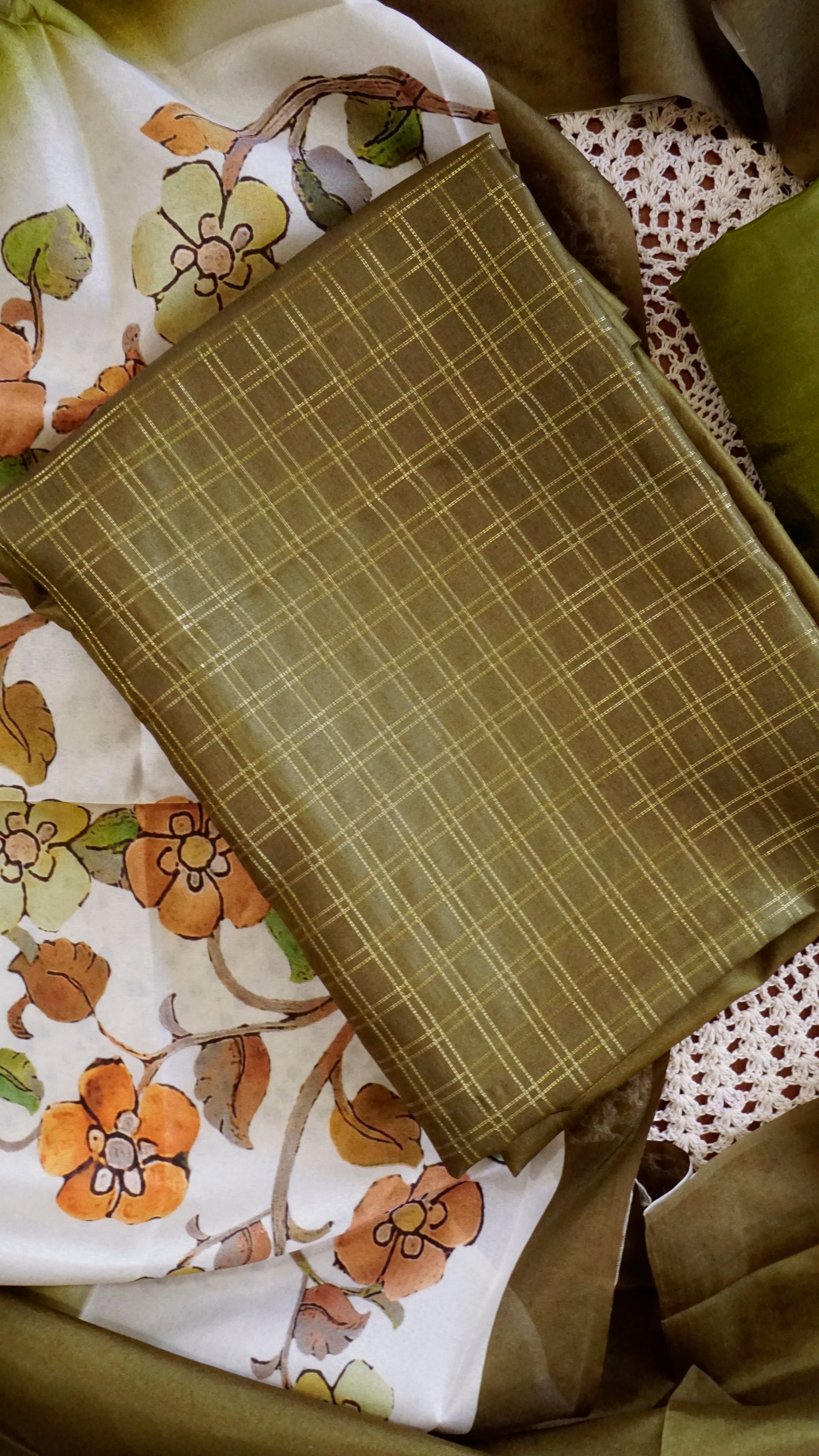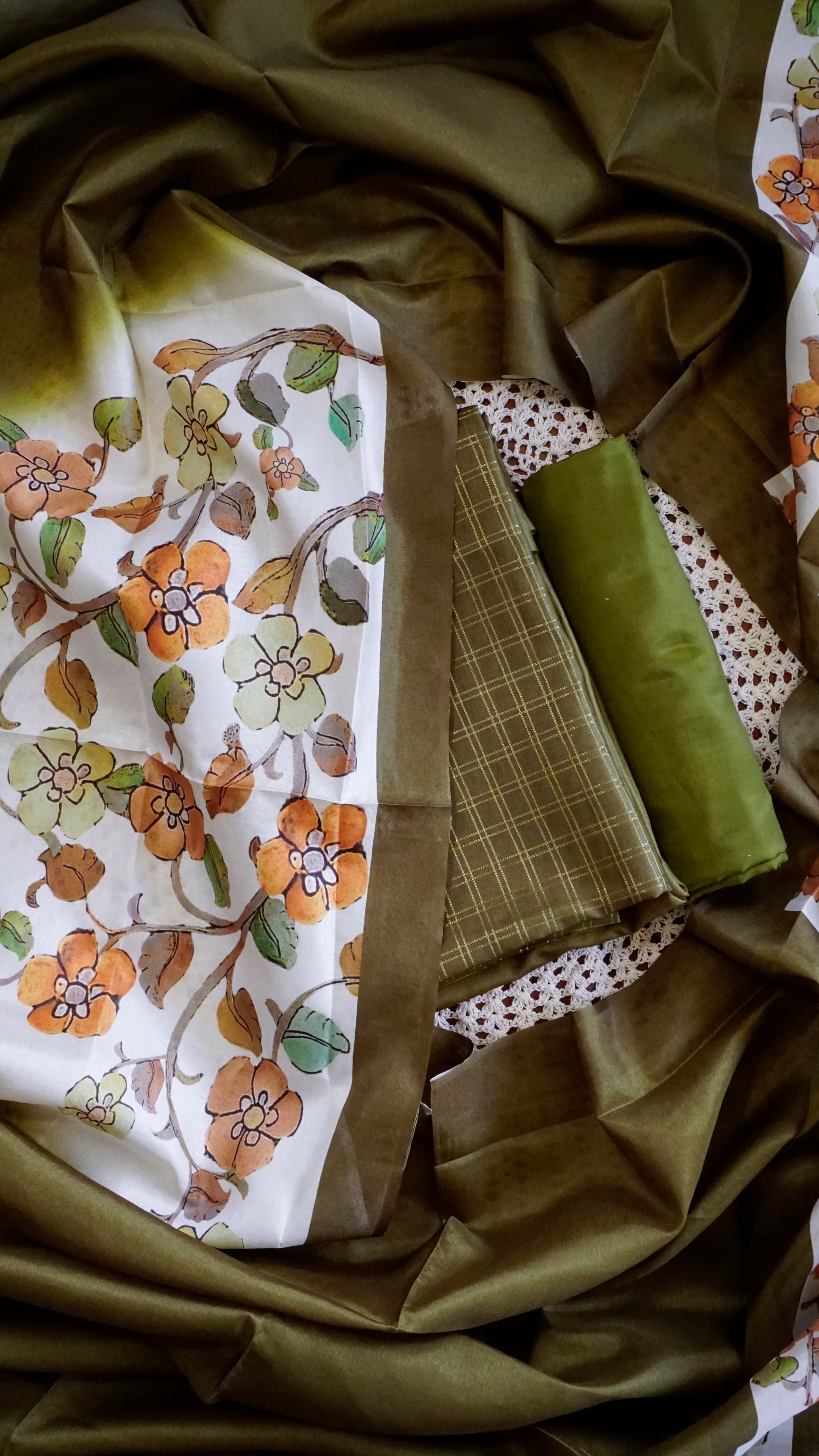 Upgrade your ethnic wardrobe with these elegant Unstitched Salwar Suit Sets. Each set includes a beautifully patterned fabric with subtle stripes or checks, paired with a vibrant floral printed dupatta. Available in rich shades of purple, rust orange, teal green, bright pink, and olive green, these fabrics are soft, versatile, and perfect for tailoring into salwar suits, kurtis, or churidars. Ideal for daily wear, office wear, or festive occasions.